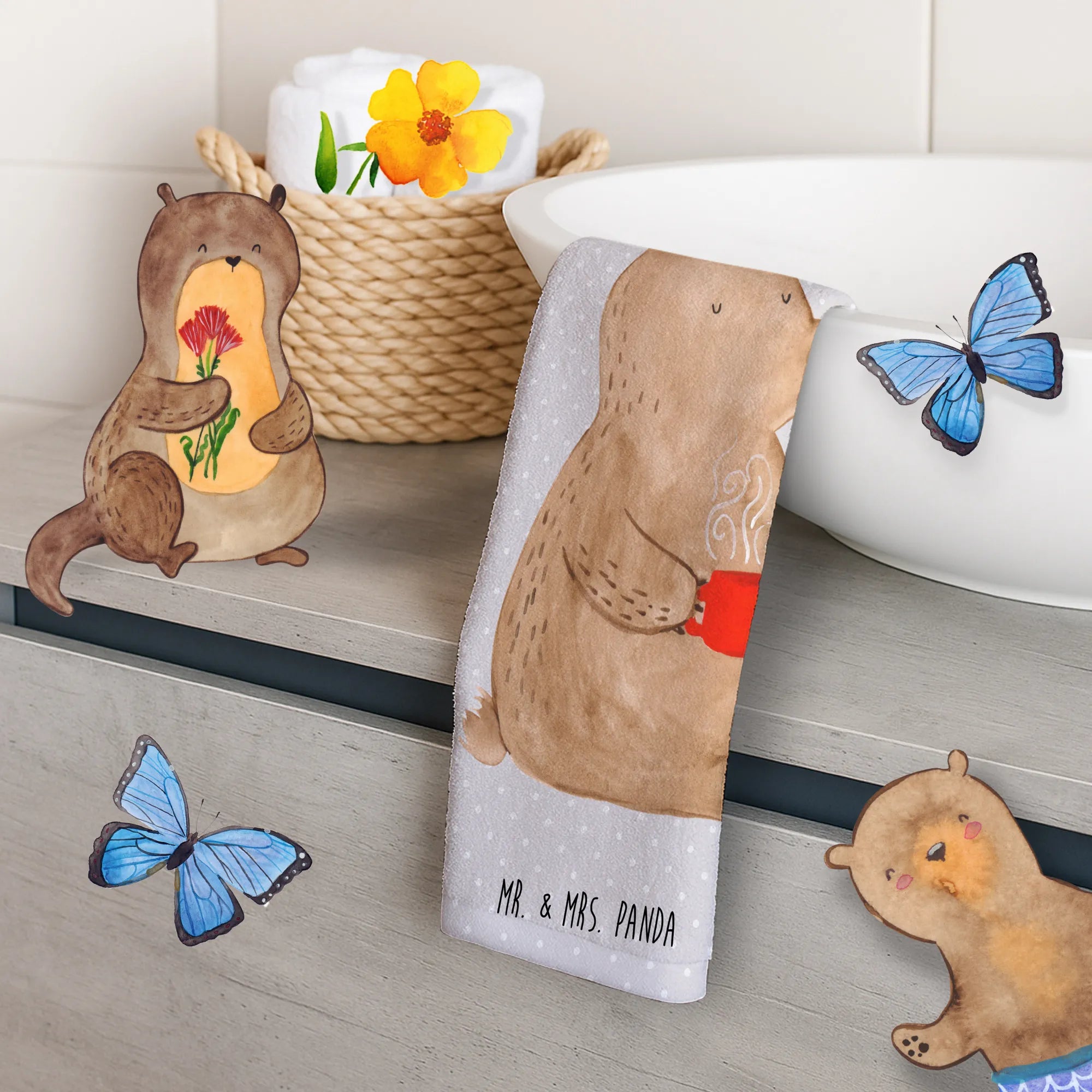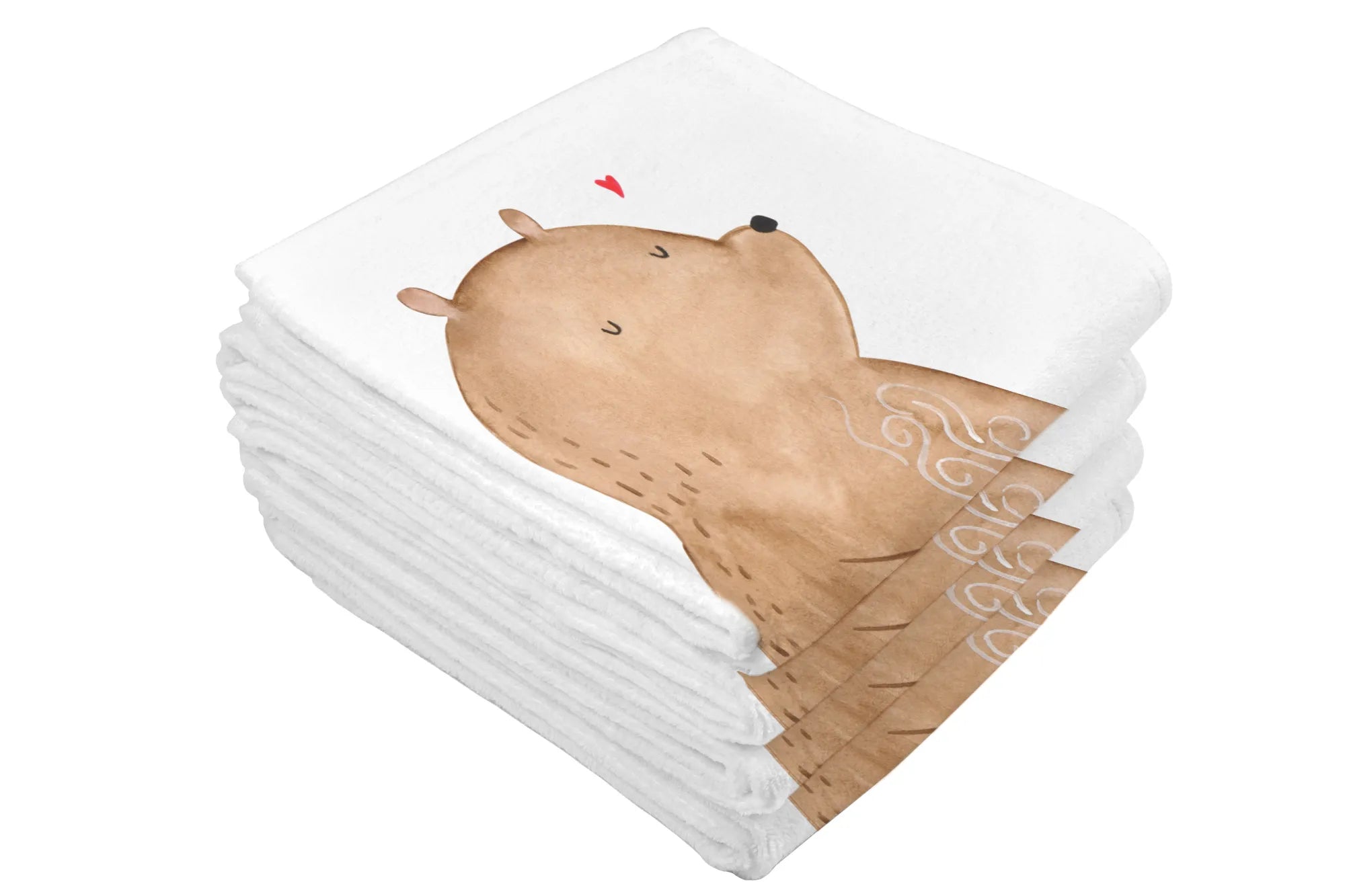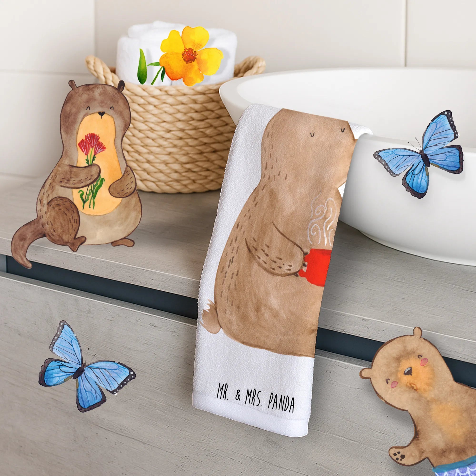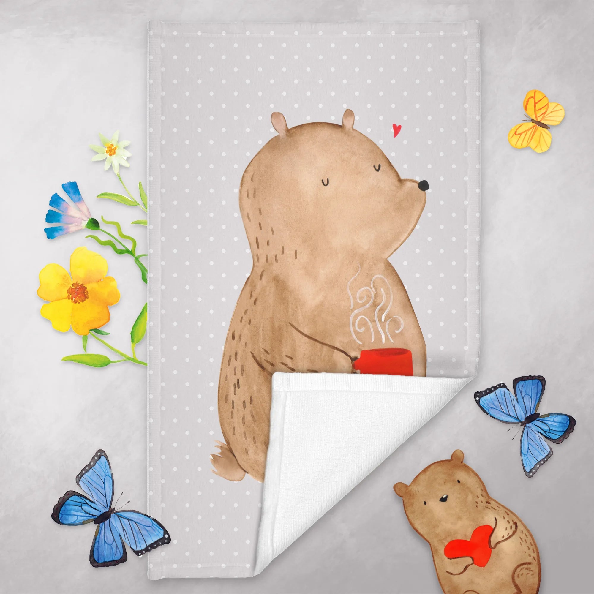 50 x 100 ręcznik Niedźwiedź kawa - 50 x 100 ręcznik - z napisem - biały