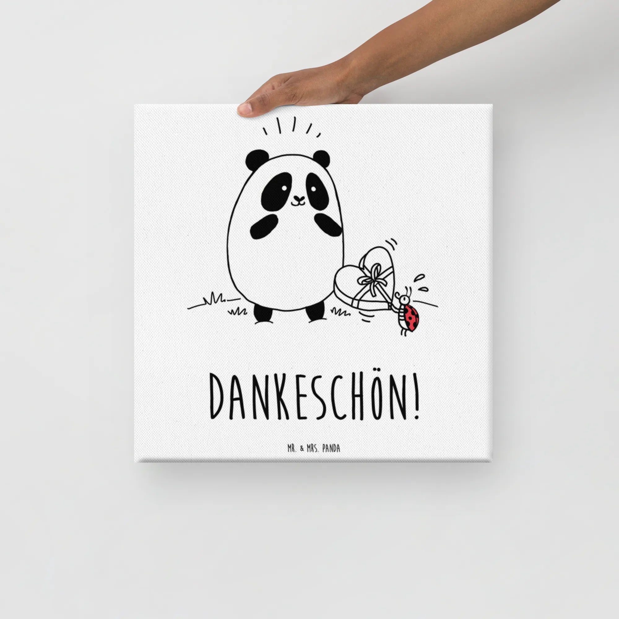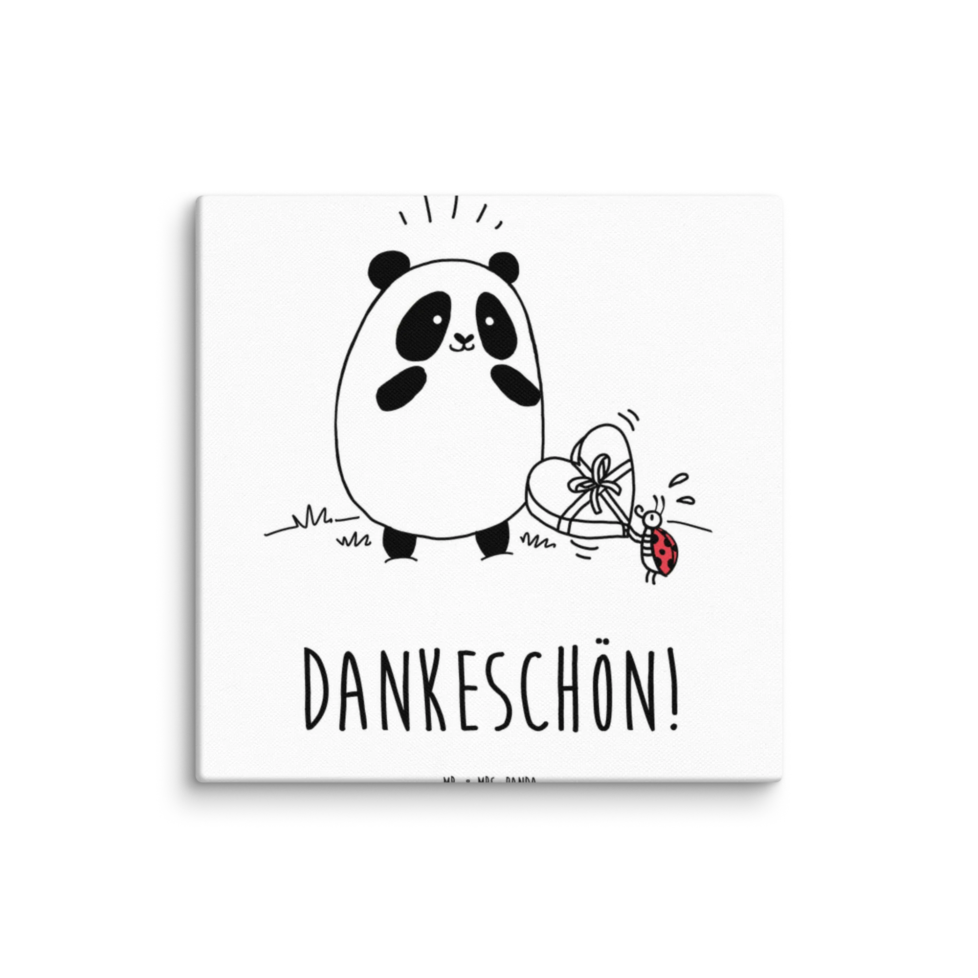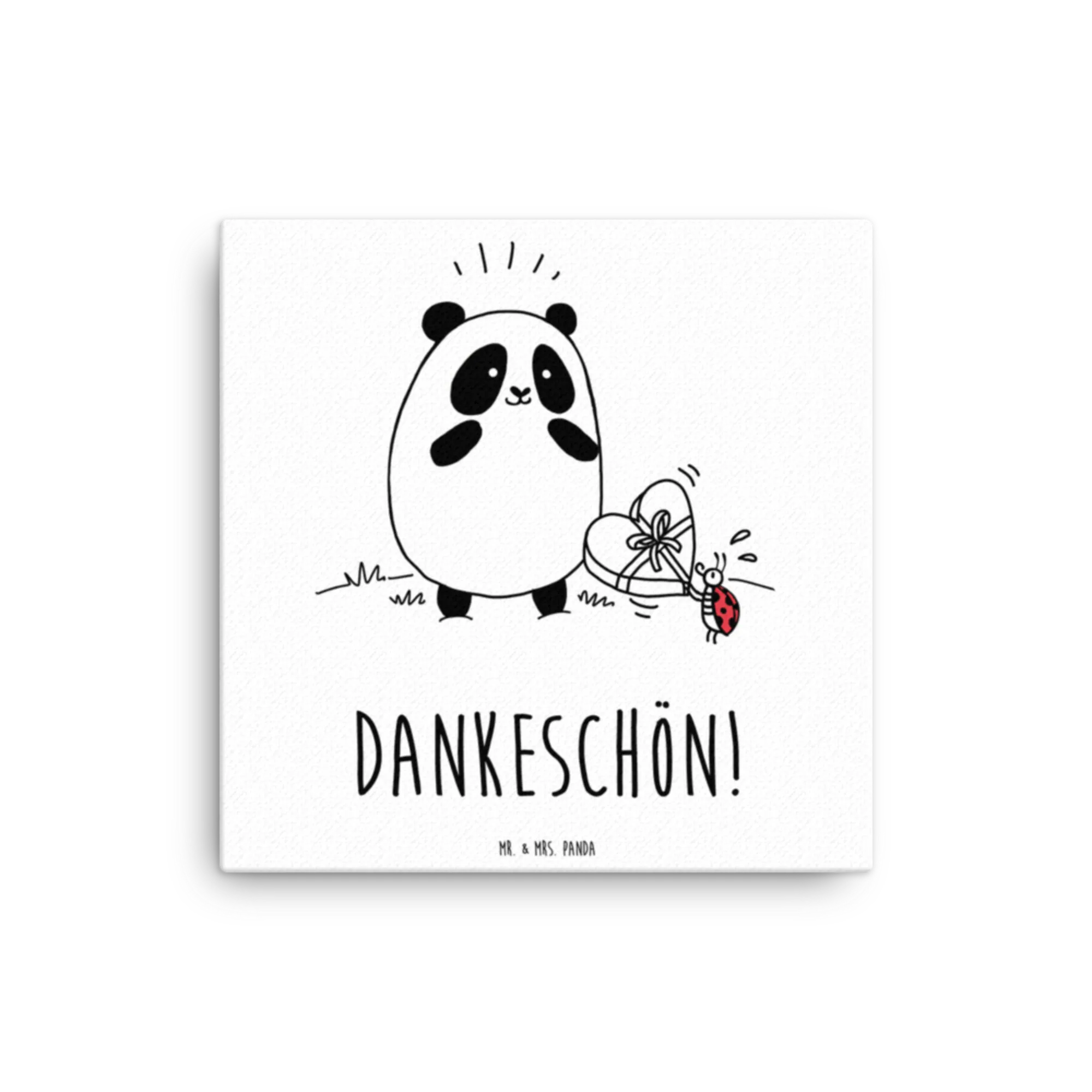 Das Leinwand Bild 'Easy & Peasy Dankeschön' aus der Kollektion Easy & Peasy von Mr. & Mrs. Panda ist das perfekte Geschenk für all jene, die Dankbarkeit in ihren Alltag bringen möchten. Mit einem fröhlichen Panda, der eine Schachtel Pralinen von einem süßen Marienkäfer entgegennimmt, strahlt dieses Motiv pure Lebensfreude aus.
