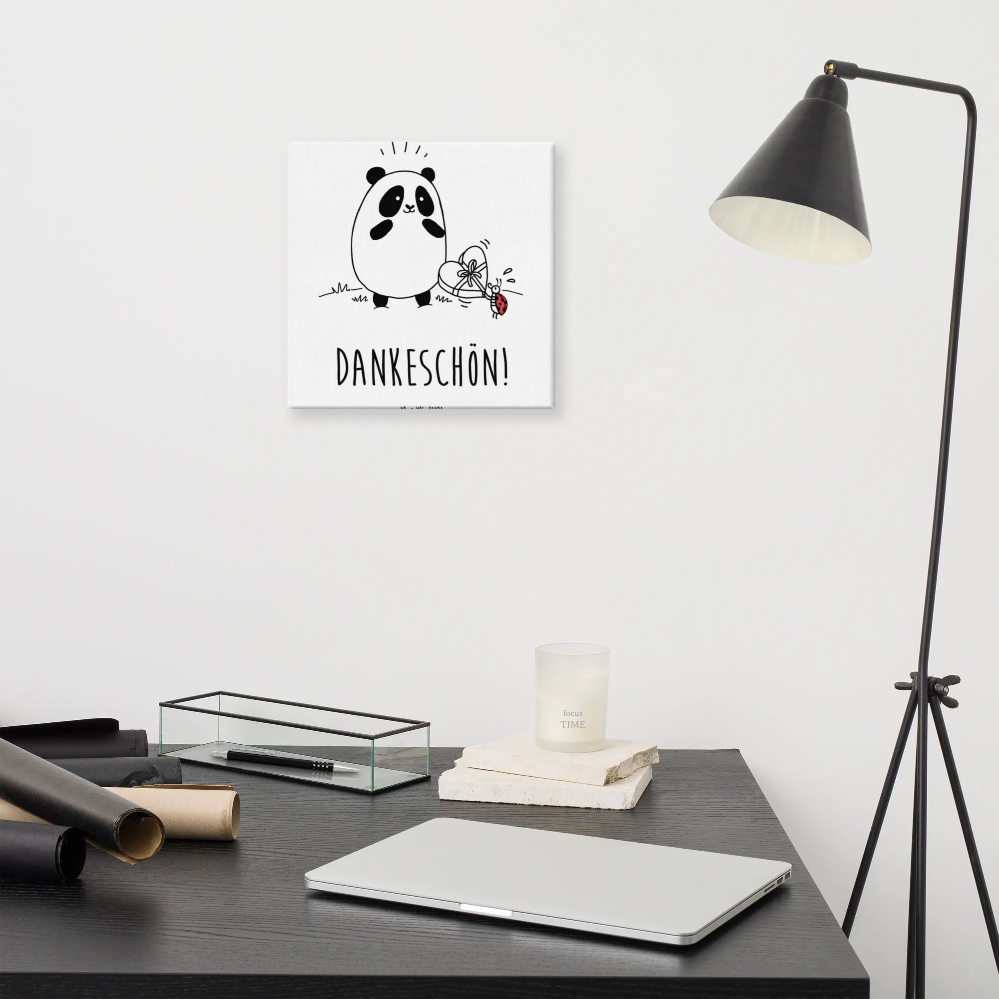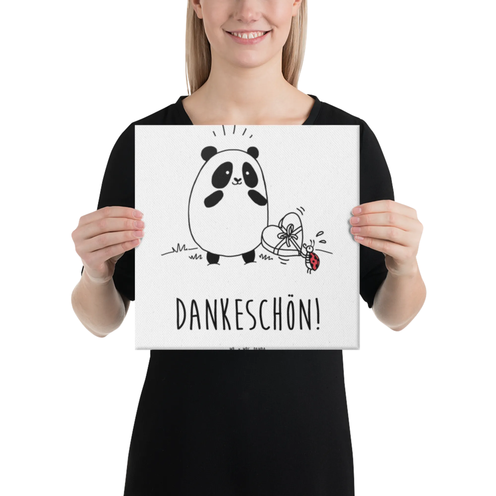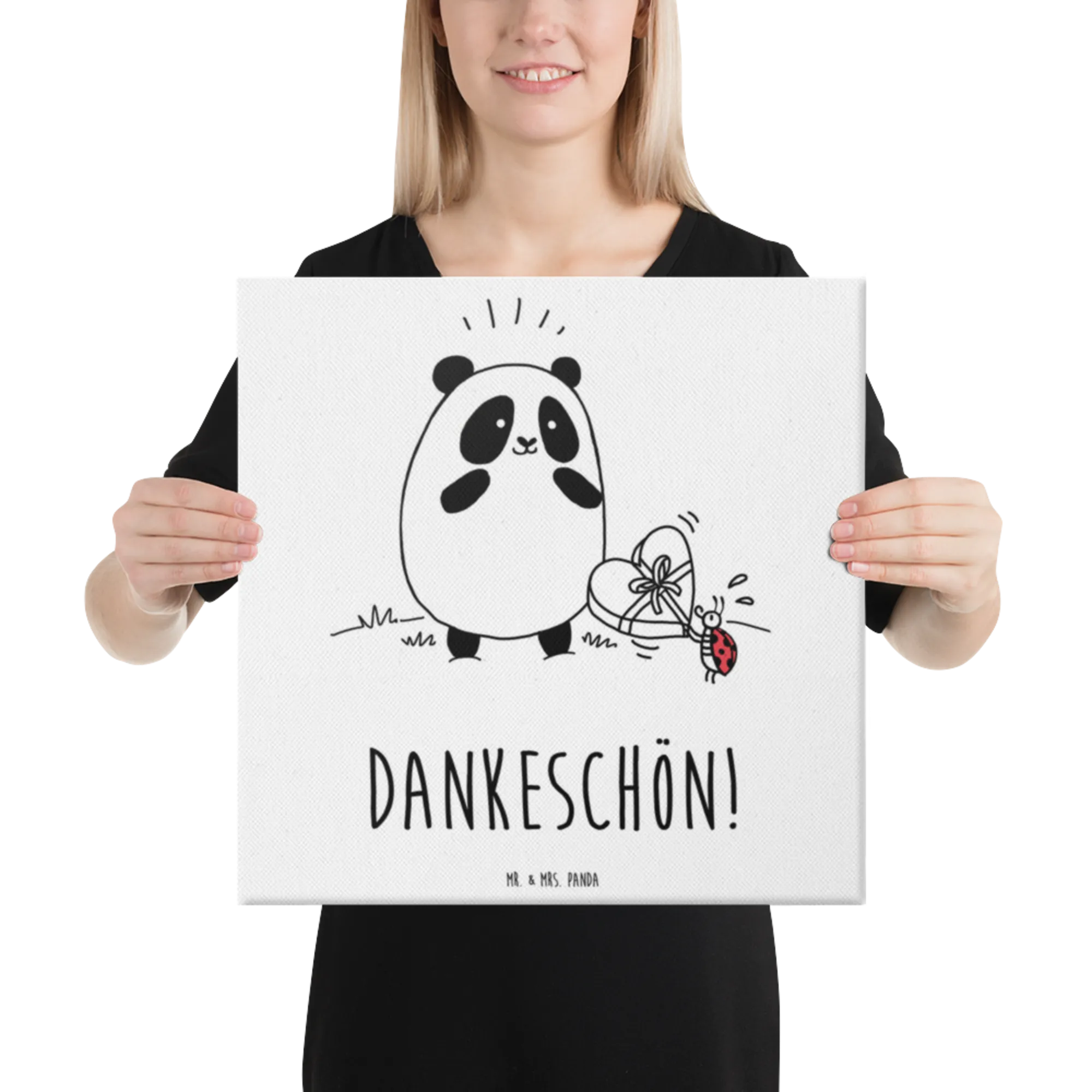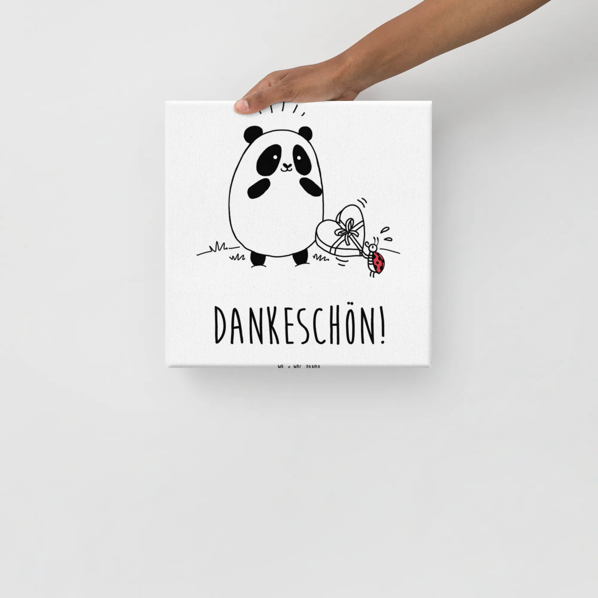 Das Leinwand Bild 'Easy & Peasy Dankeschön' aus der Kollektion Easy & Peasy von Mr. & Mrs. Panda ist das perfekte Geschenk für all jene, die Dankbarkeit in ihren Alltag bringen möchten. Mit einem fröhlichen Panda, der eine Schachtel Pralinen von einem süßen Marienkäfer entgegennimmt, strahlt dieses Motiv pure Lebensfreude aus.