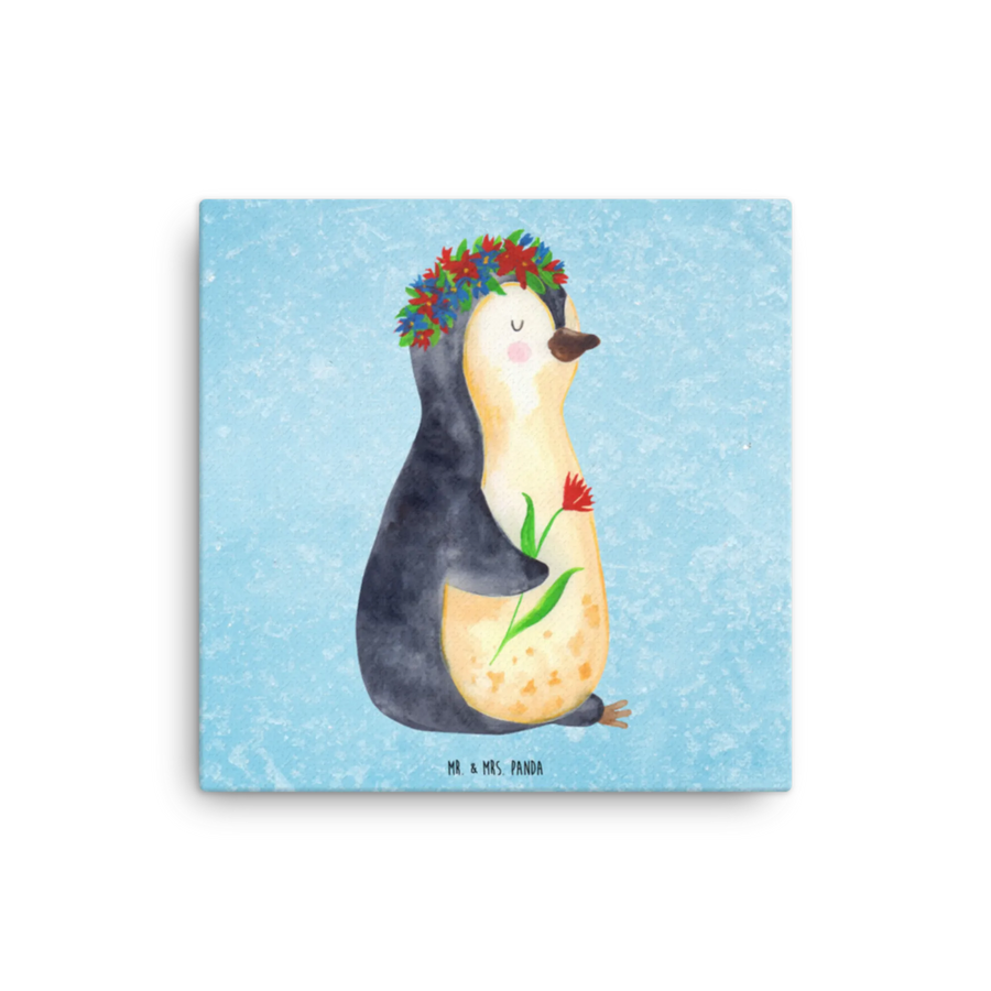 Leinwand Bild Pinguin Blumenkranz - 30 x 30 cm - ohne Spruch - Eisblau