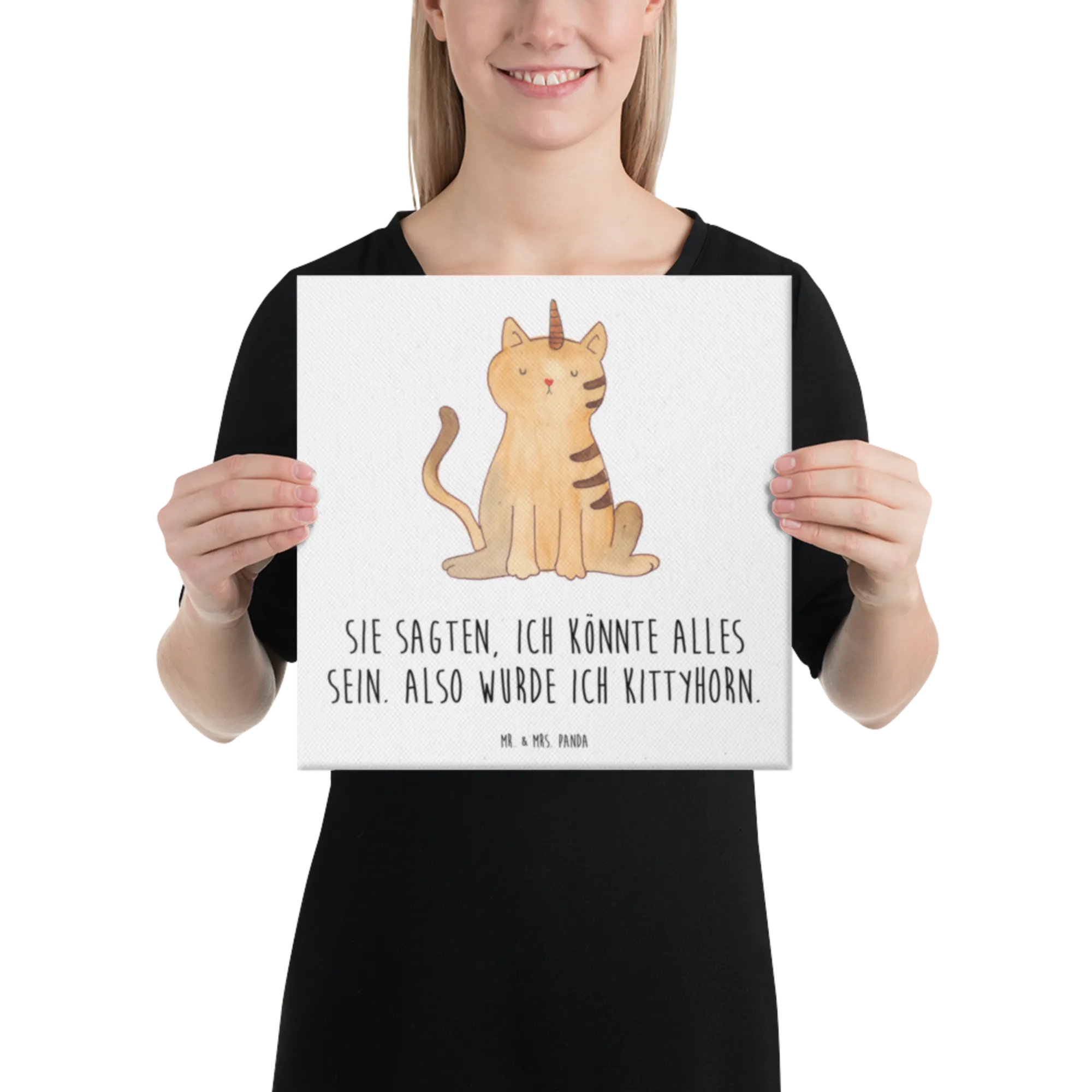 Obraz na płótnie jednorożec kot - 30 x 30 cm - z napisem