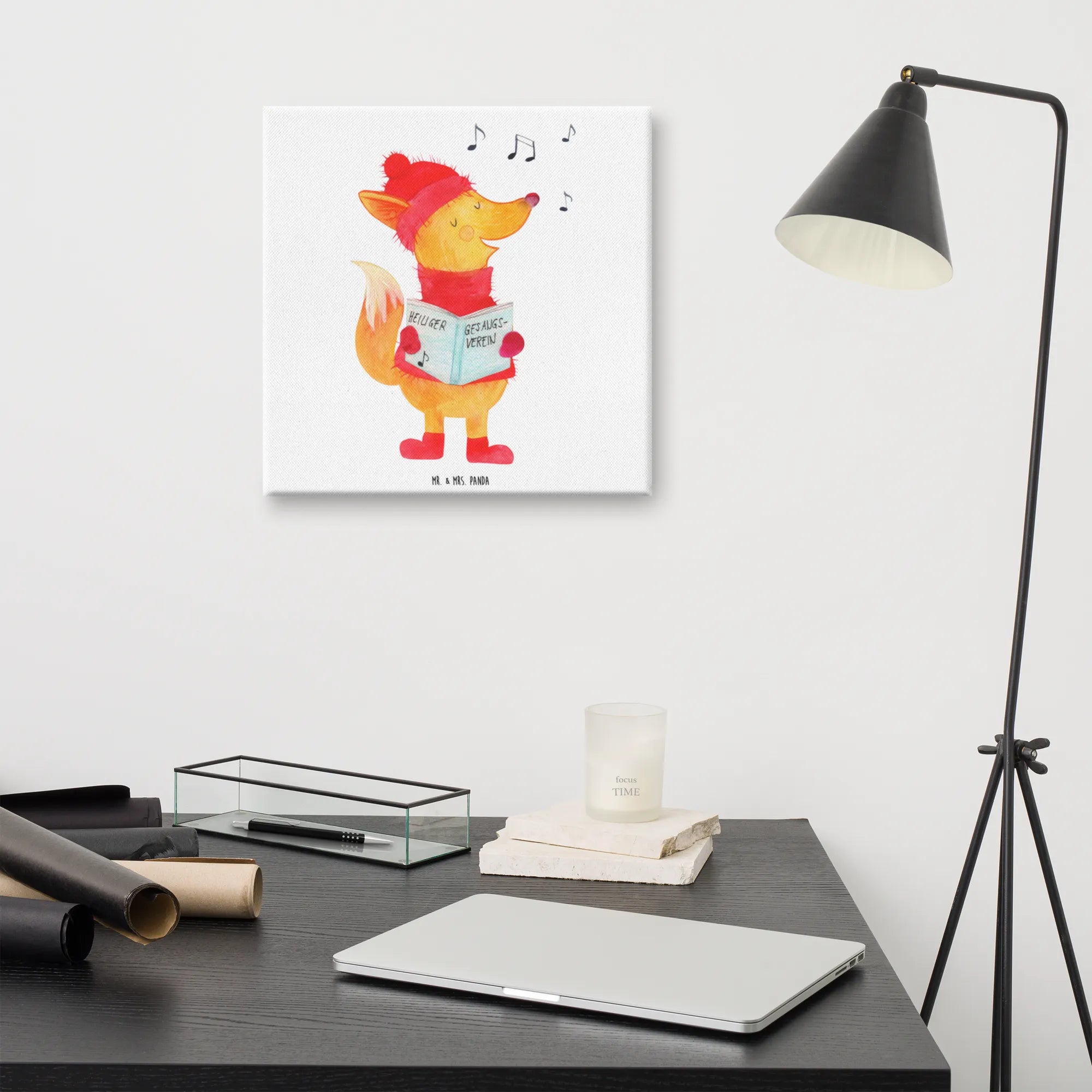 Obraz na płótnie lis Śpiewak - 40 x 40 cm - z napisem - biały