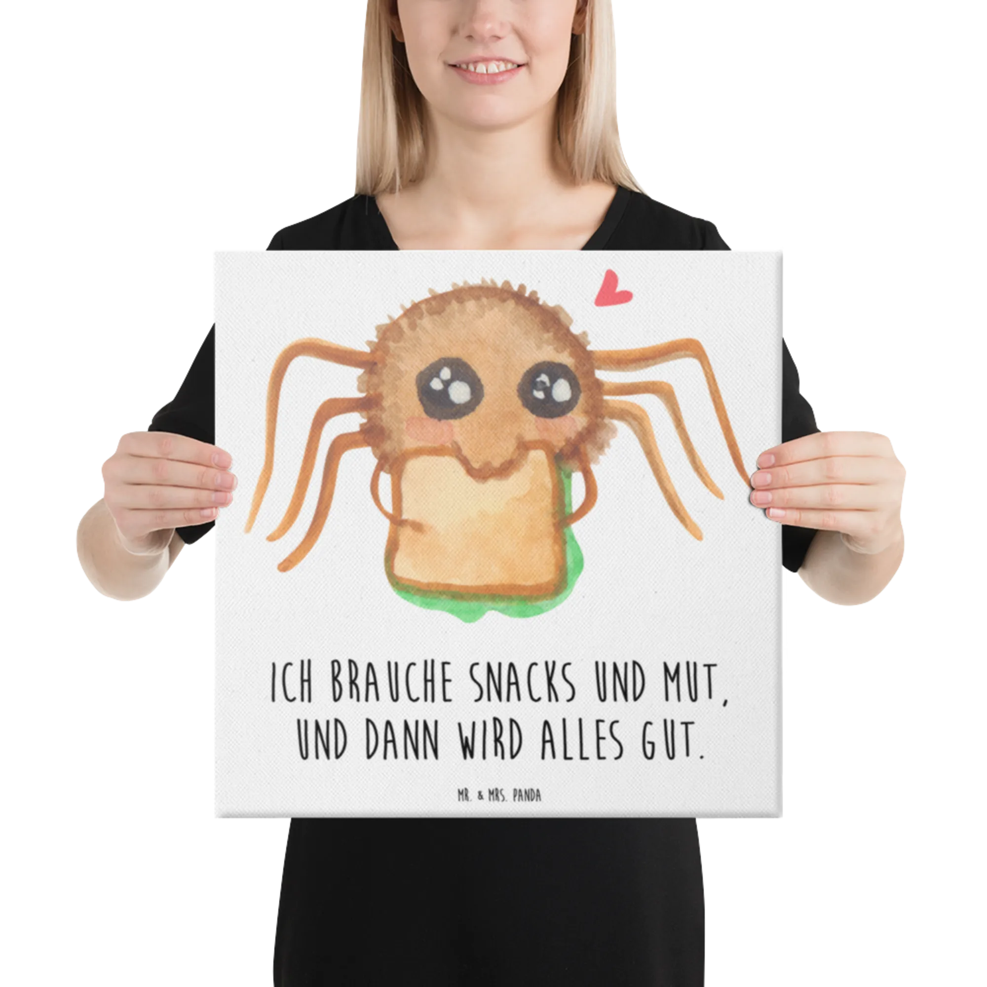 Obraz na płótnie Pająk Agata kanapka - 40 x 40 cm - z napisem - biały