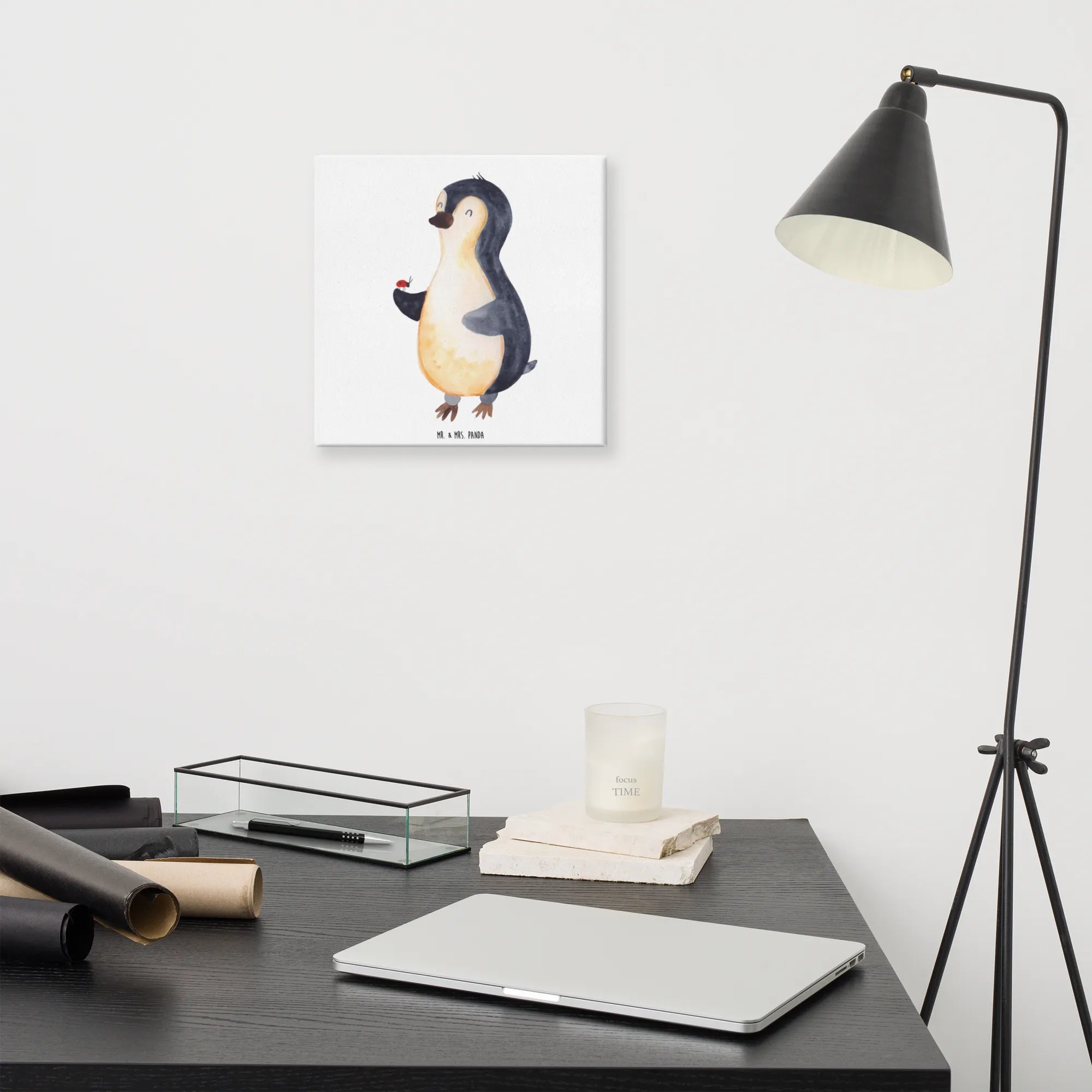 Obraz na płótnie Pingwin biedronka - 40 x 40 cm - z napisem - biały