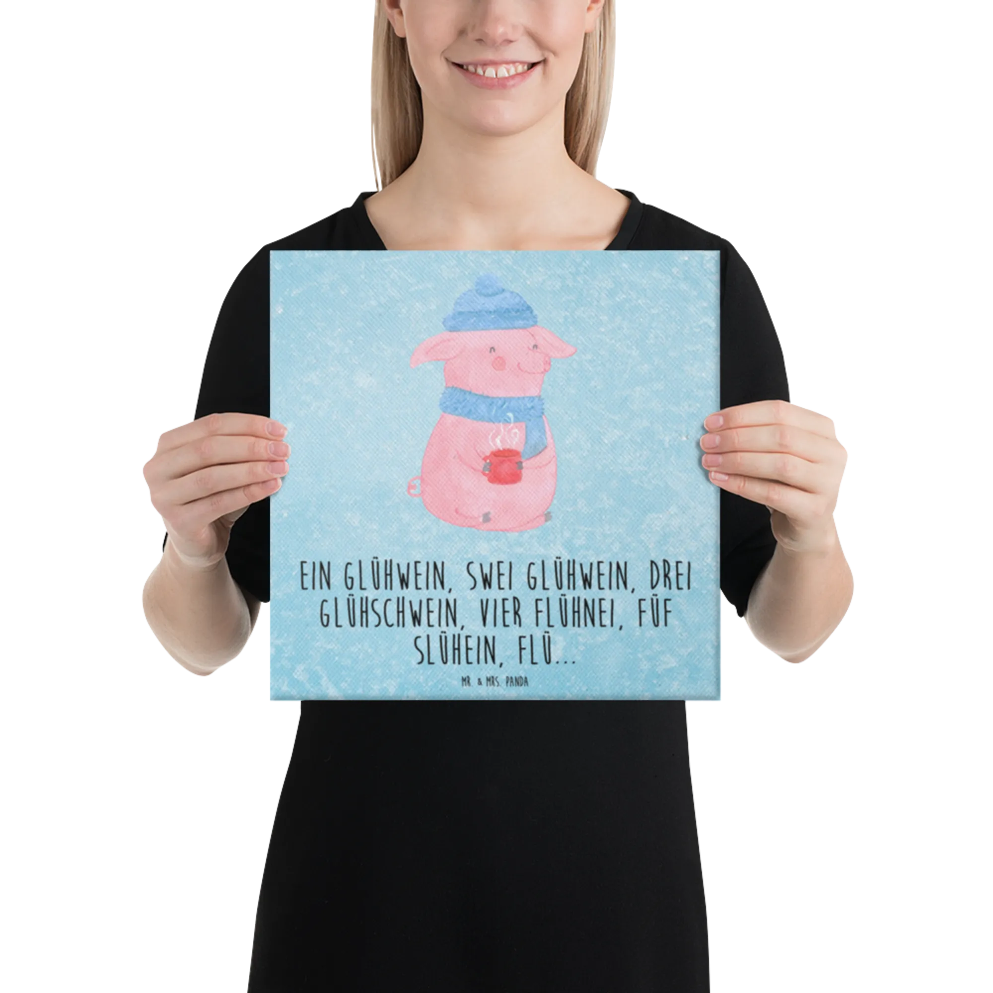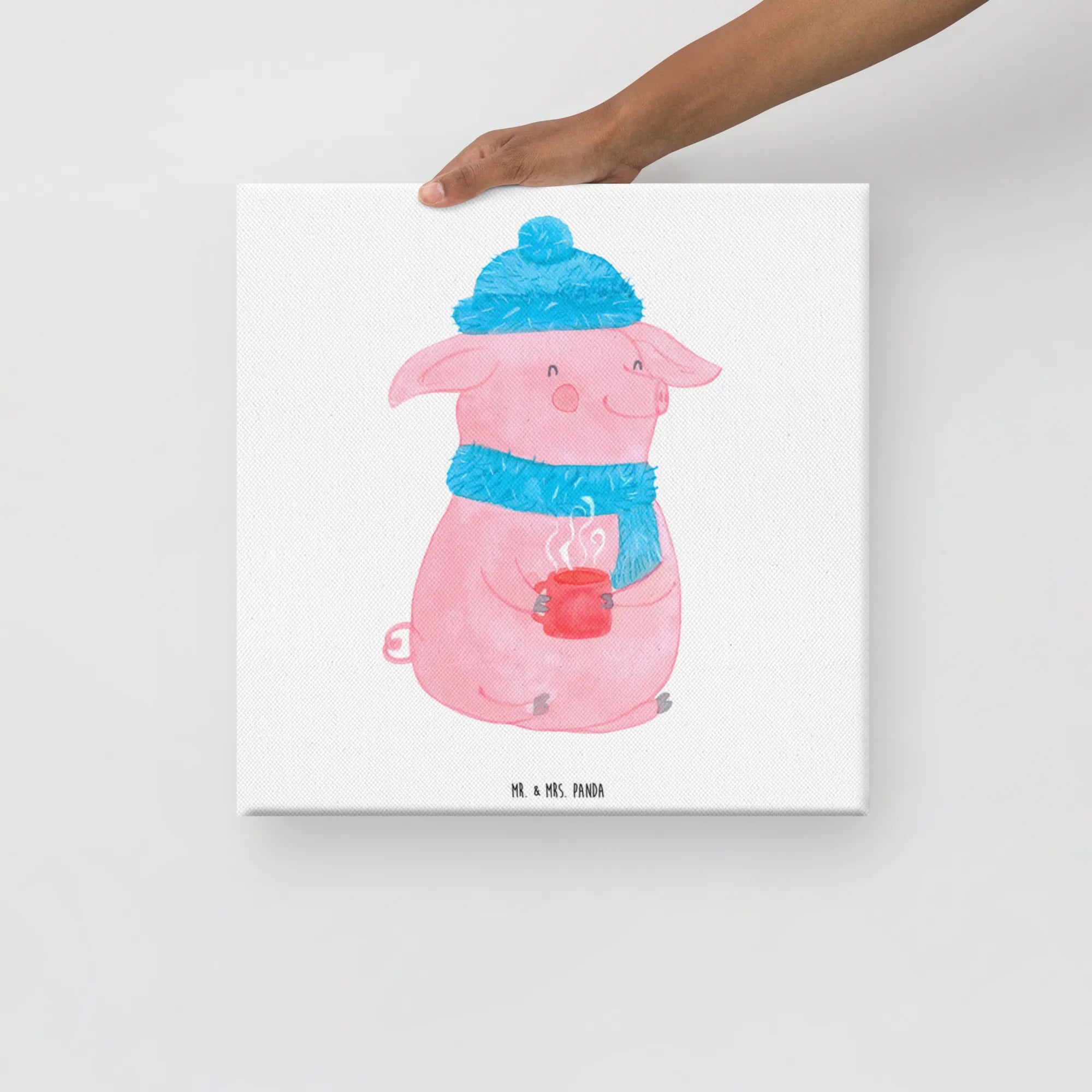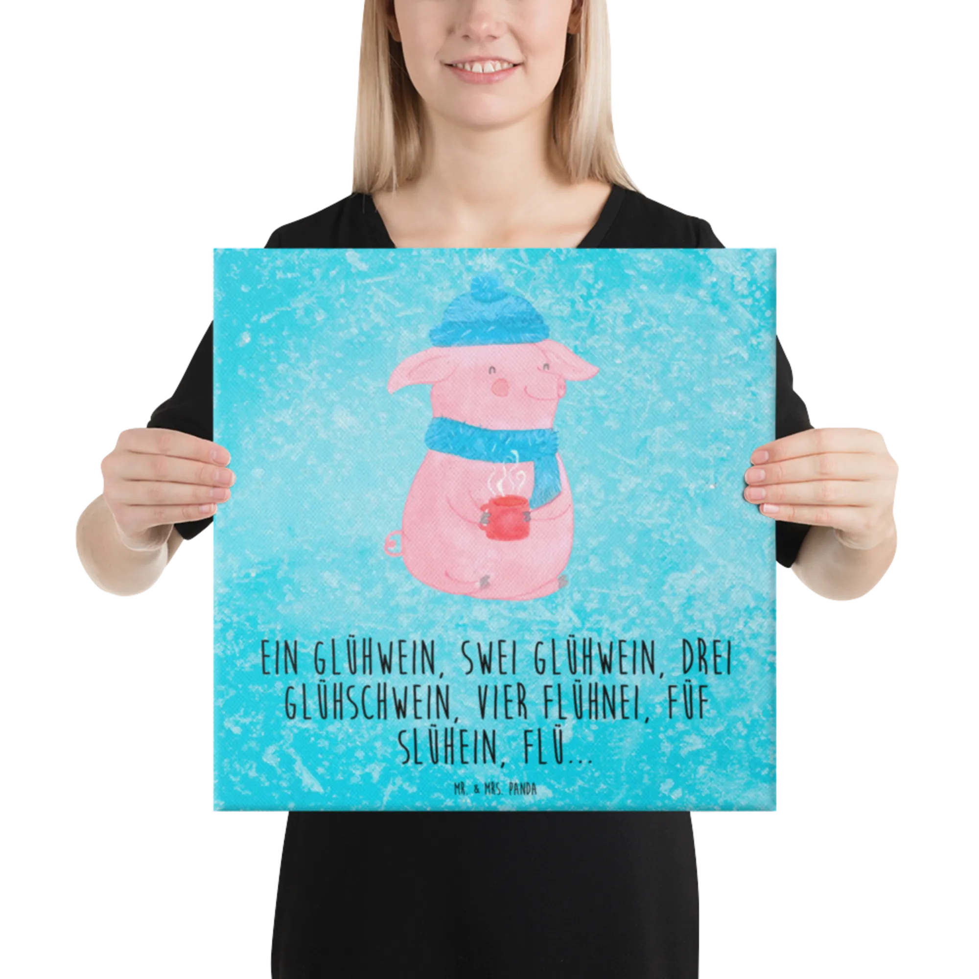 Obraz na płótnie Świnka grzane wino - 40 x 40 cm - z napisem - biały