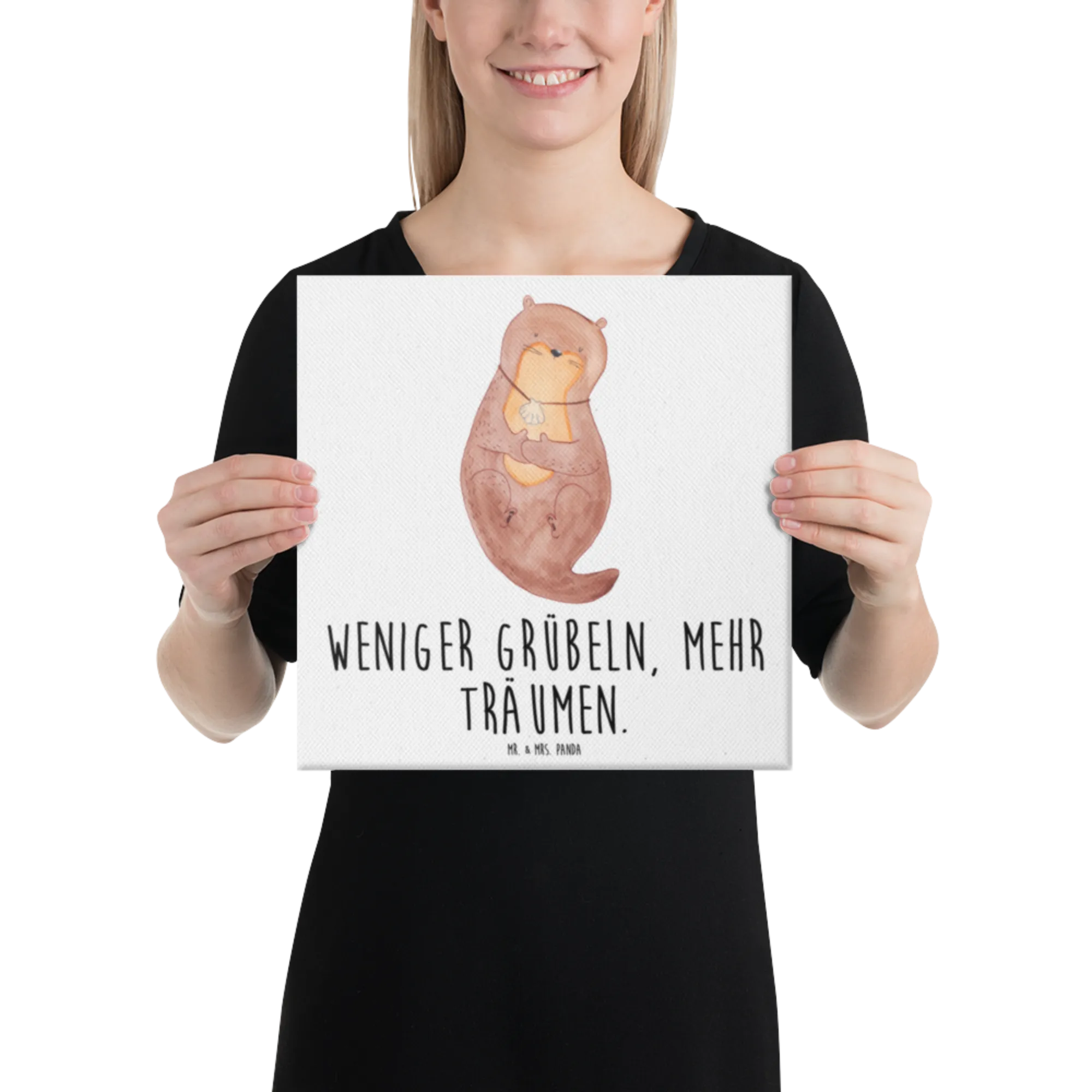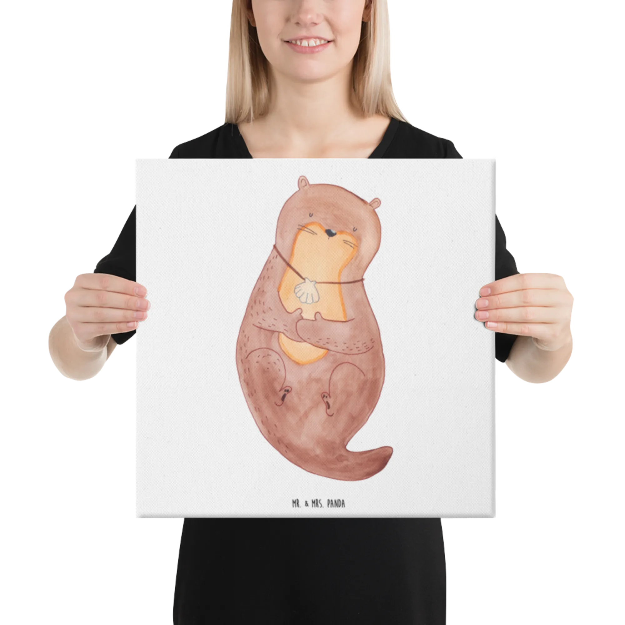 Obraz na płótnie wydra muszla - 40 x 40 cm - z napisem - Pastelowy szary
