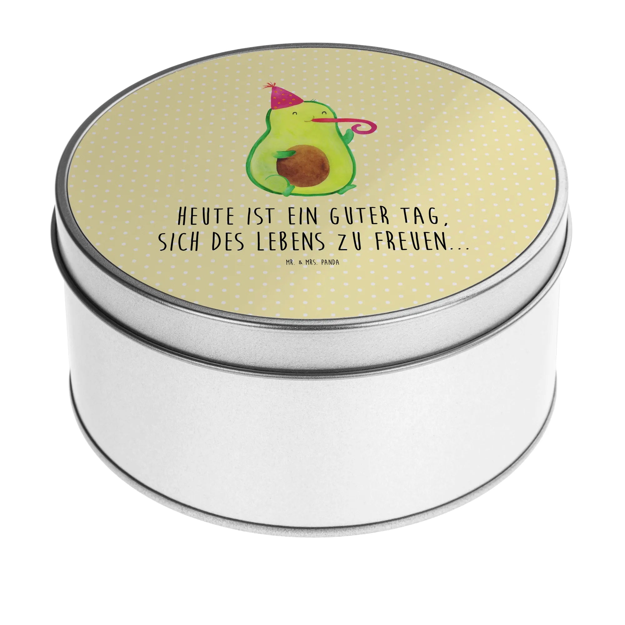 okrągła puszka z blachy Awokado impreza - z napisem
