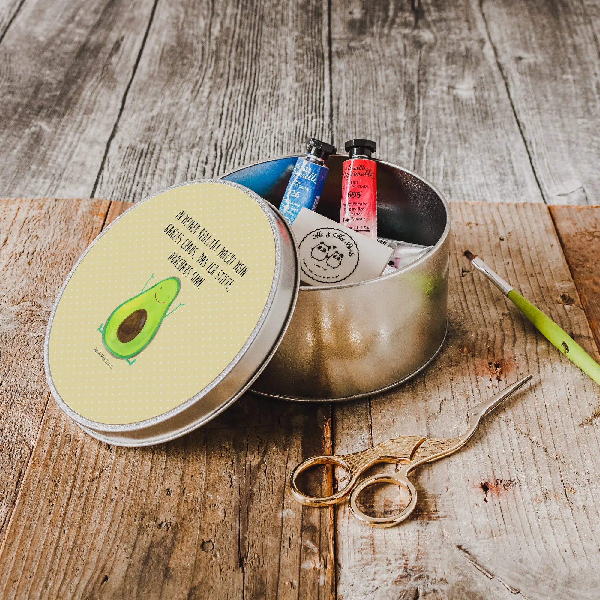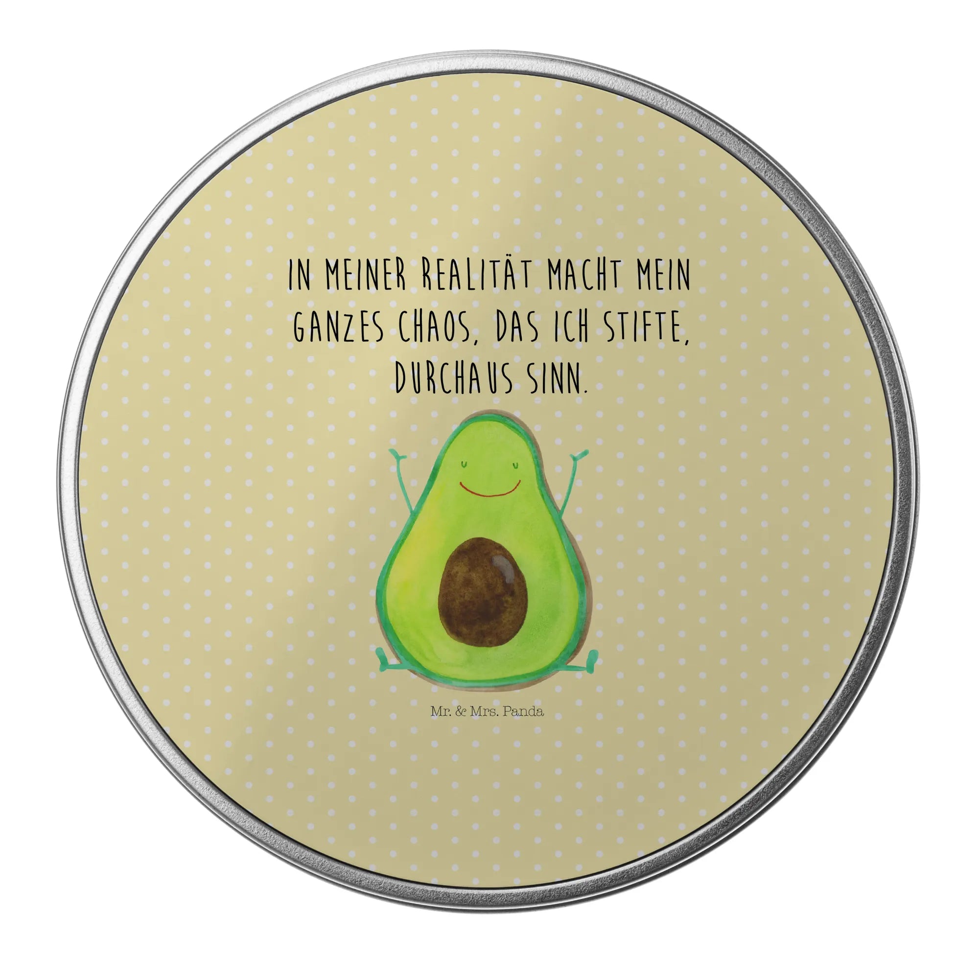 okrągła puszka z blachy Awokado Szczęśliwy - z napisem