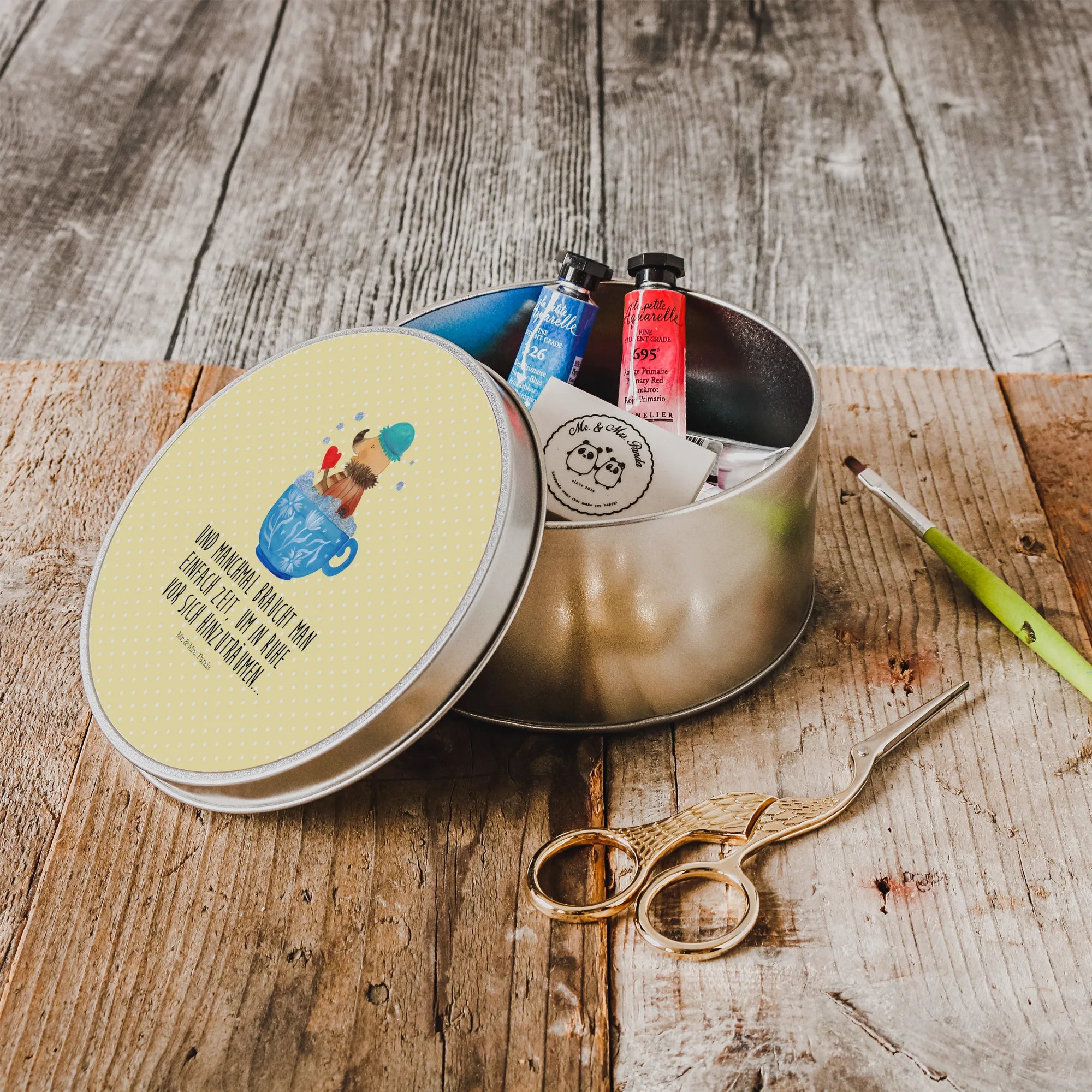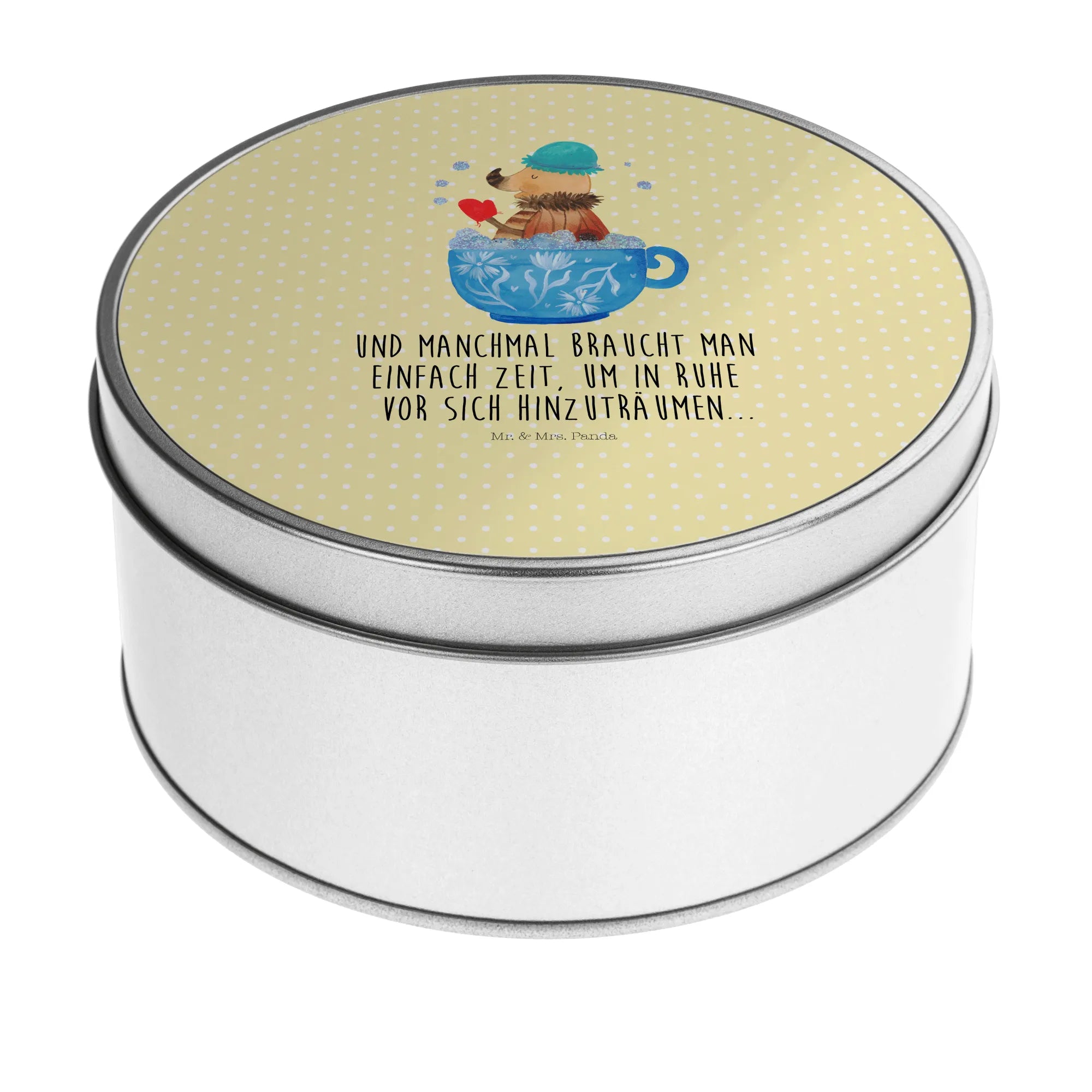 okrągła puszka z blachy Ćma kąpiel pianowa - z napisem