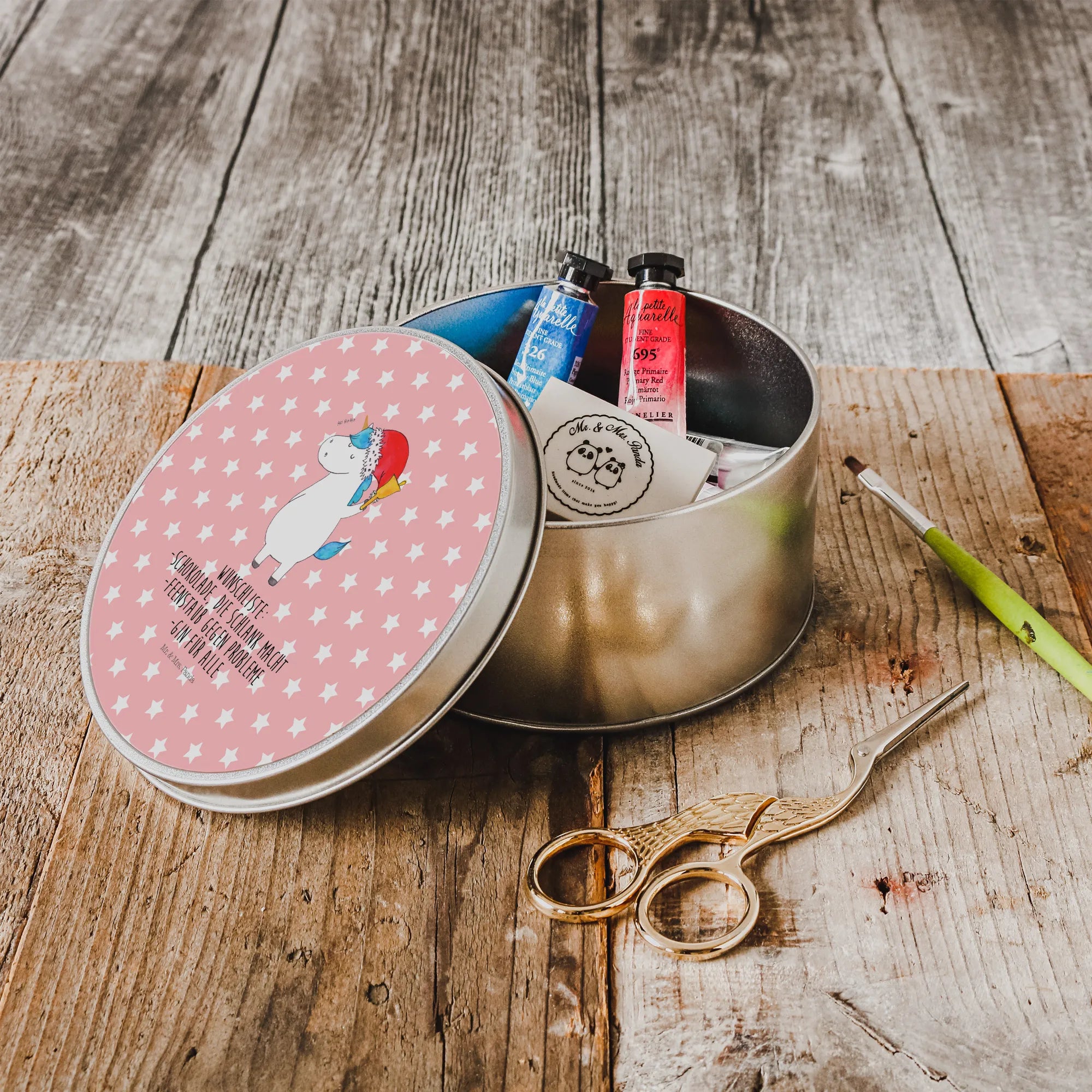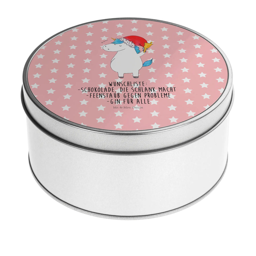 okrągła puszka z blachy Jednorożec Mikołaj - z napisem