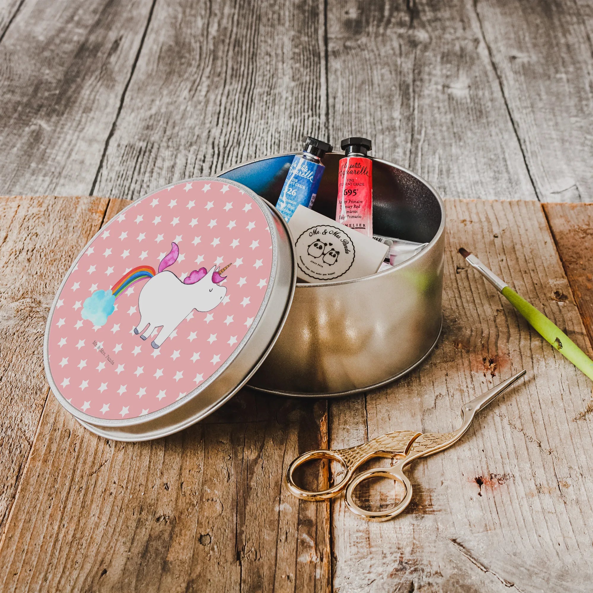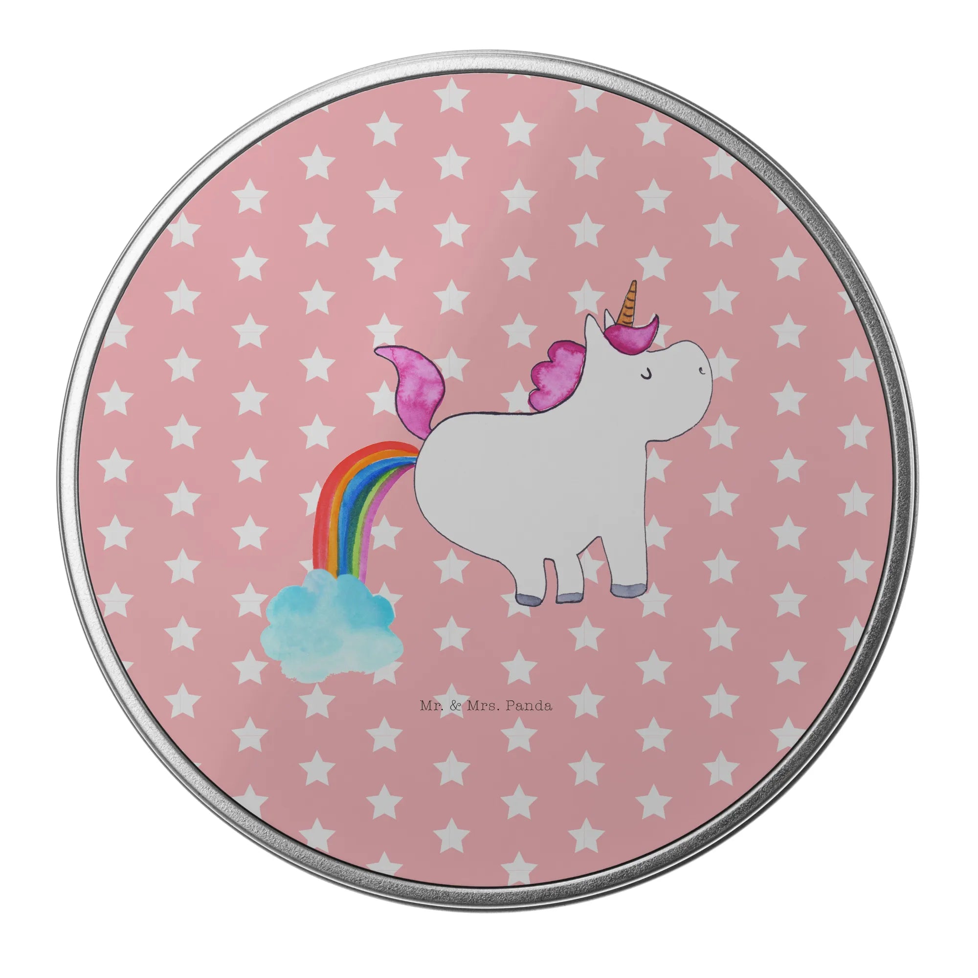 okrągła puszka z blachy Jednorożec puszczać bąki - z napisem
