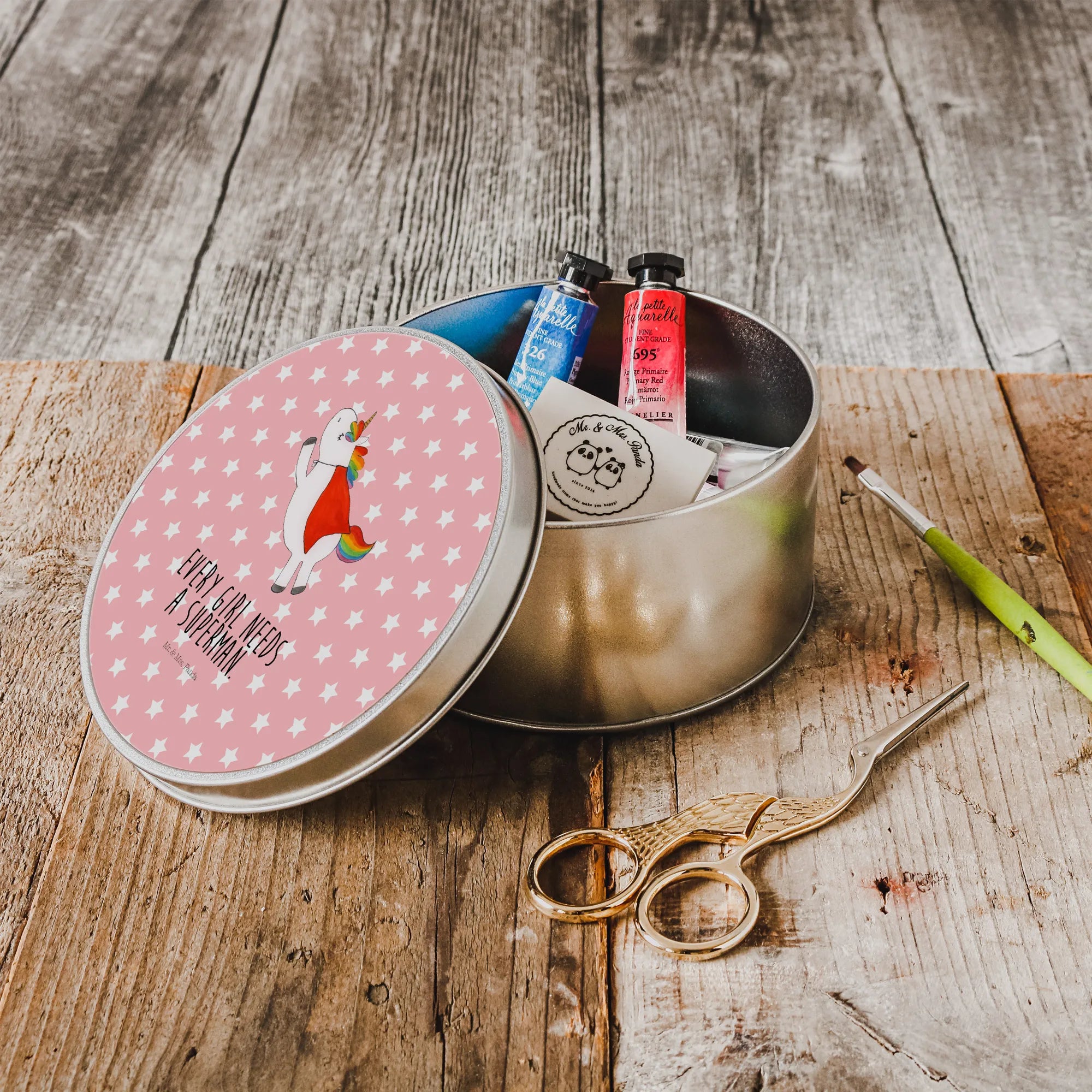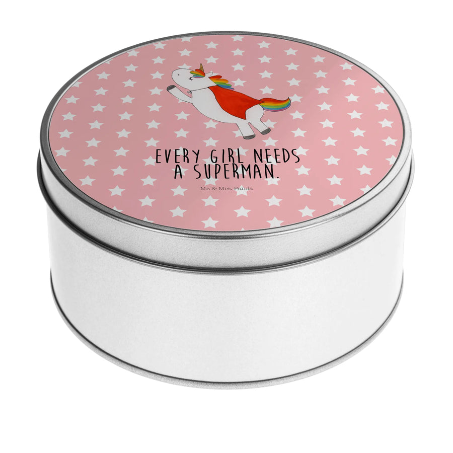 okrągła puszka z blachy Jednorożec Super - z napisem