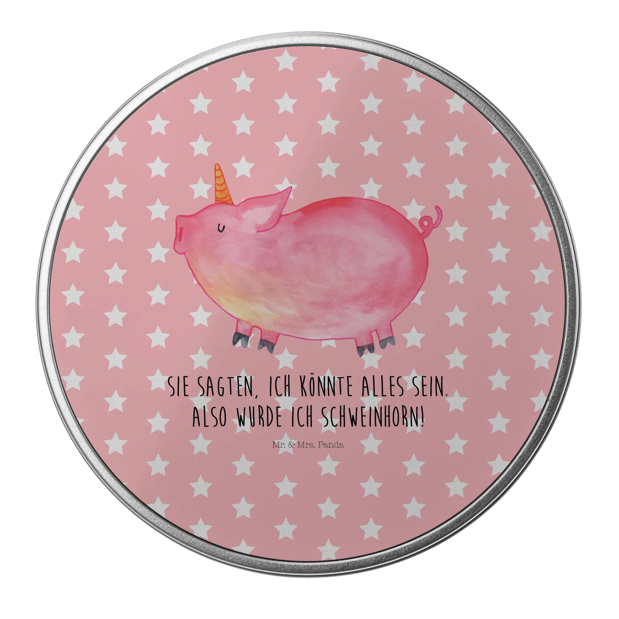okrągła puszka z blachy jednorożec świnia - z napisem