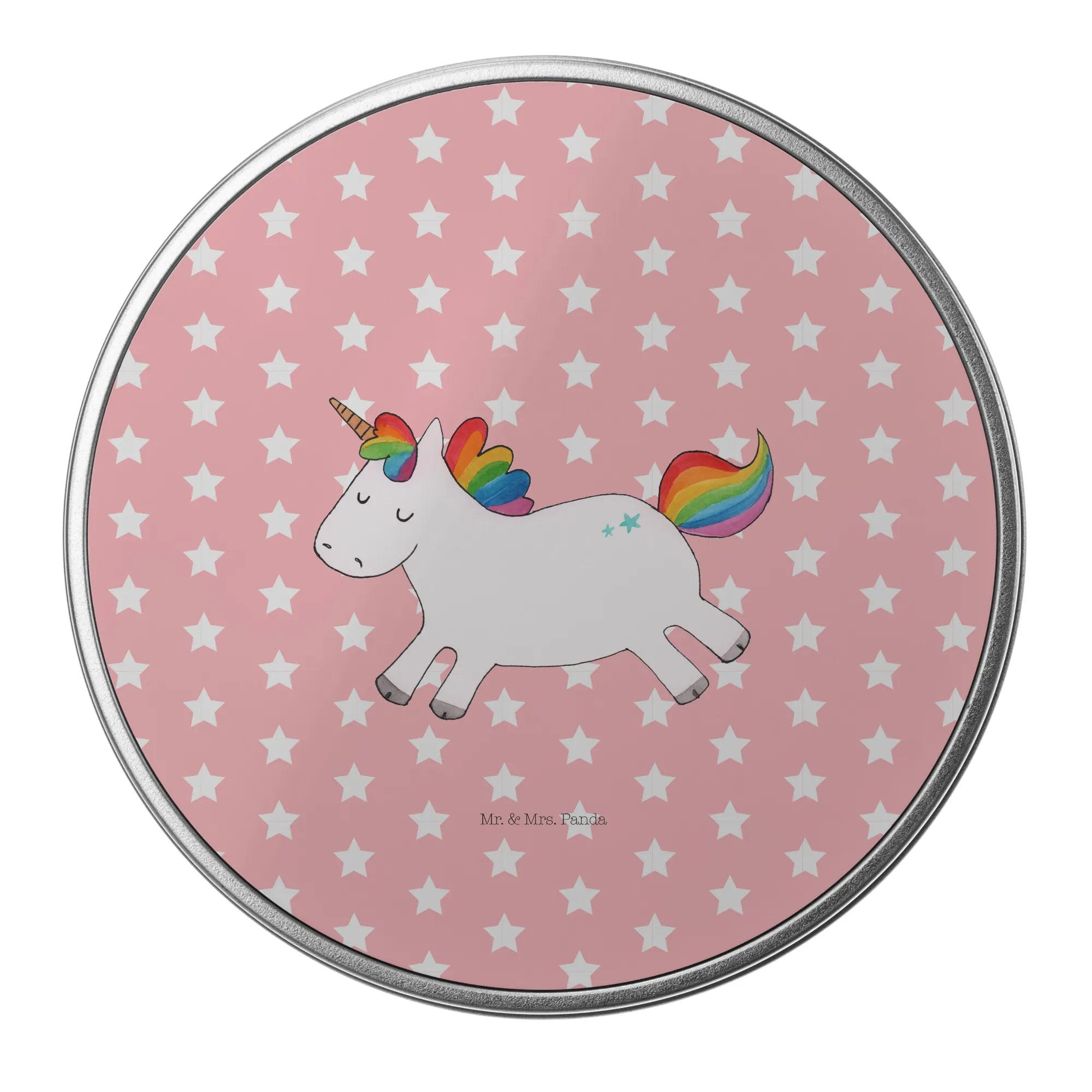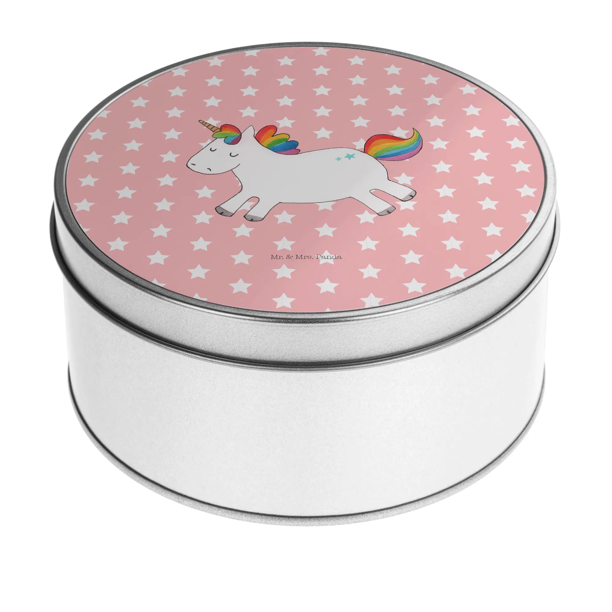 okrągła puszka z blachy Jednorożec Szczęśliwy - z napisem