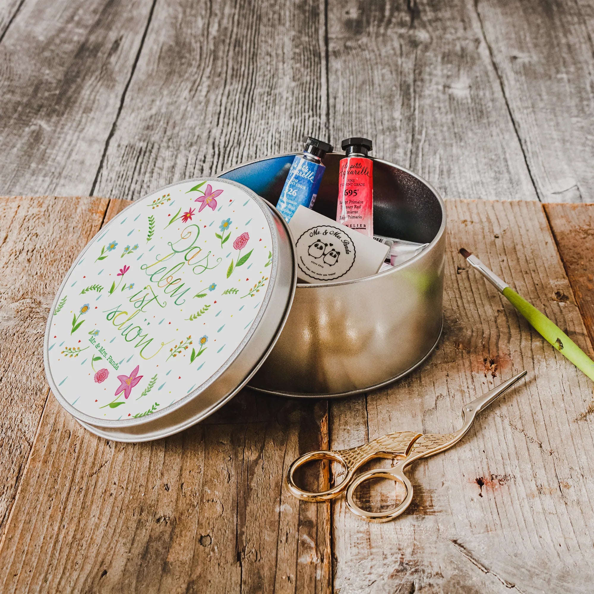 okrągła puszka z blachy kwiaty Życie