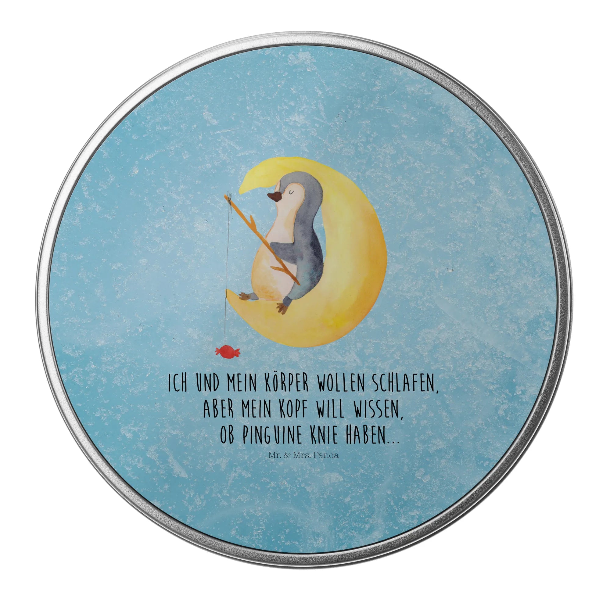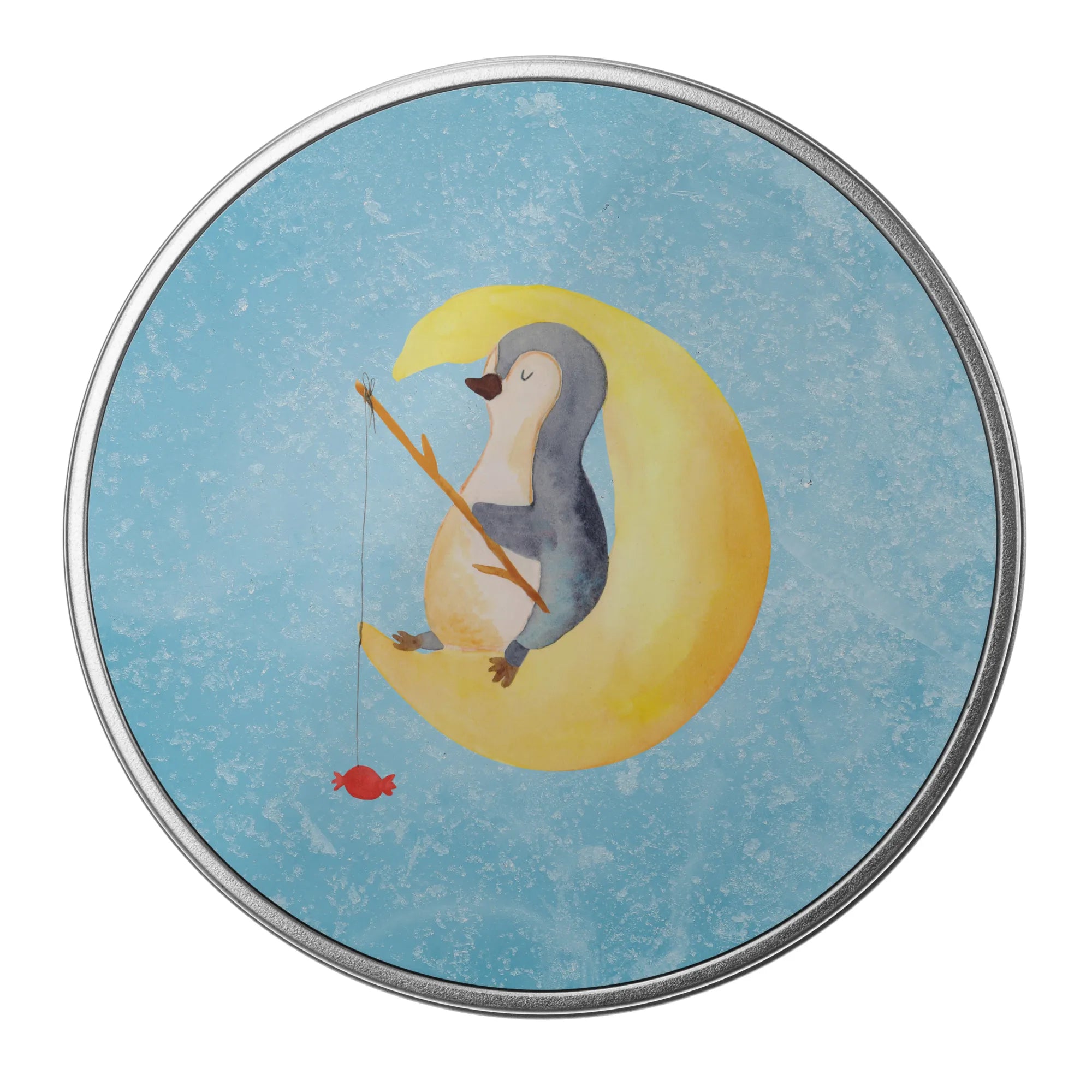okrągła puszka z blachy pingwin księżyc - z napisem