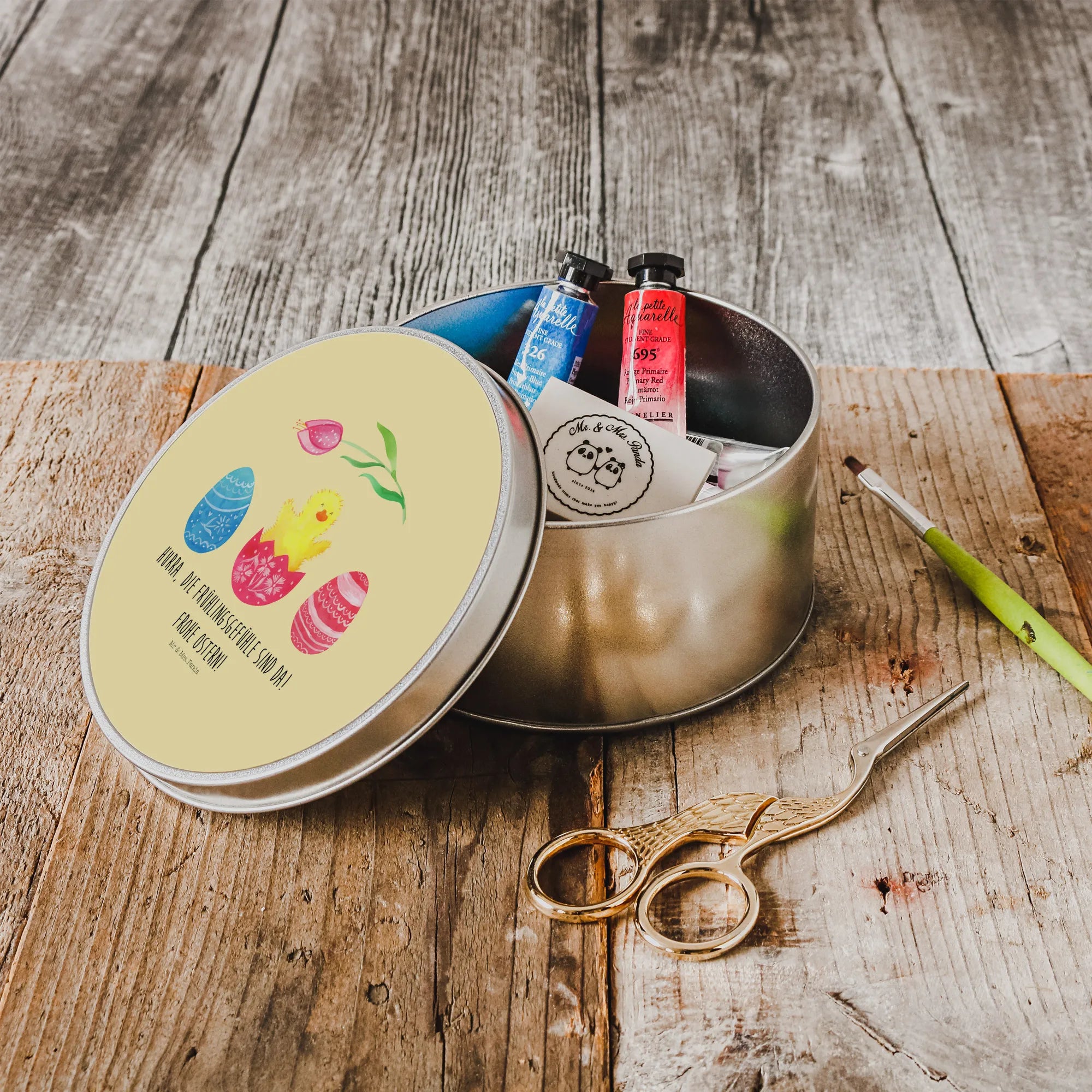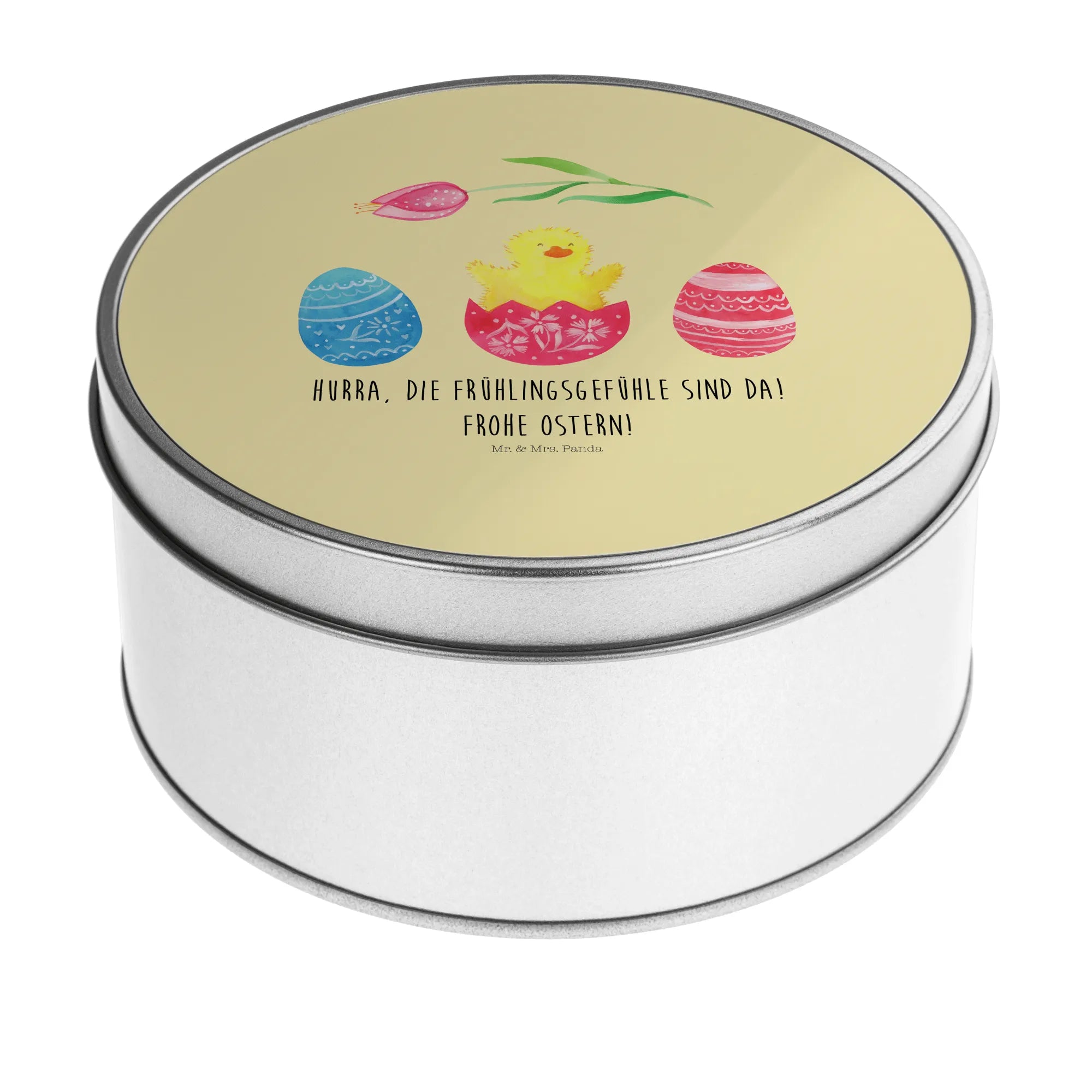 okrągła puszka z blachy pisklę wykluwanie - z napisem