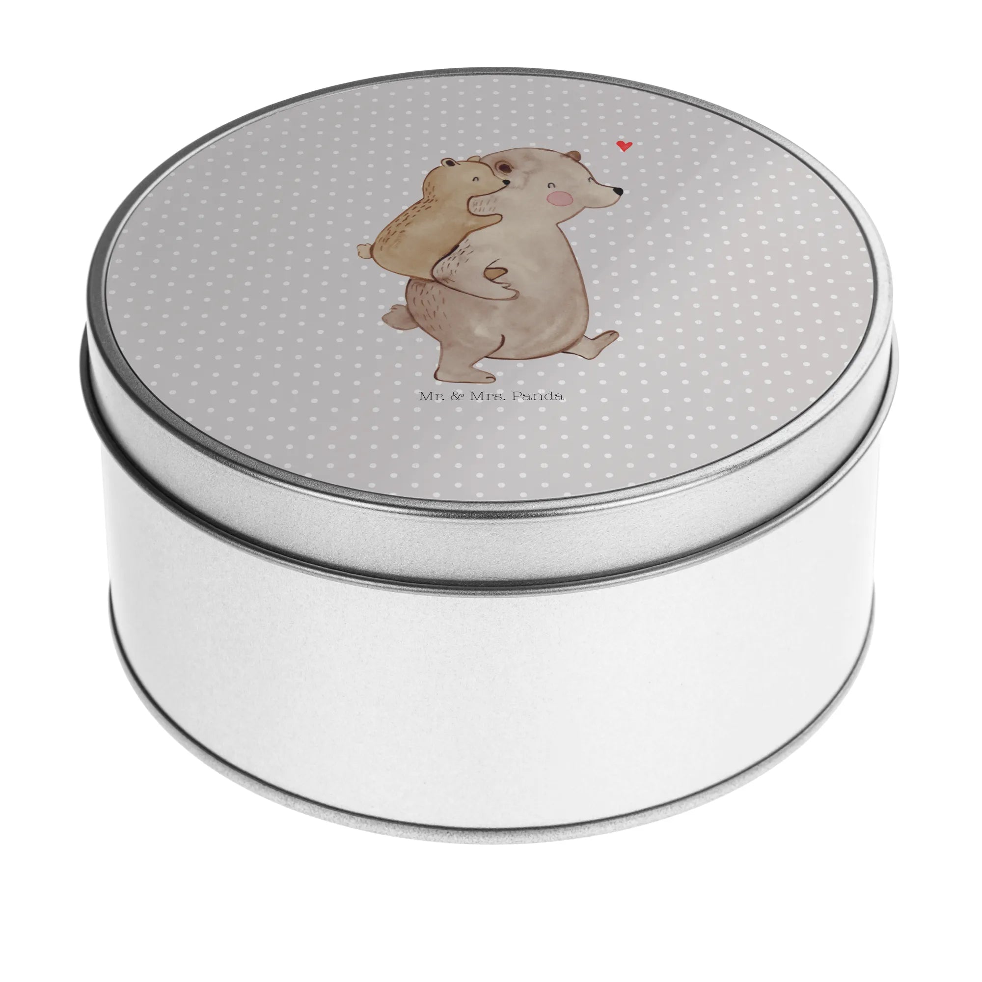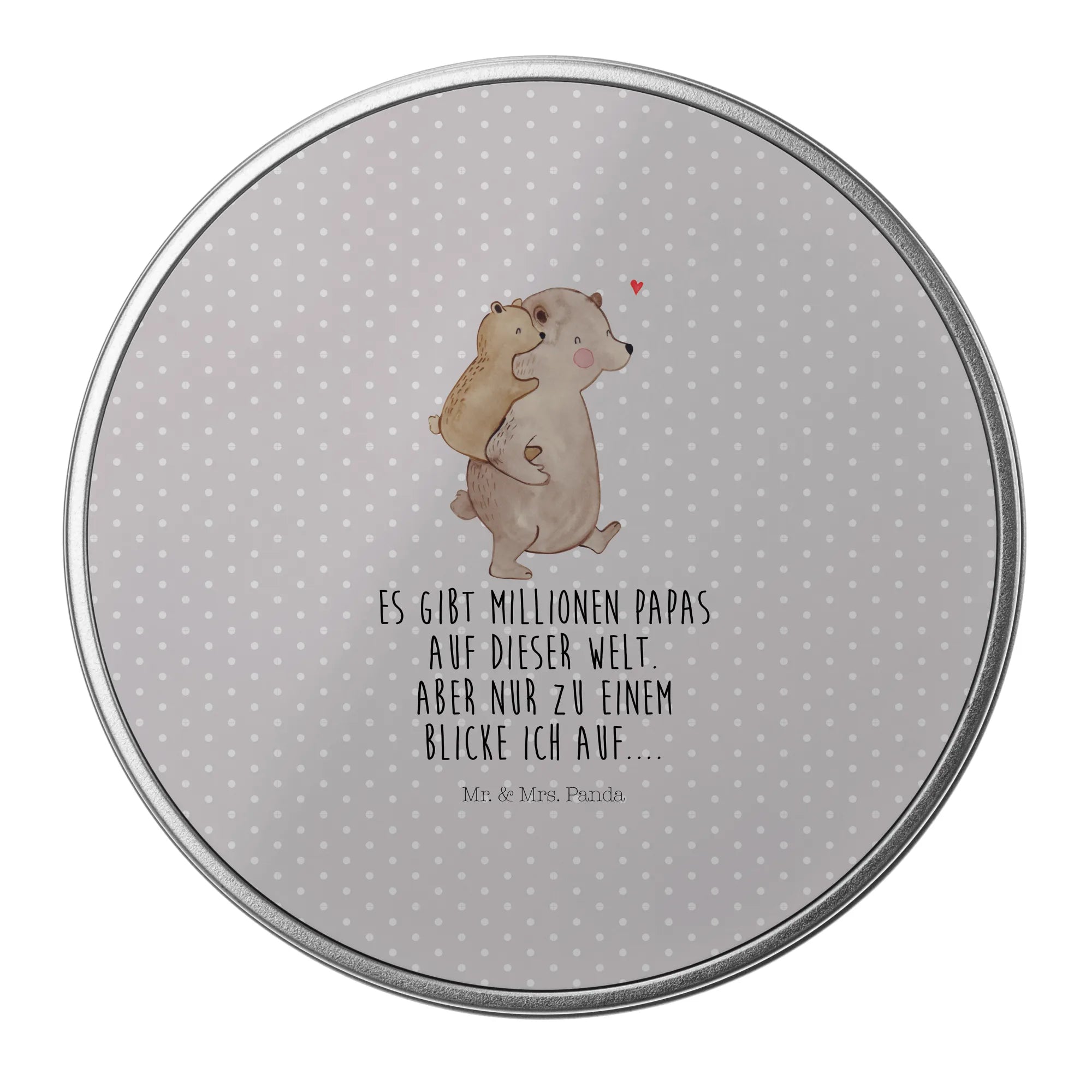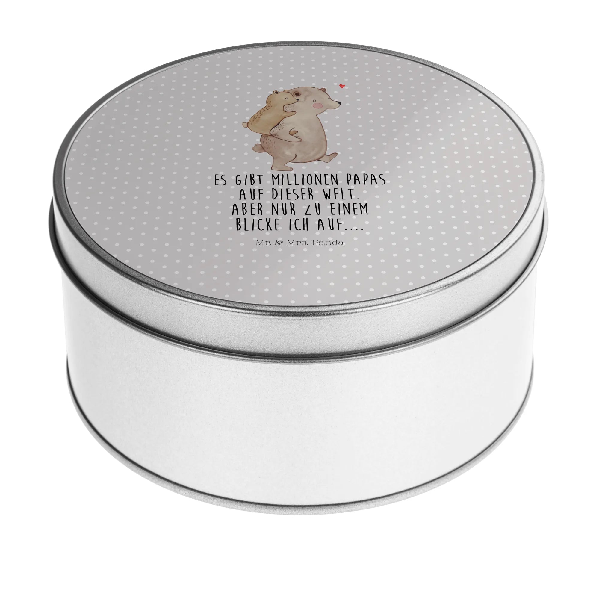 okrągła puszka z blachy Tata Niedźwiedź - z napisem - Pastelowy szary