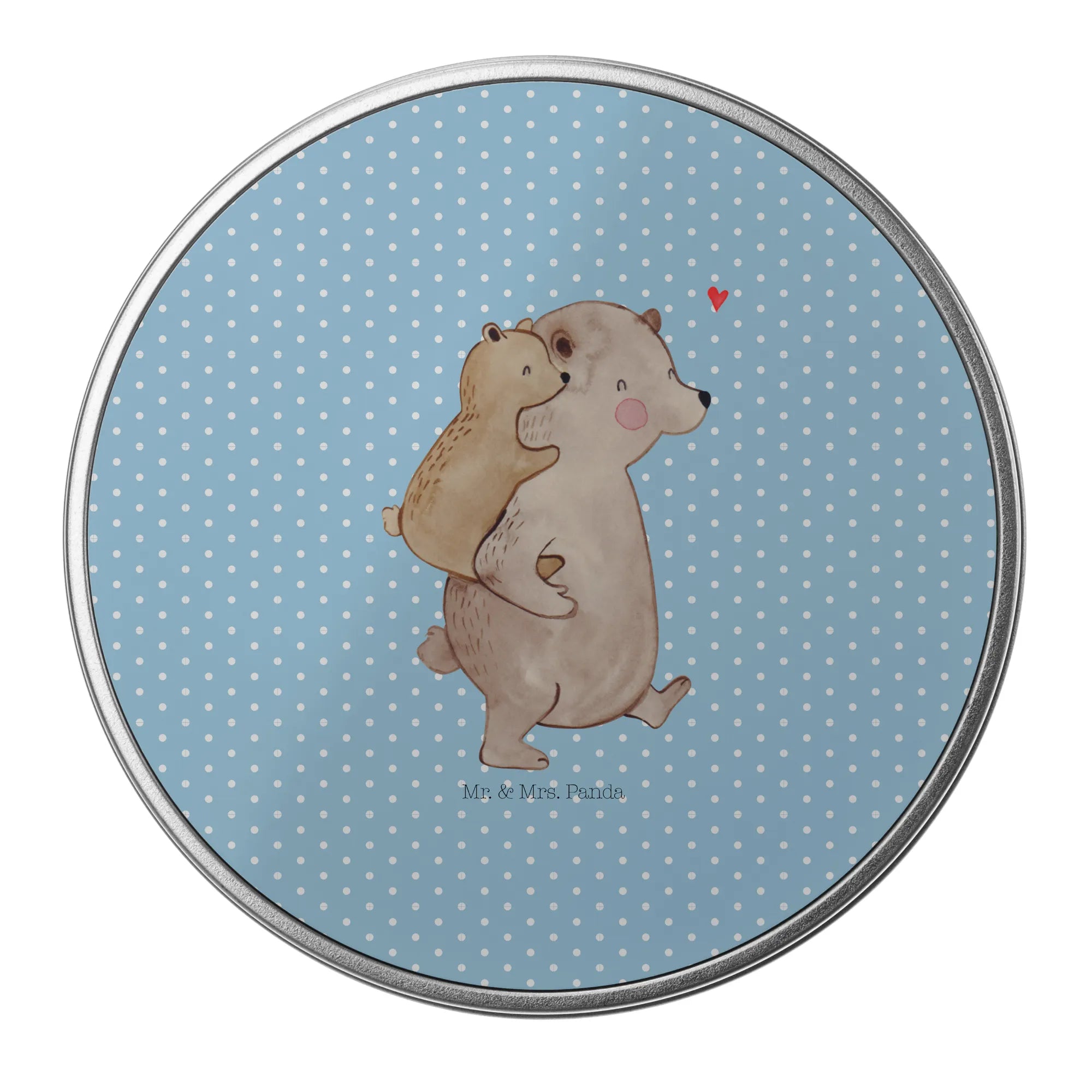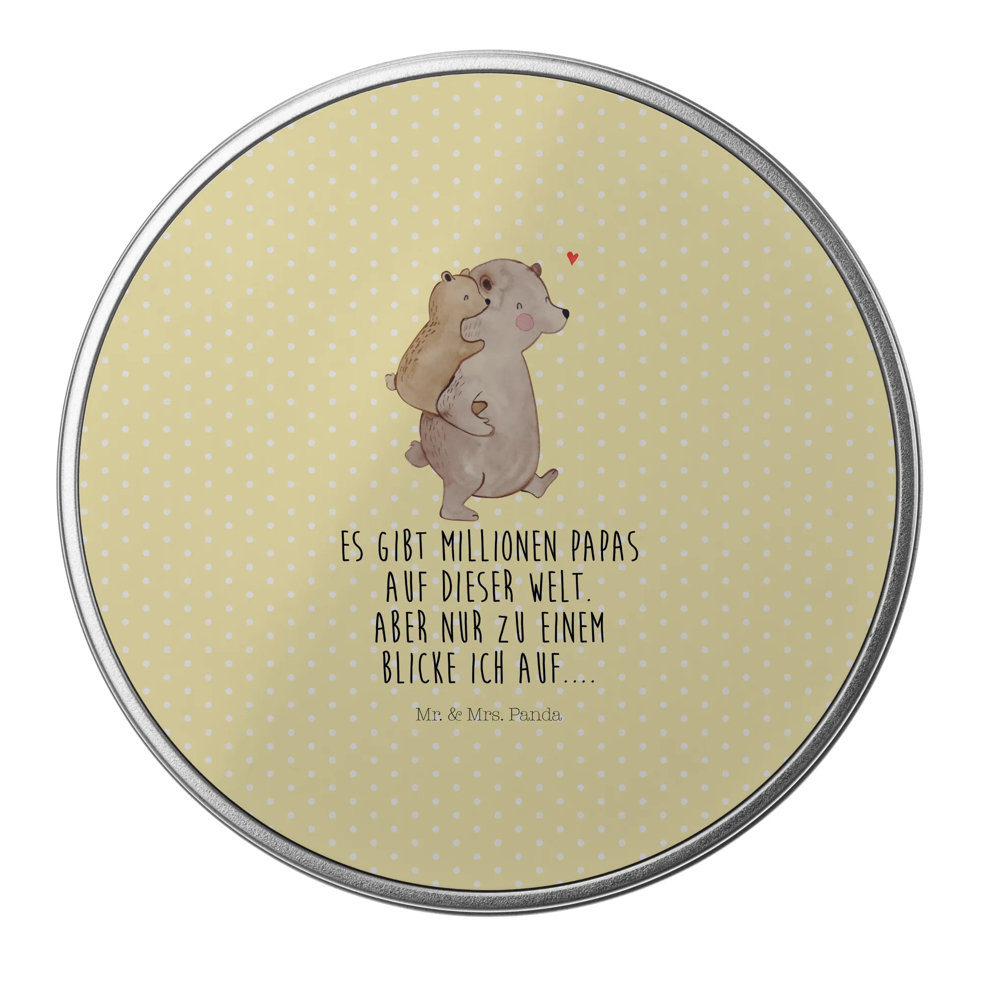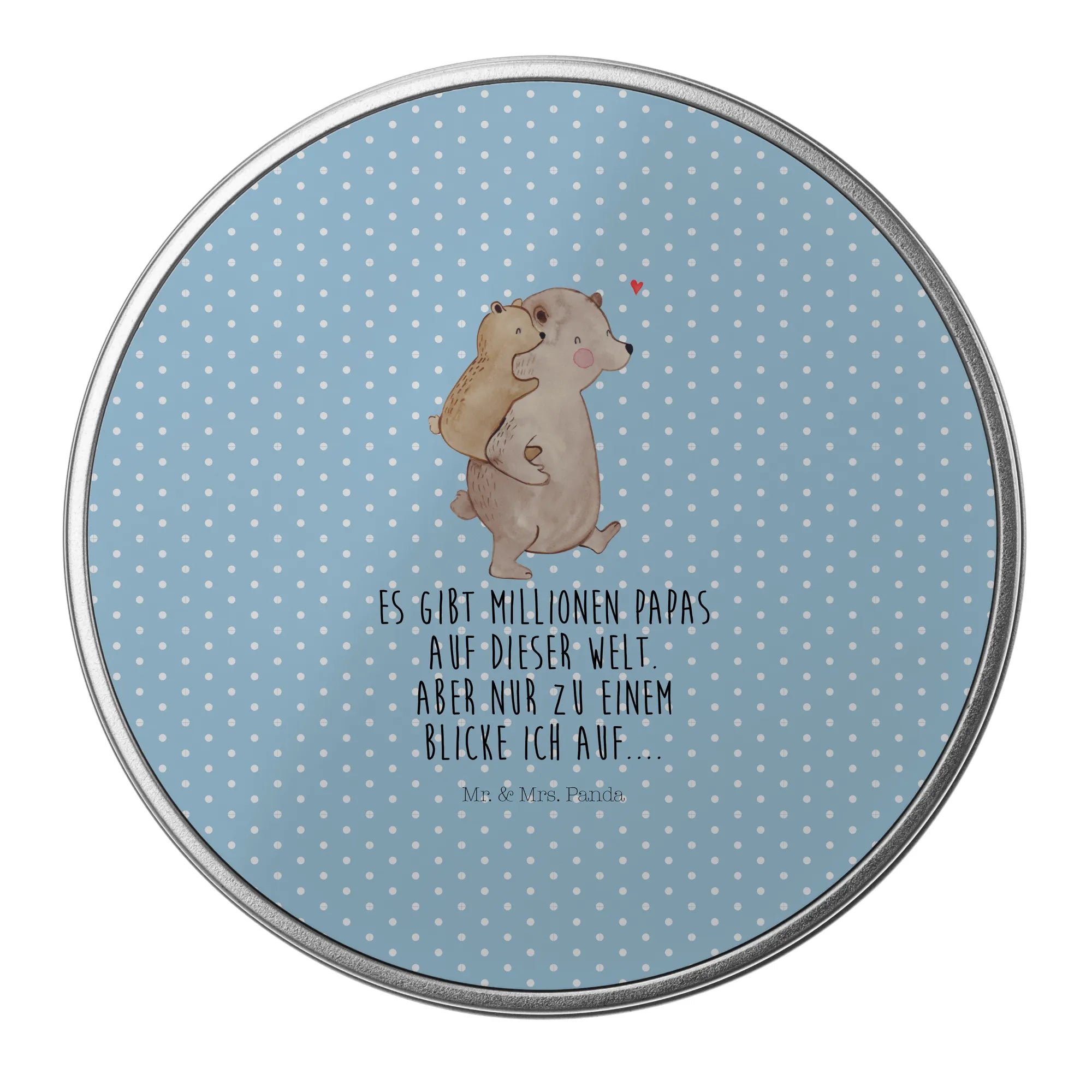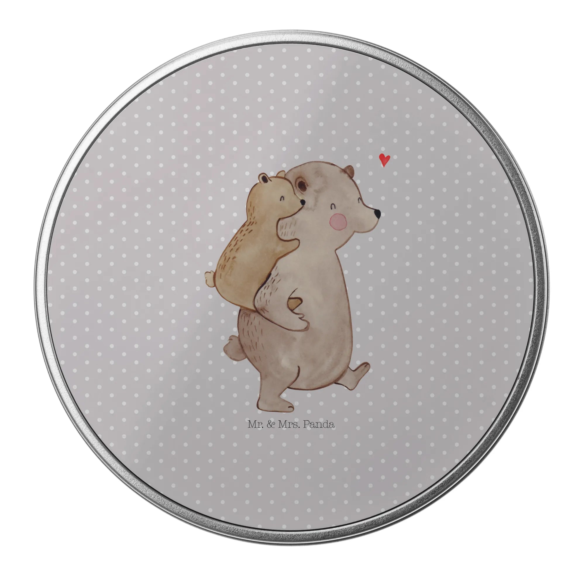 okrągła puszka z blachy Tata Niedźwiedź - z napisem - Pastelowy szary