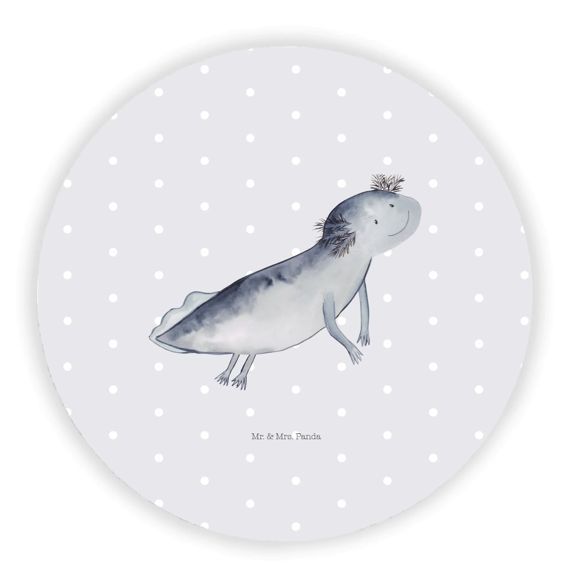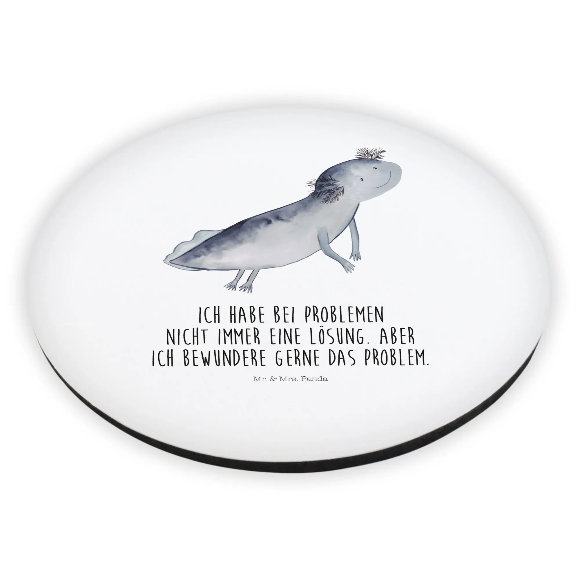 Okrągły magnes ajolotl pływanie - z napisem - Biały