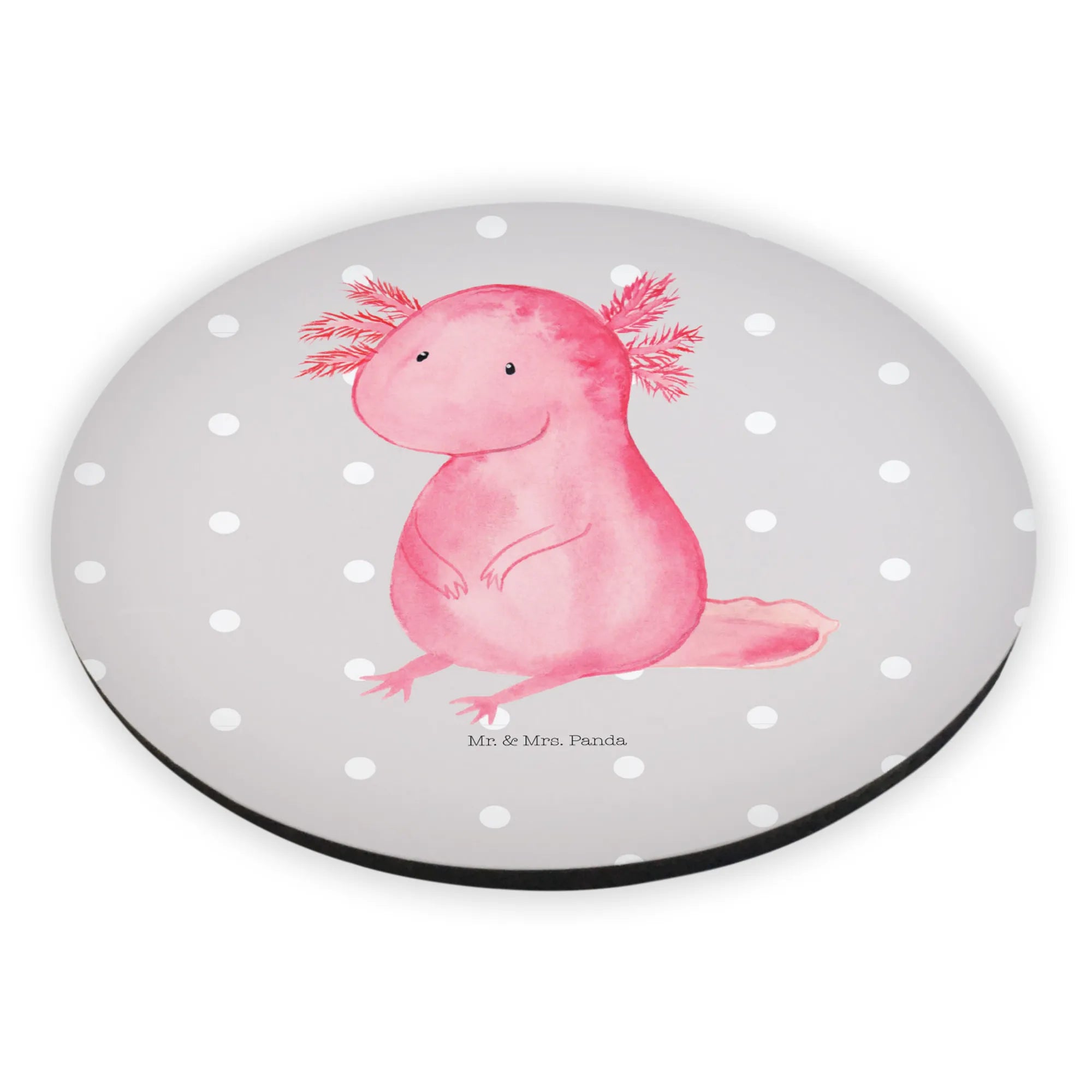 Okrągły magnes aksolotl null - z napisem - Szary Pastel