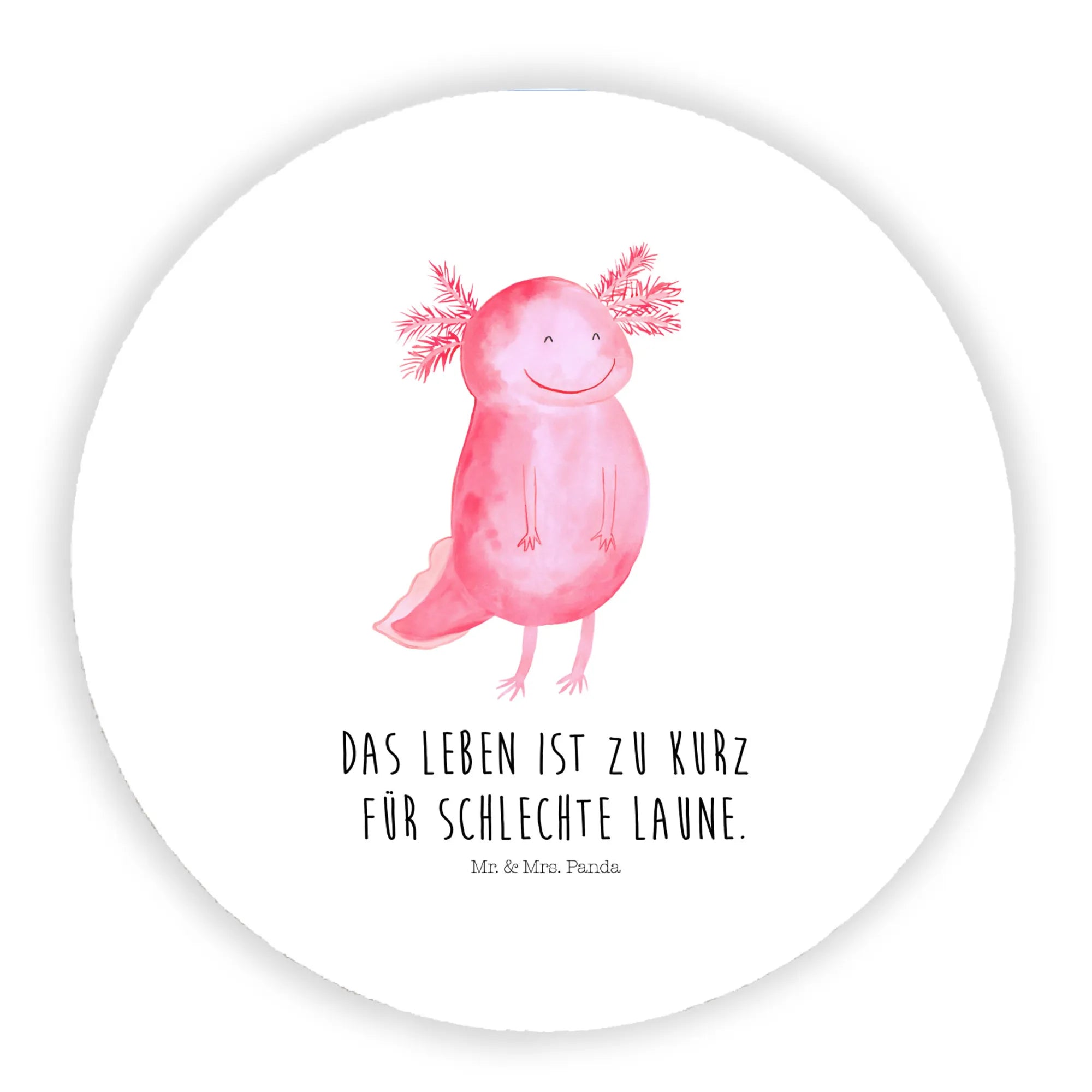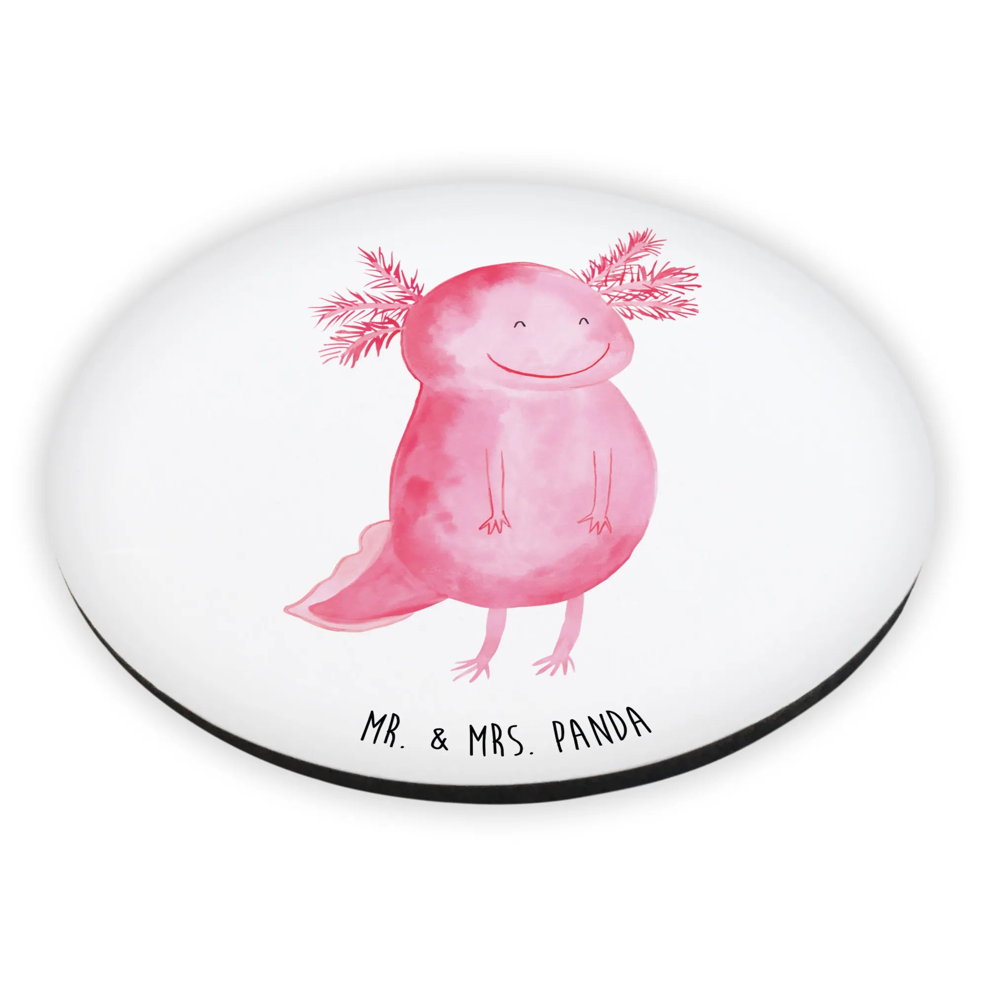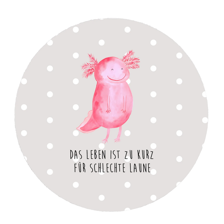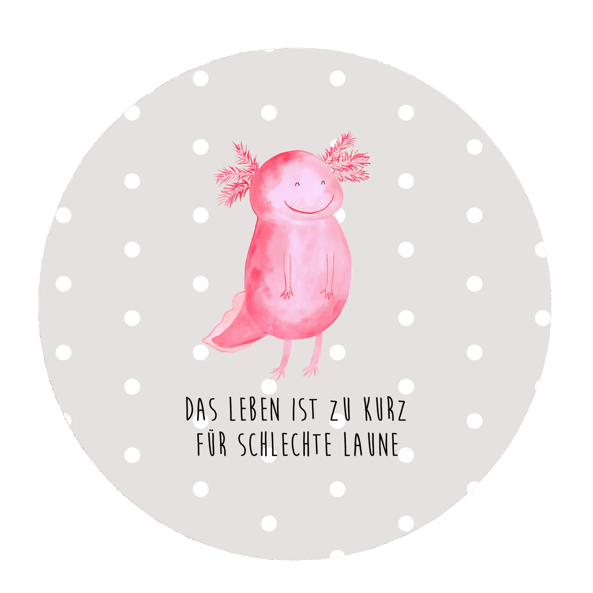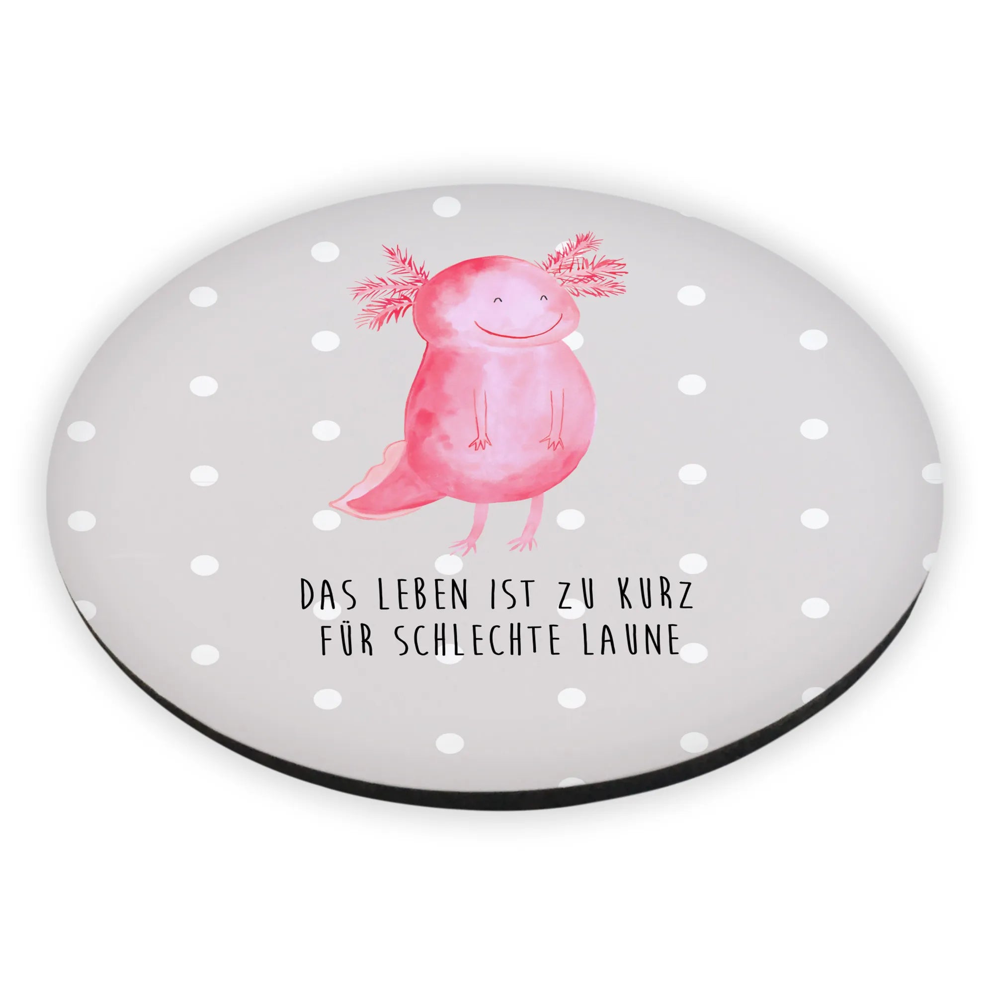 Okrągły magnes Aksolotl Szczęśliwy - z napisem - Pastelowy szary
