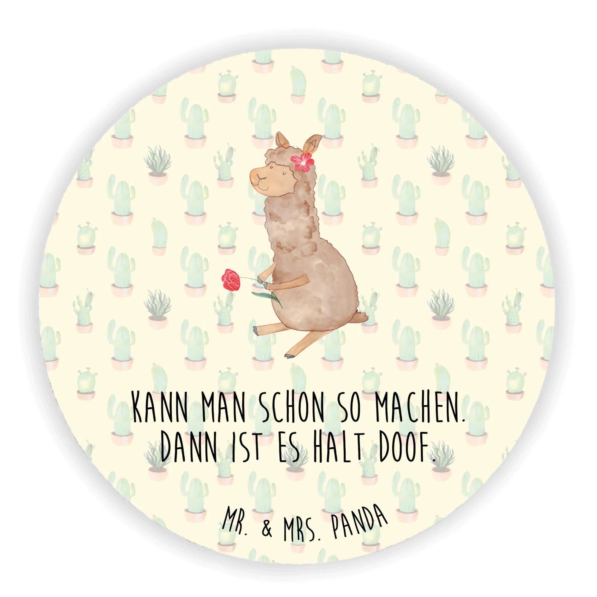 Okrągły magnes alpaka kwiat - z napisem - Zielony kaktus