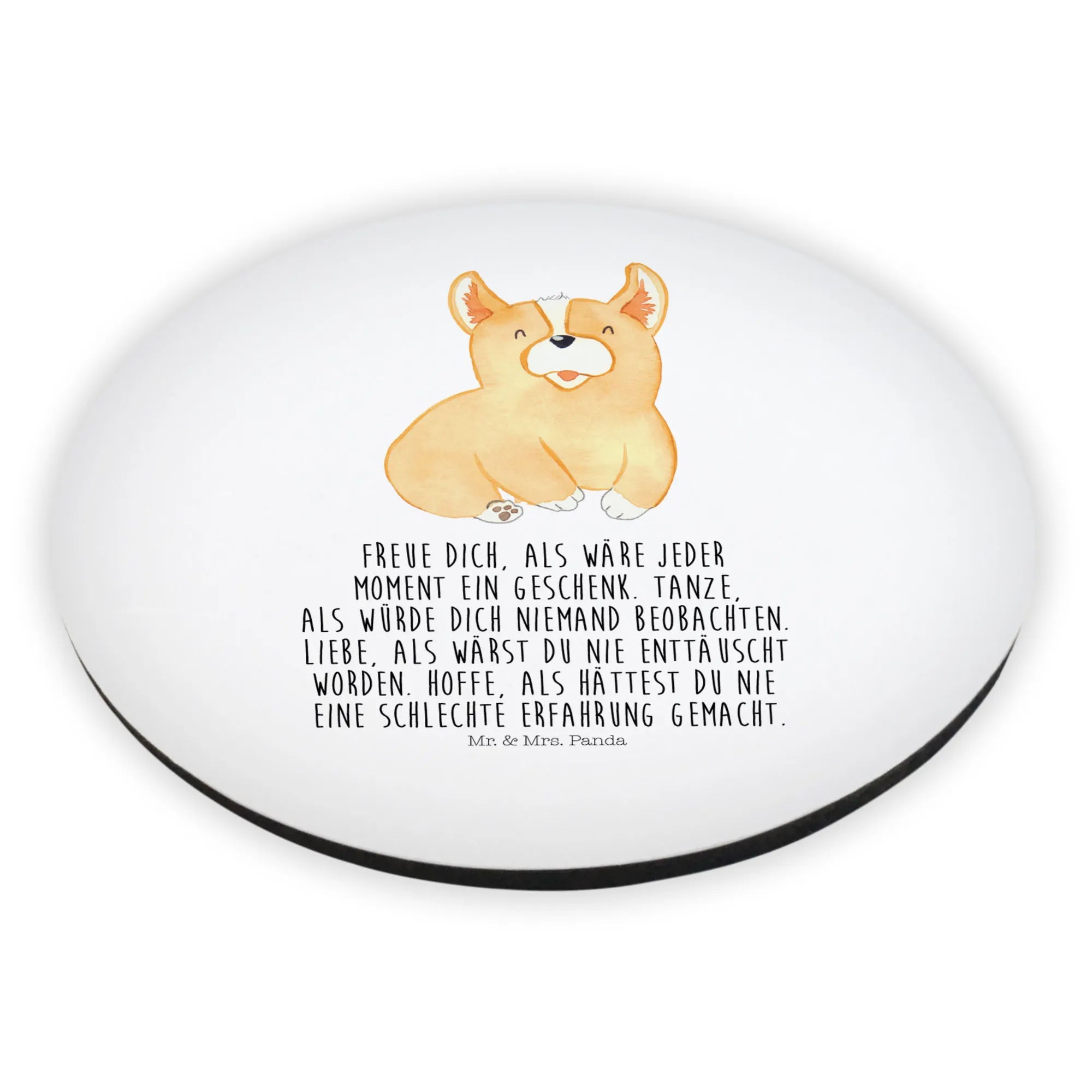 Okrągły magnes Corgi - z napisem - Hundeglück
