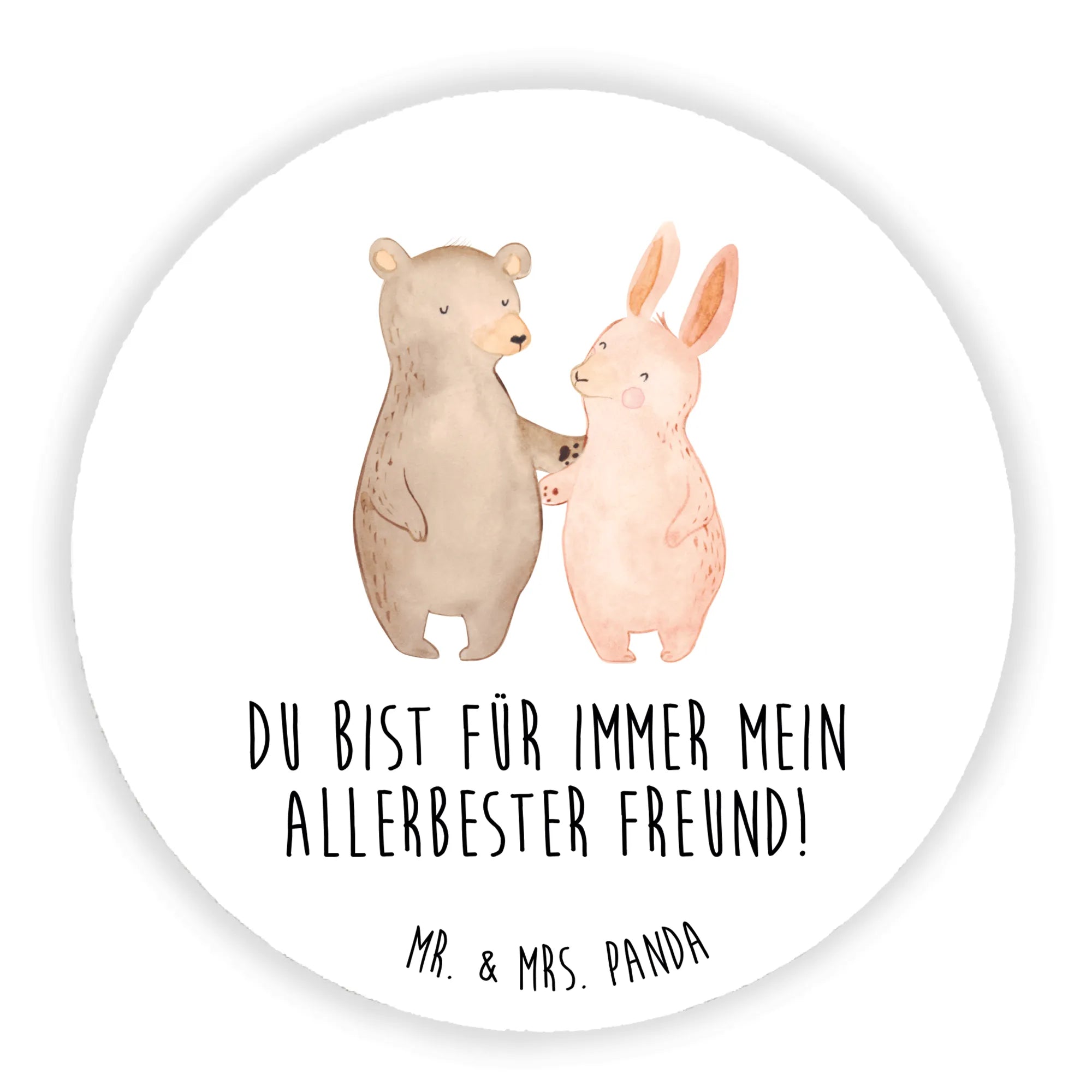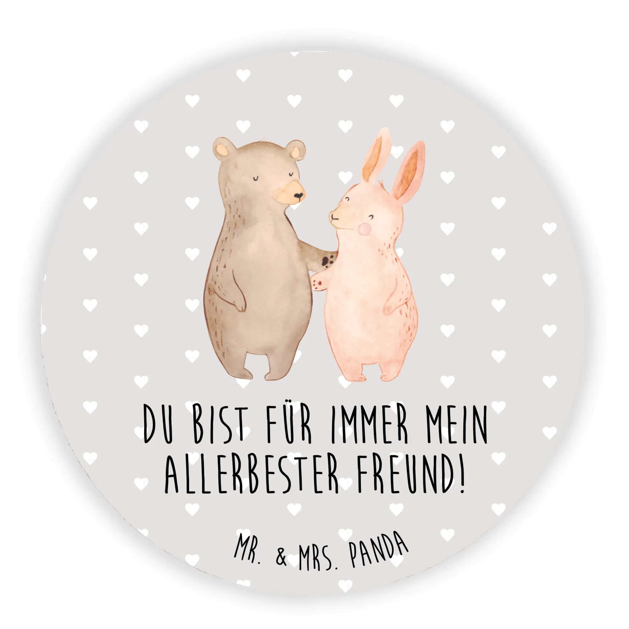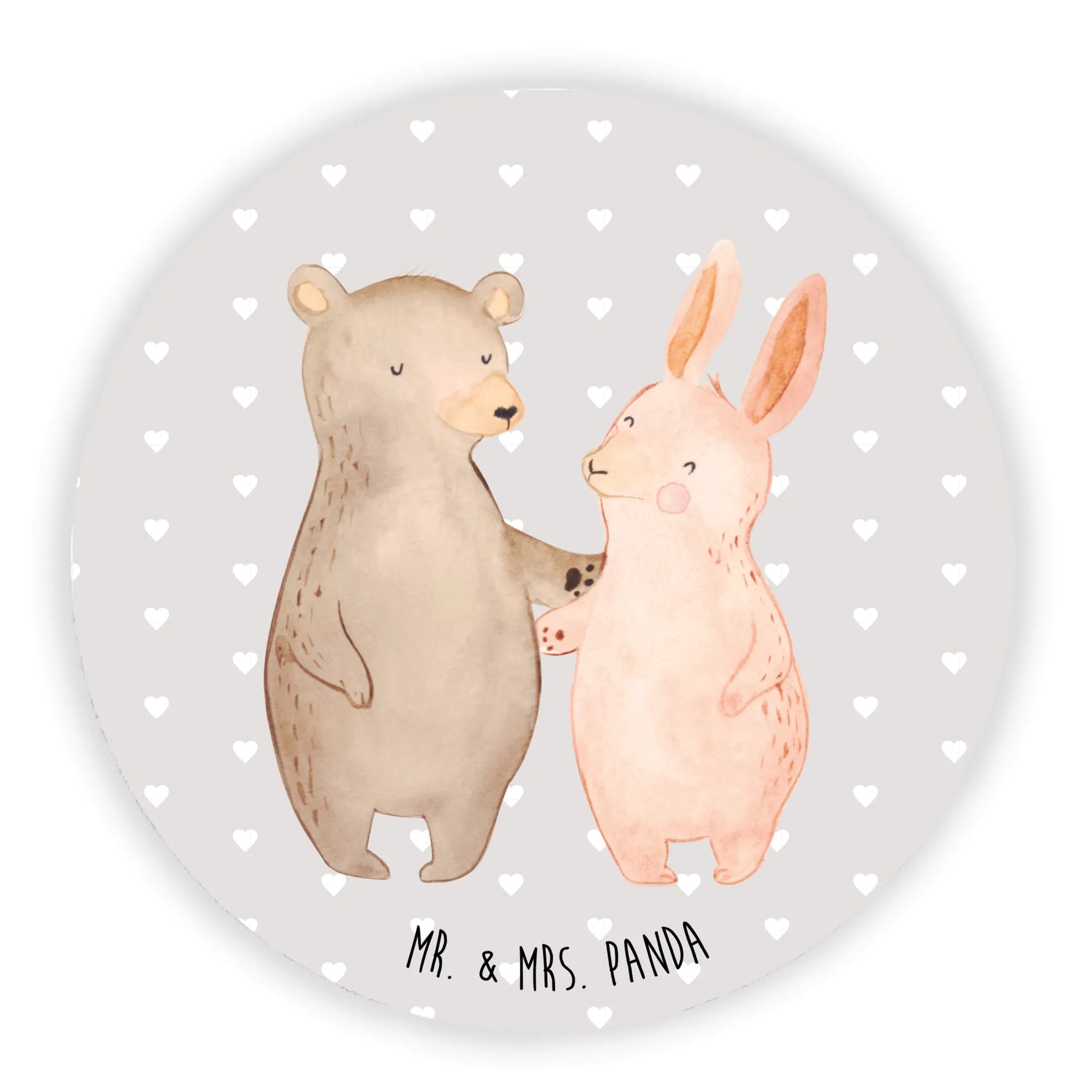 Okrągły magnes Niedźwiedź i królik Przytulać - z napisem - Szary Pastel