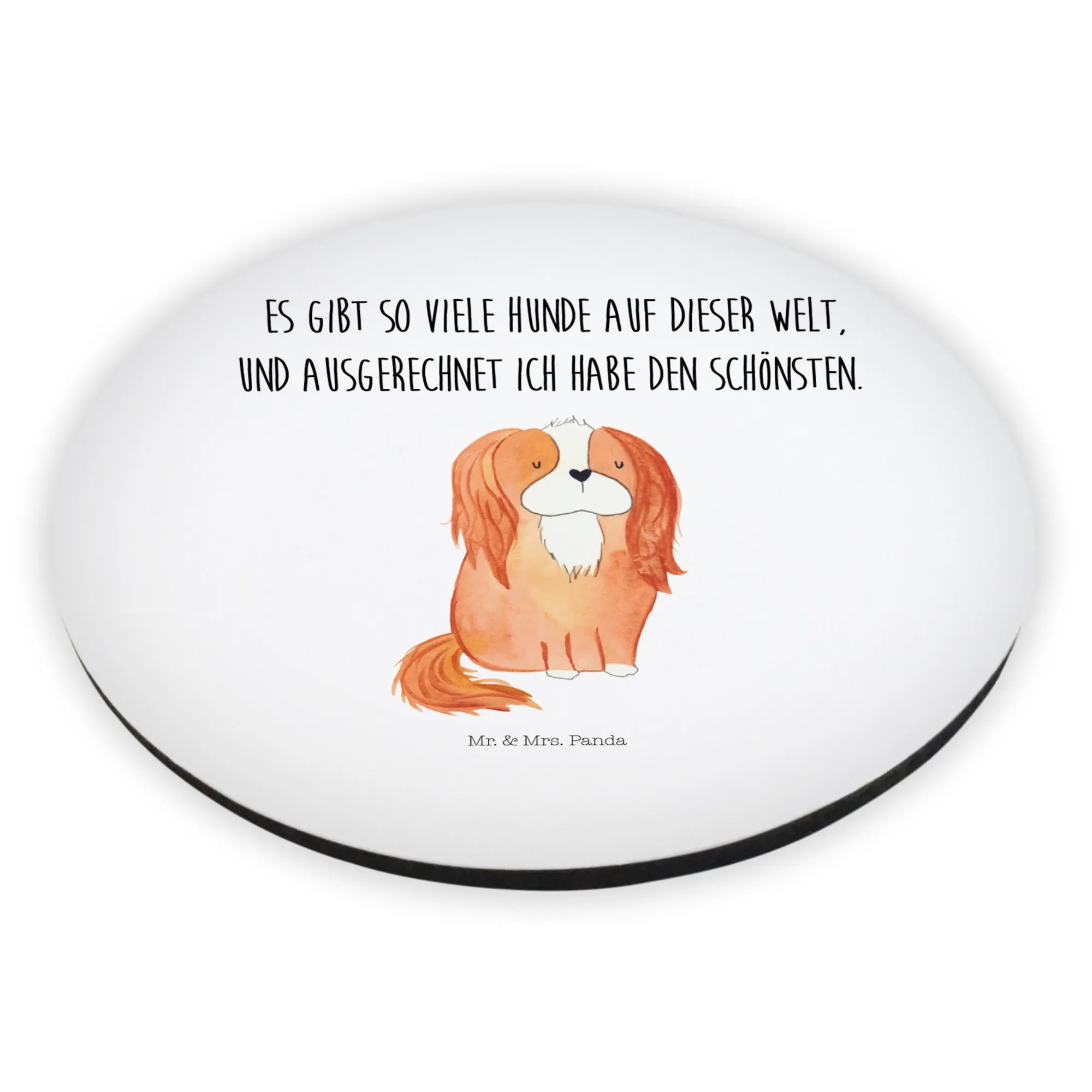 Okrągły magnes pies Cavalier King Charles Spaniel - z napisem - Hundeglück