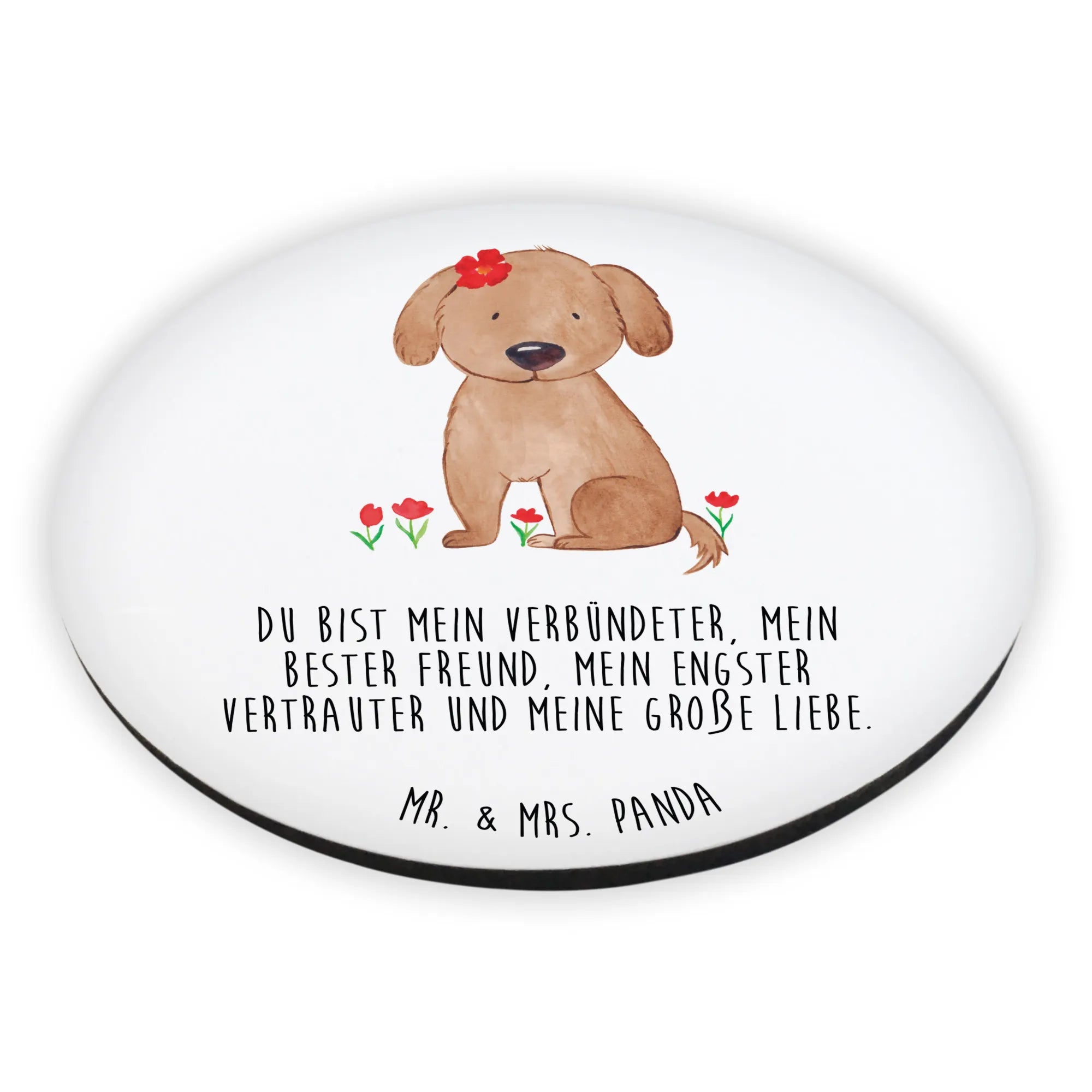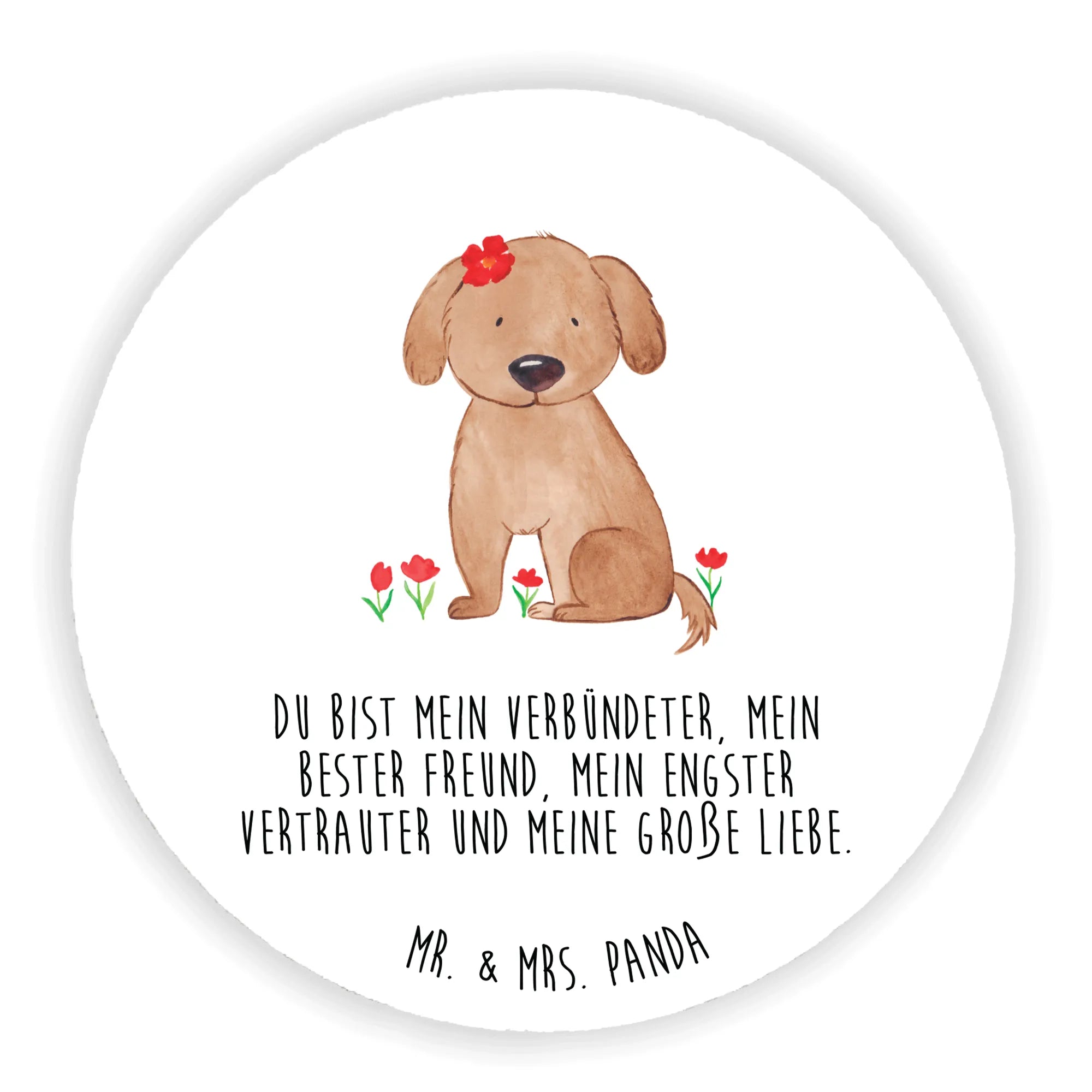 Okrągły magnes pies Dama - z napisem - Hundeglück