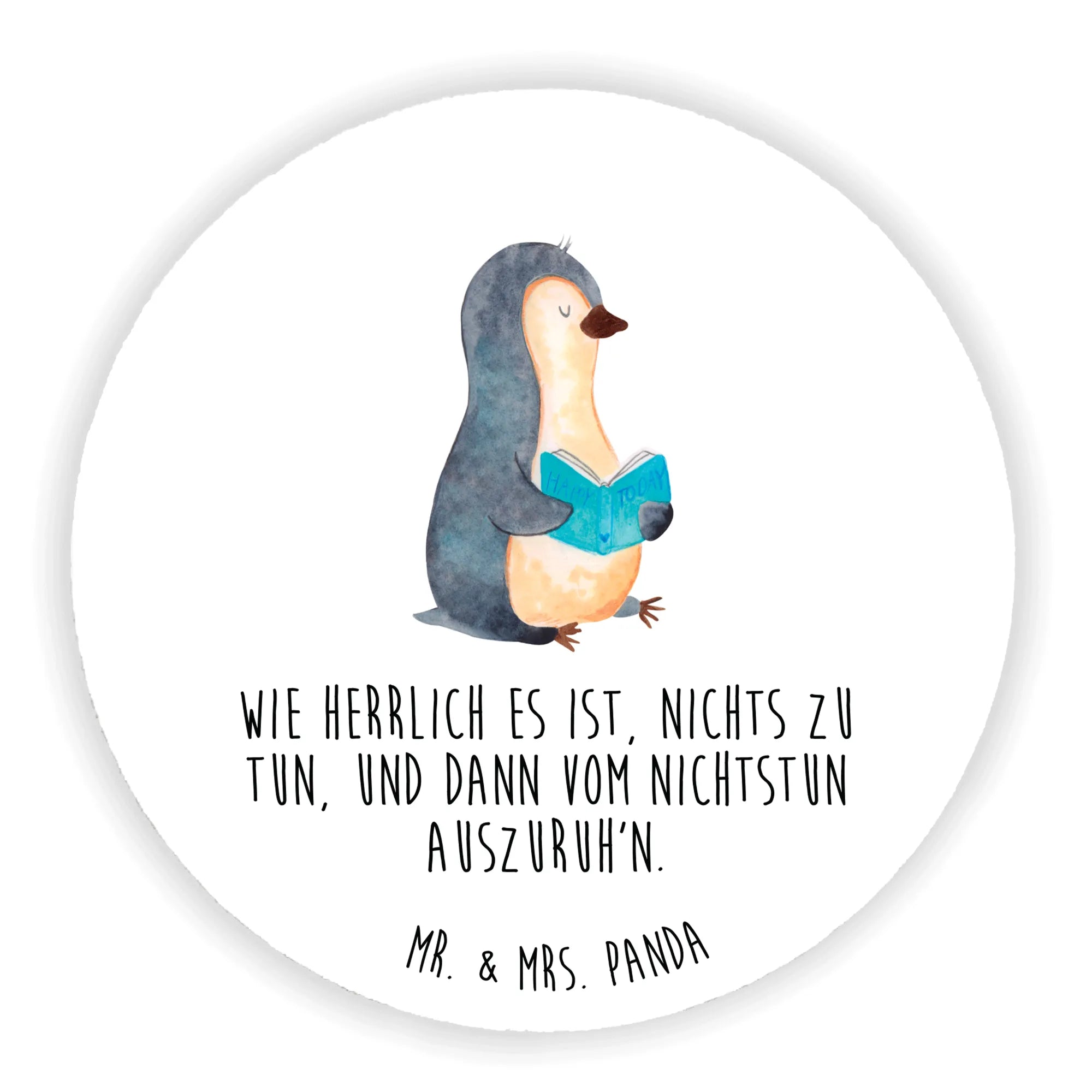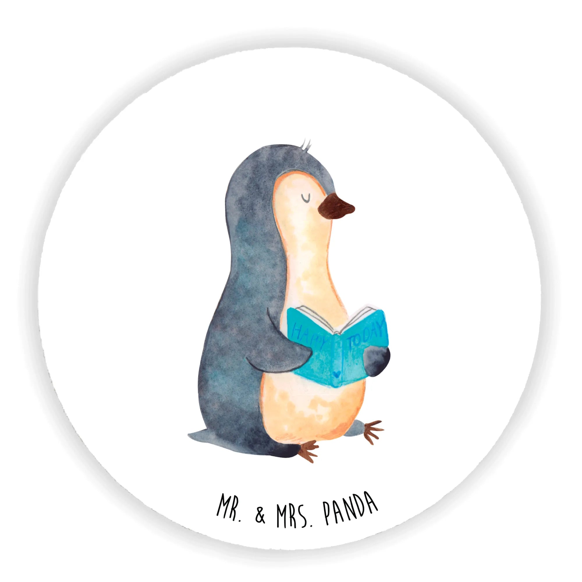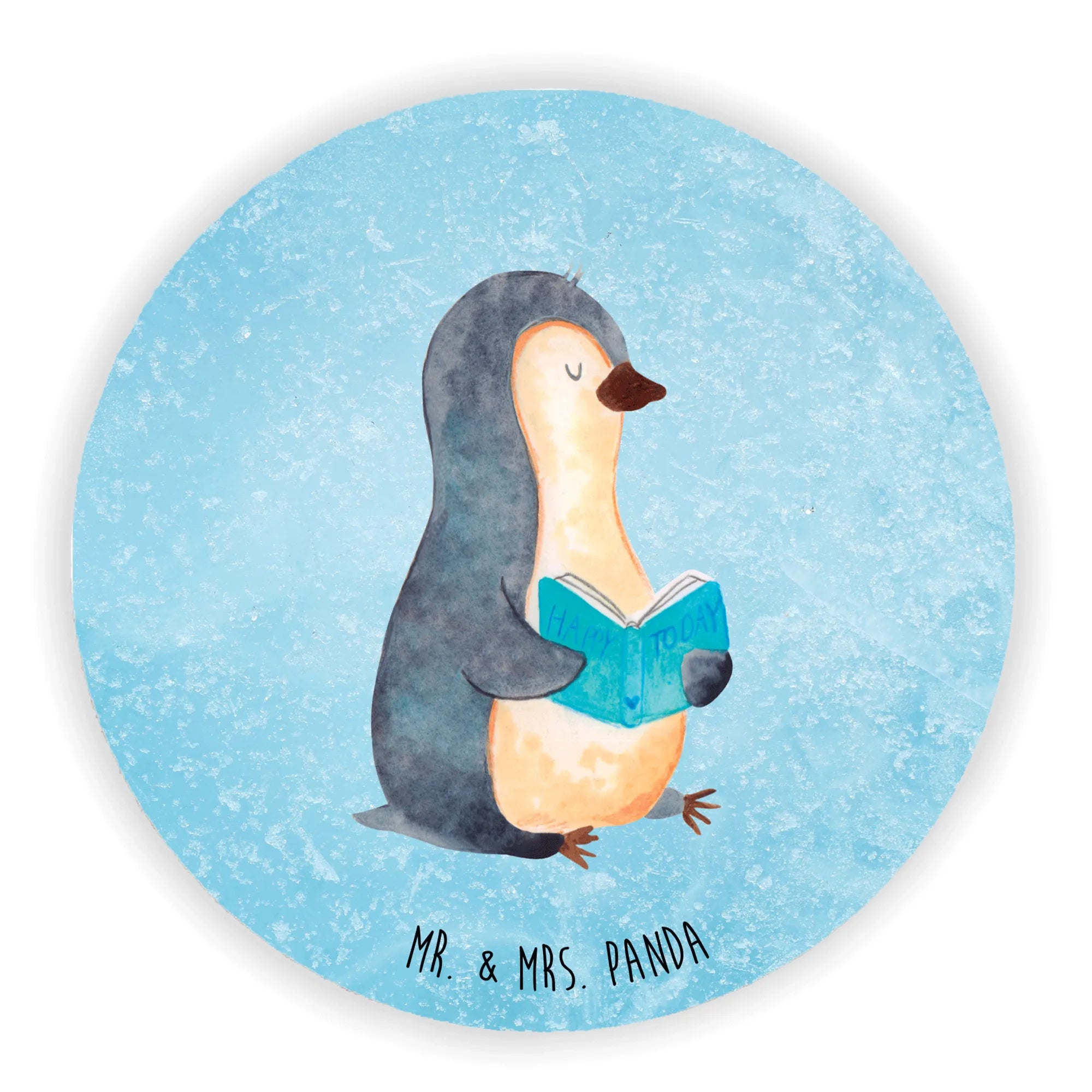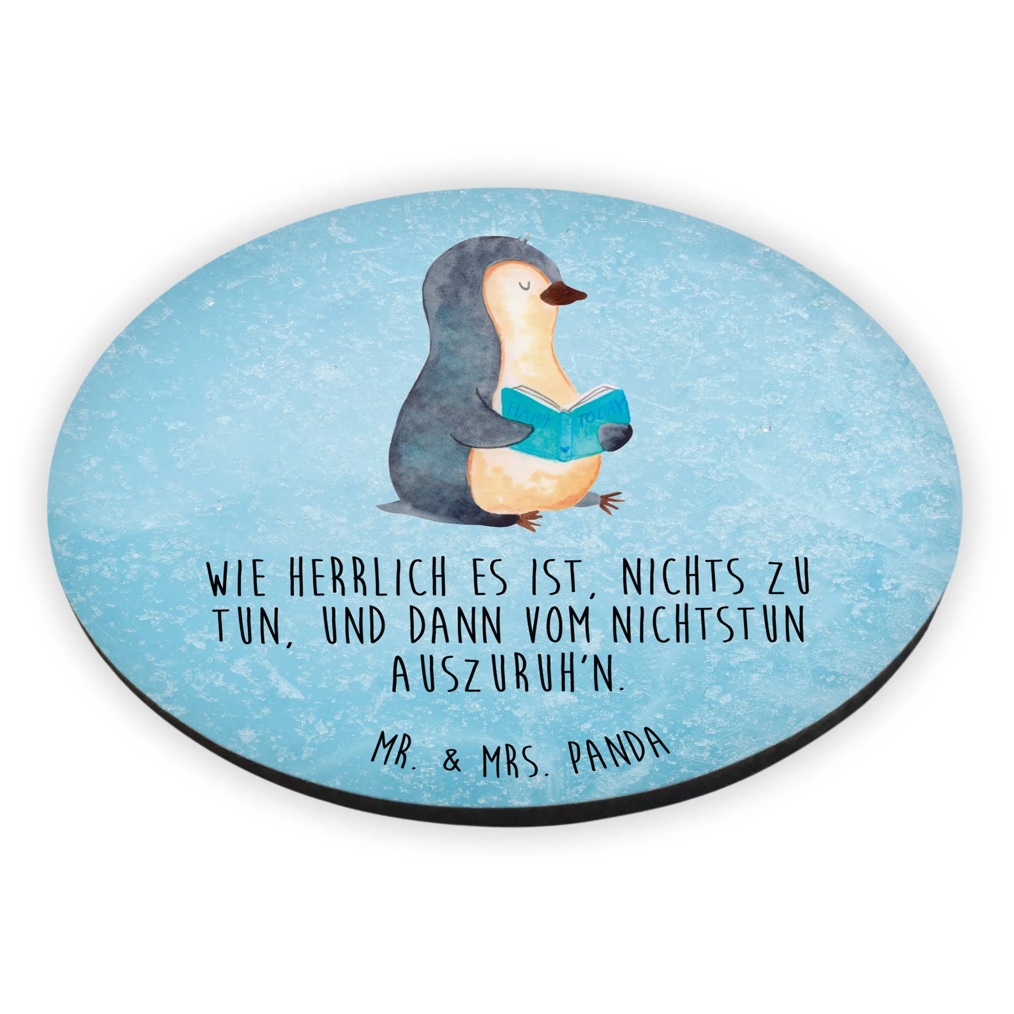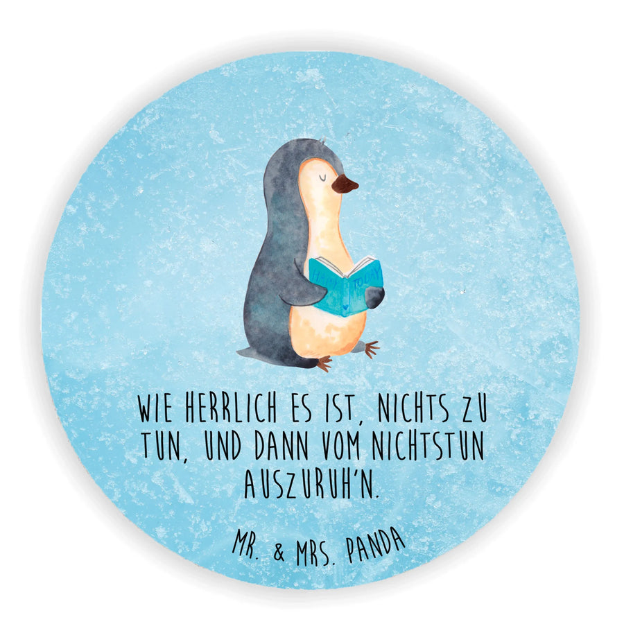 Okrągły magnes pingwin książka - z napisem - Eisblau