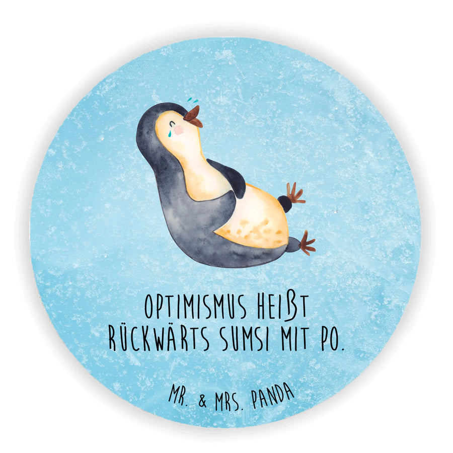 Okrągły magnes pingwin Śmiech - z napisem - lodowoniebieski