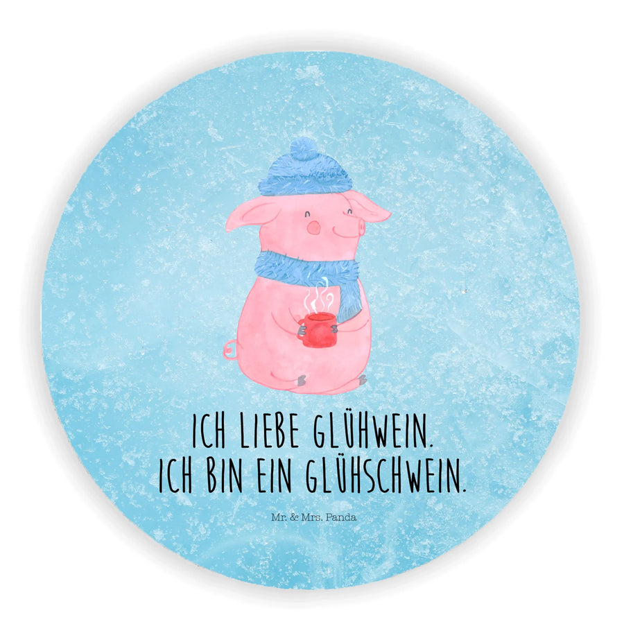 Okrągły magnes świnia grzane wino - z napisem - lodowoniebieski