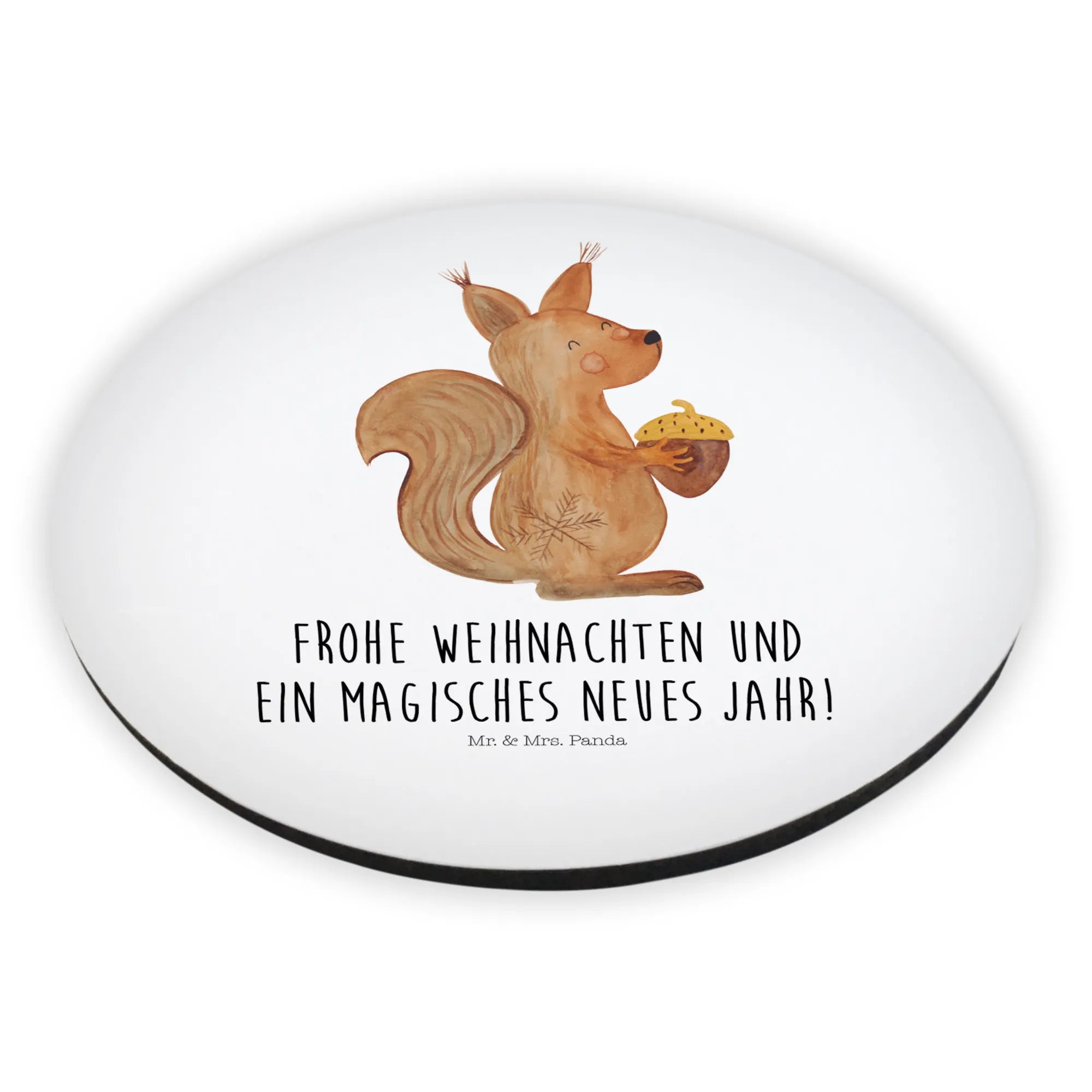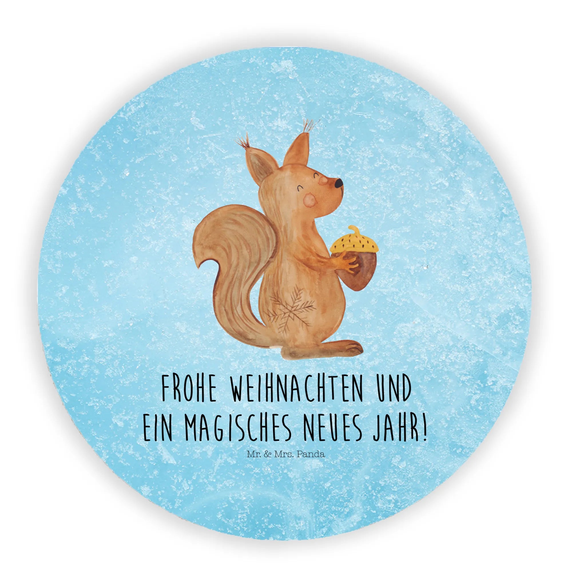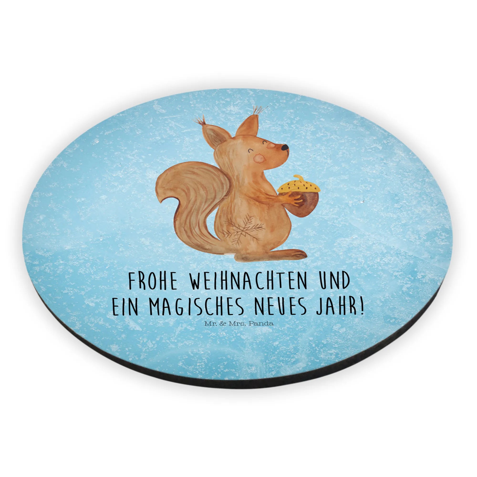 Okrągły magnes wiewiórka Czas Bożego Narodzenia - z napisem - Eisblau