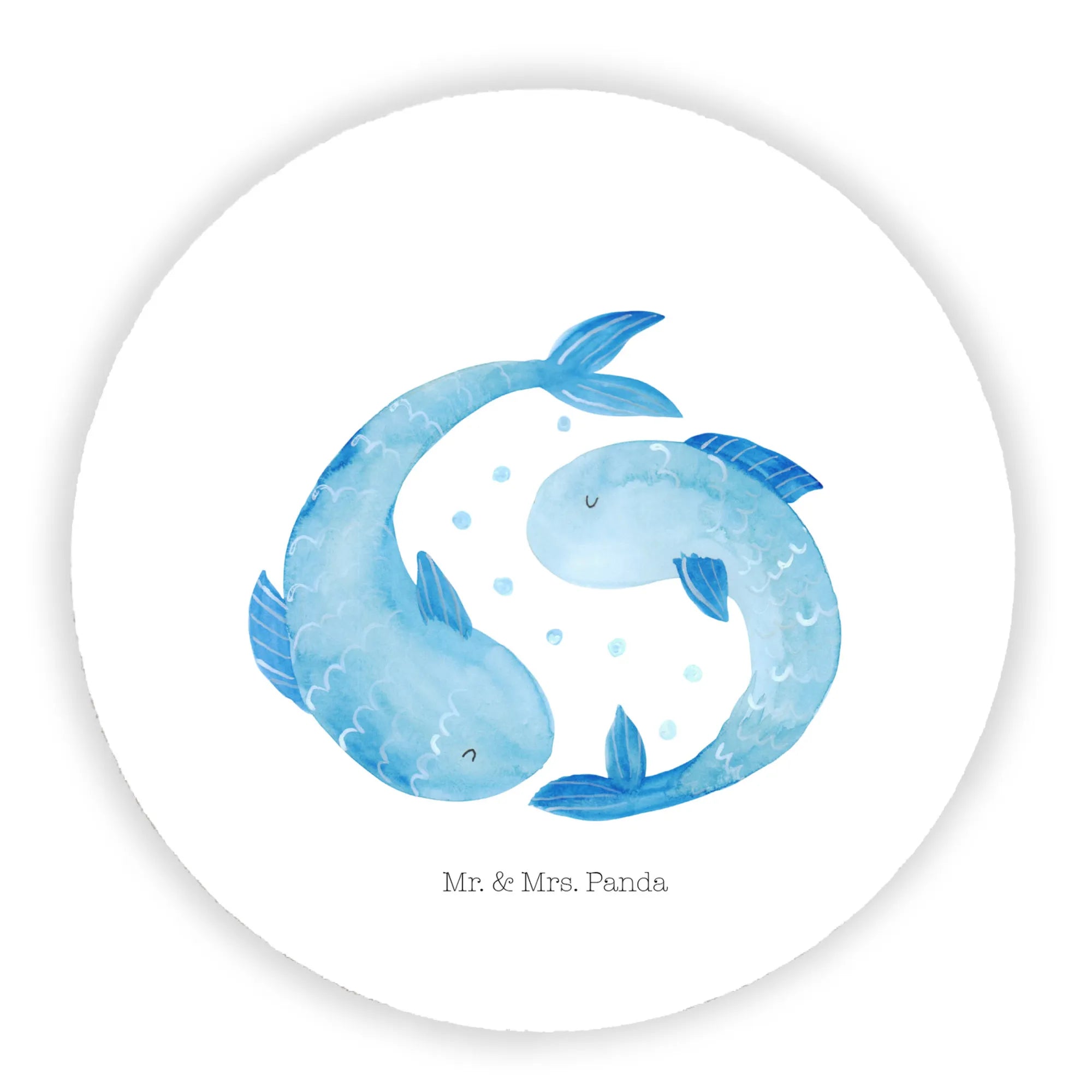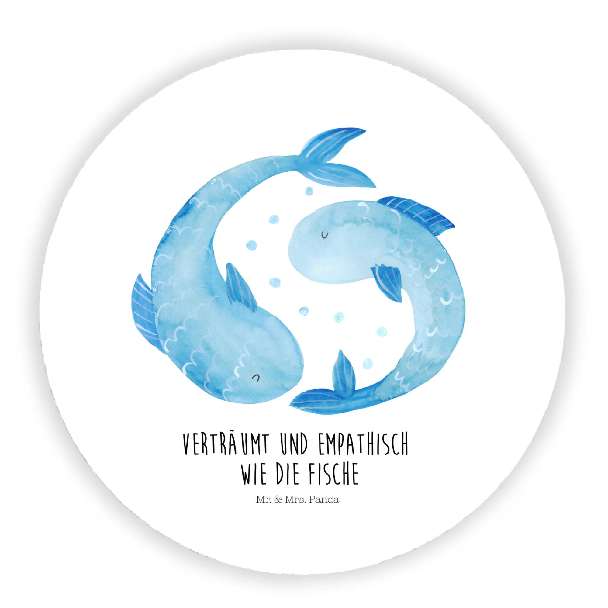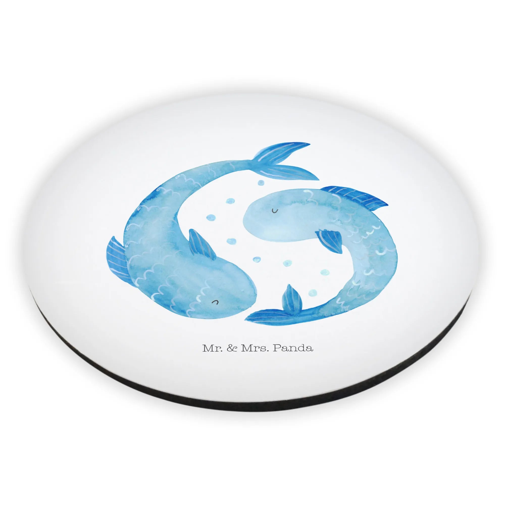 Okrągły magnes znak zodiaku Ryby - z napisem - Biały