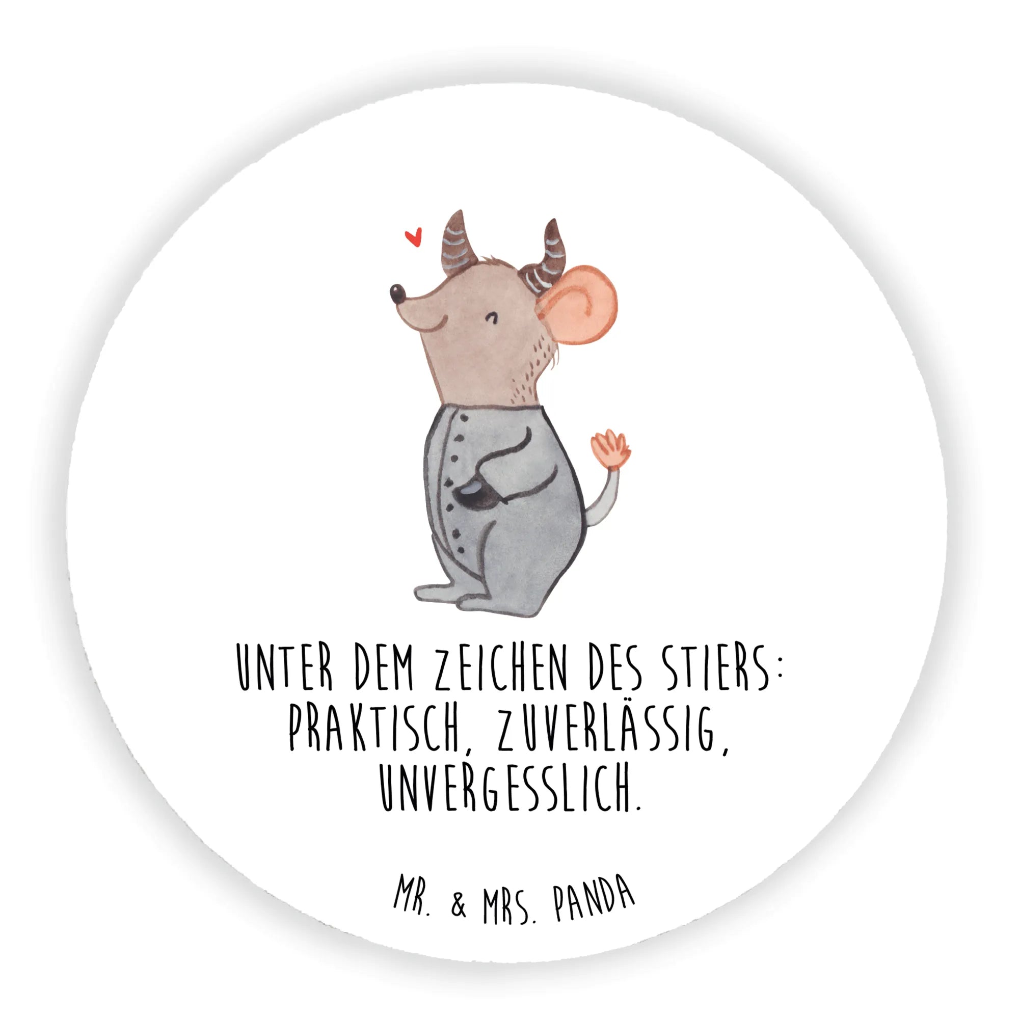Die süße, anthropomorphe Maus, die das Motiv ziert, trägt stolz die charakteristischen Merkmale eines Stiers und ist mit einem fröhlichen Lächeln und geschwungenen Hörnern dargestellt. Auf ihrem Kopf schwebt ein kleines Herz, das pure Freude ausstrahlt. Dies macht den Magneten zu einem perfekten Geschenk zum Geburtstag für alle Stier-Geborenen oder Astrologie-Liebhaber.
