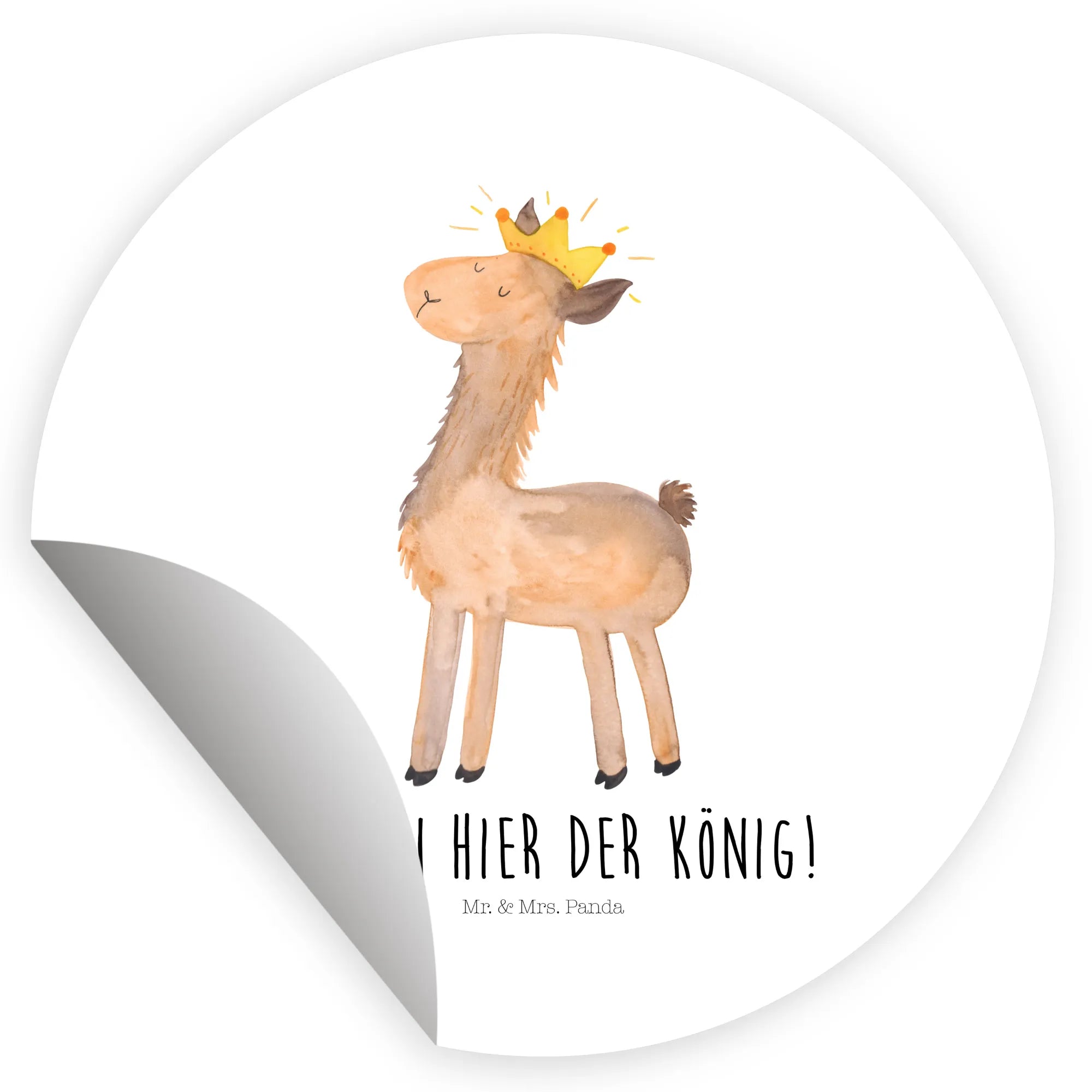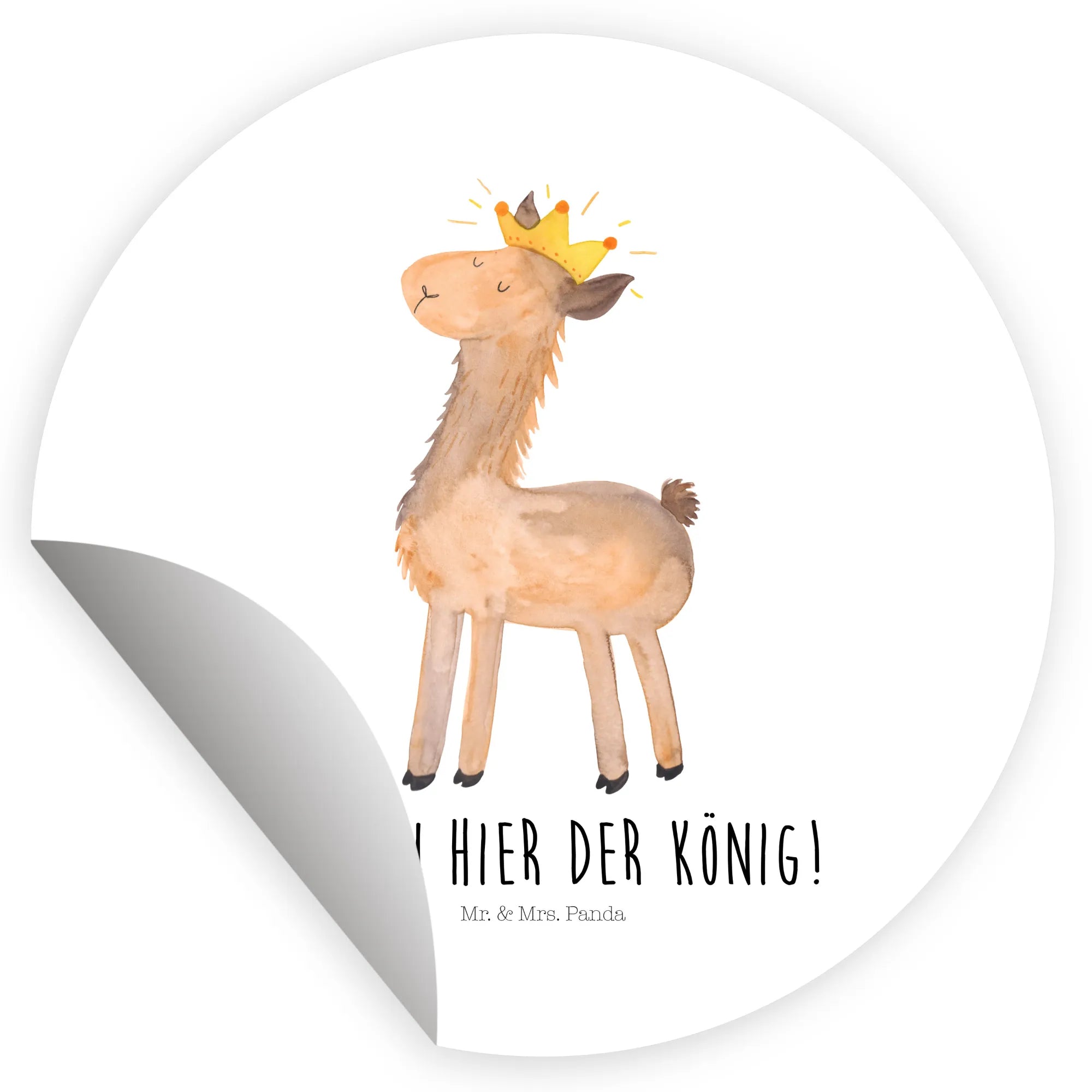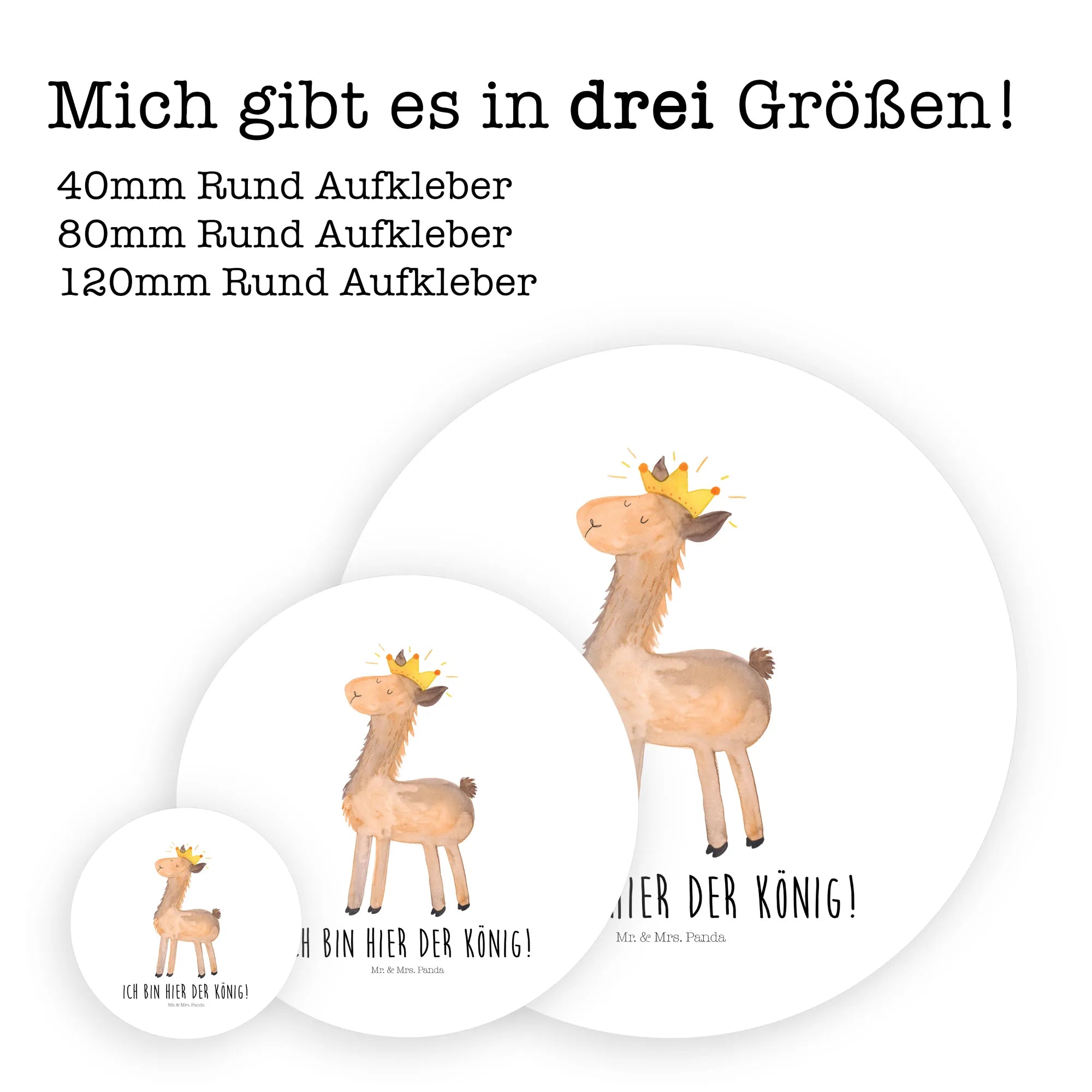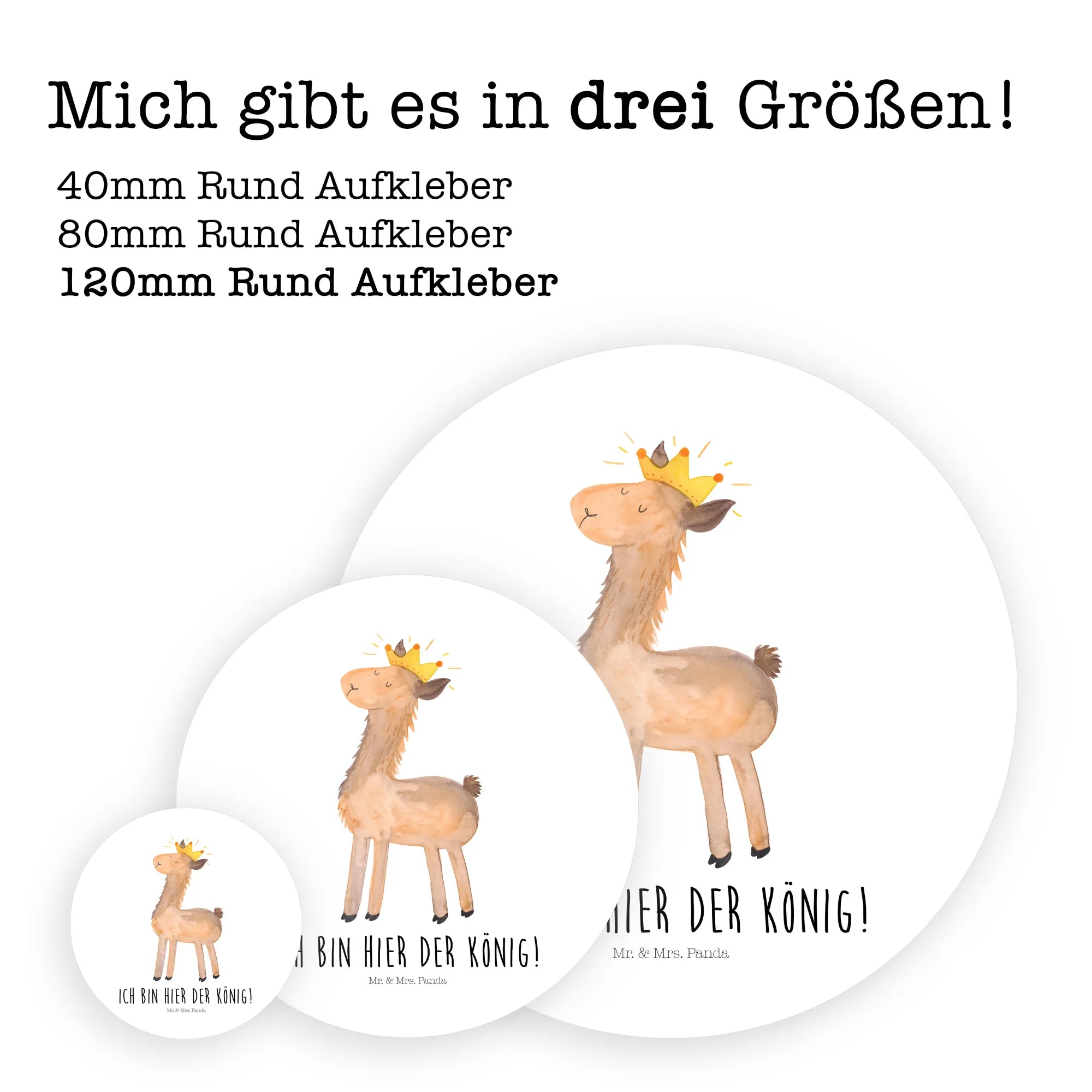 120mm okrągła naklejka lama Król - 80mm Rund Aufkleber - z napisem