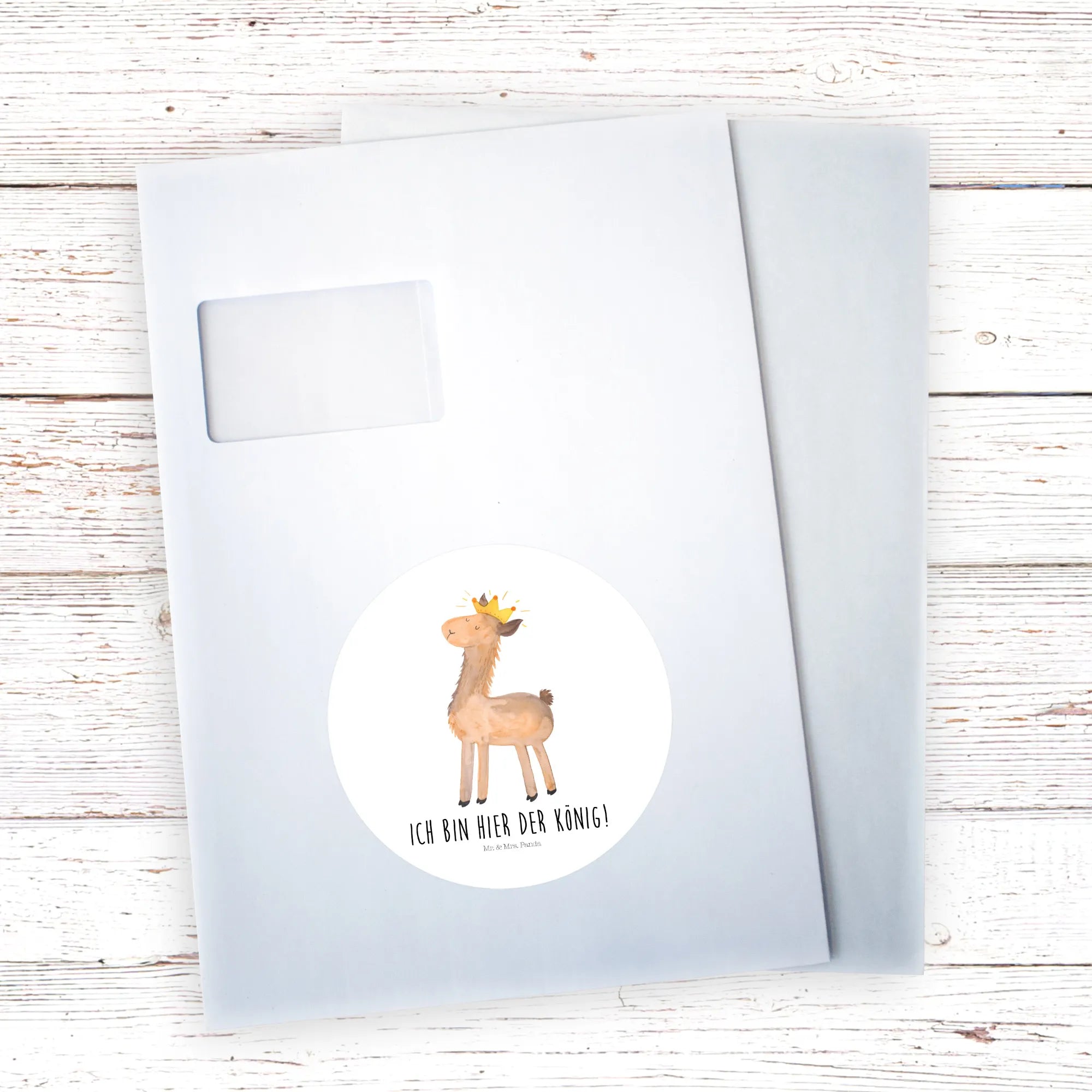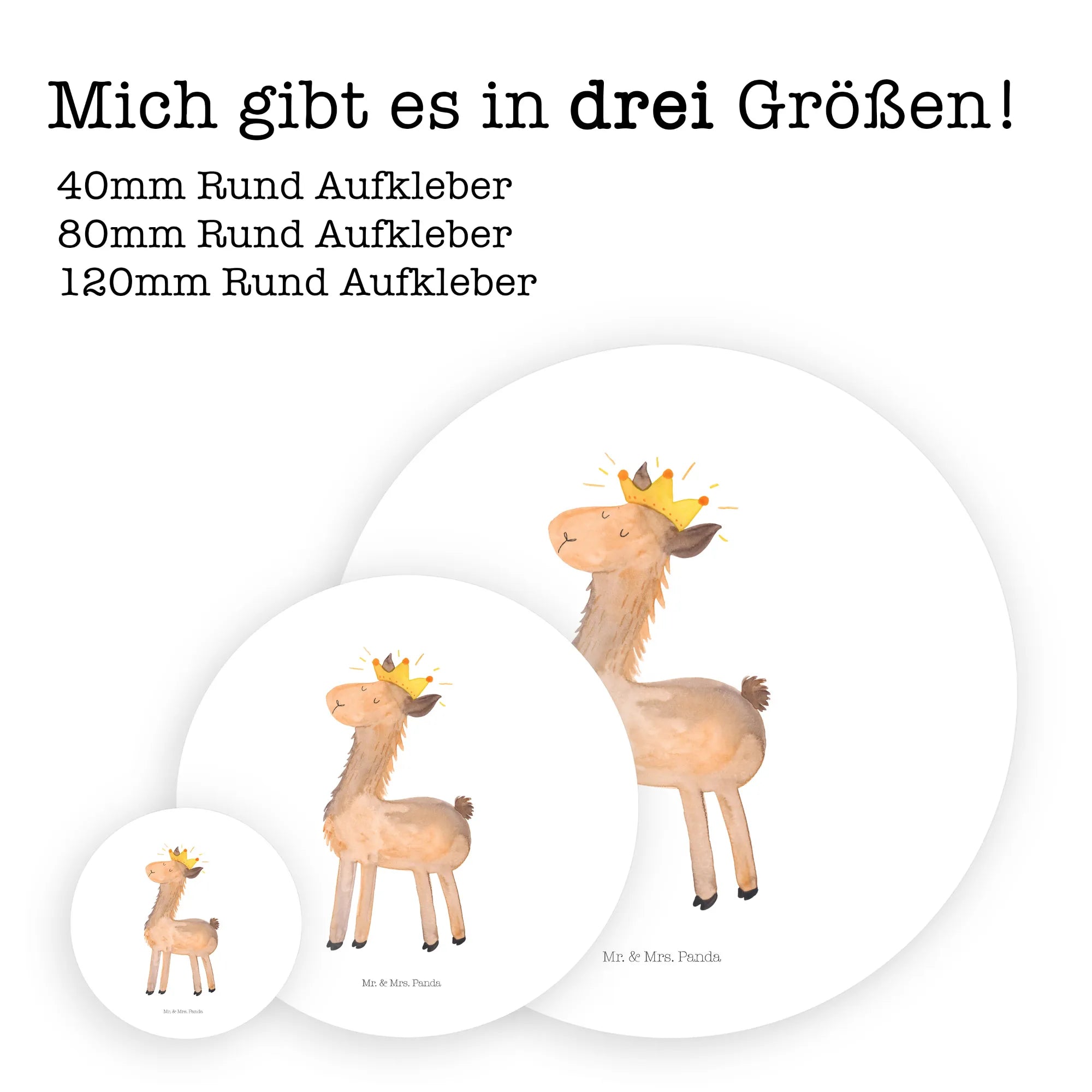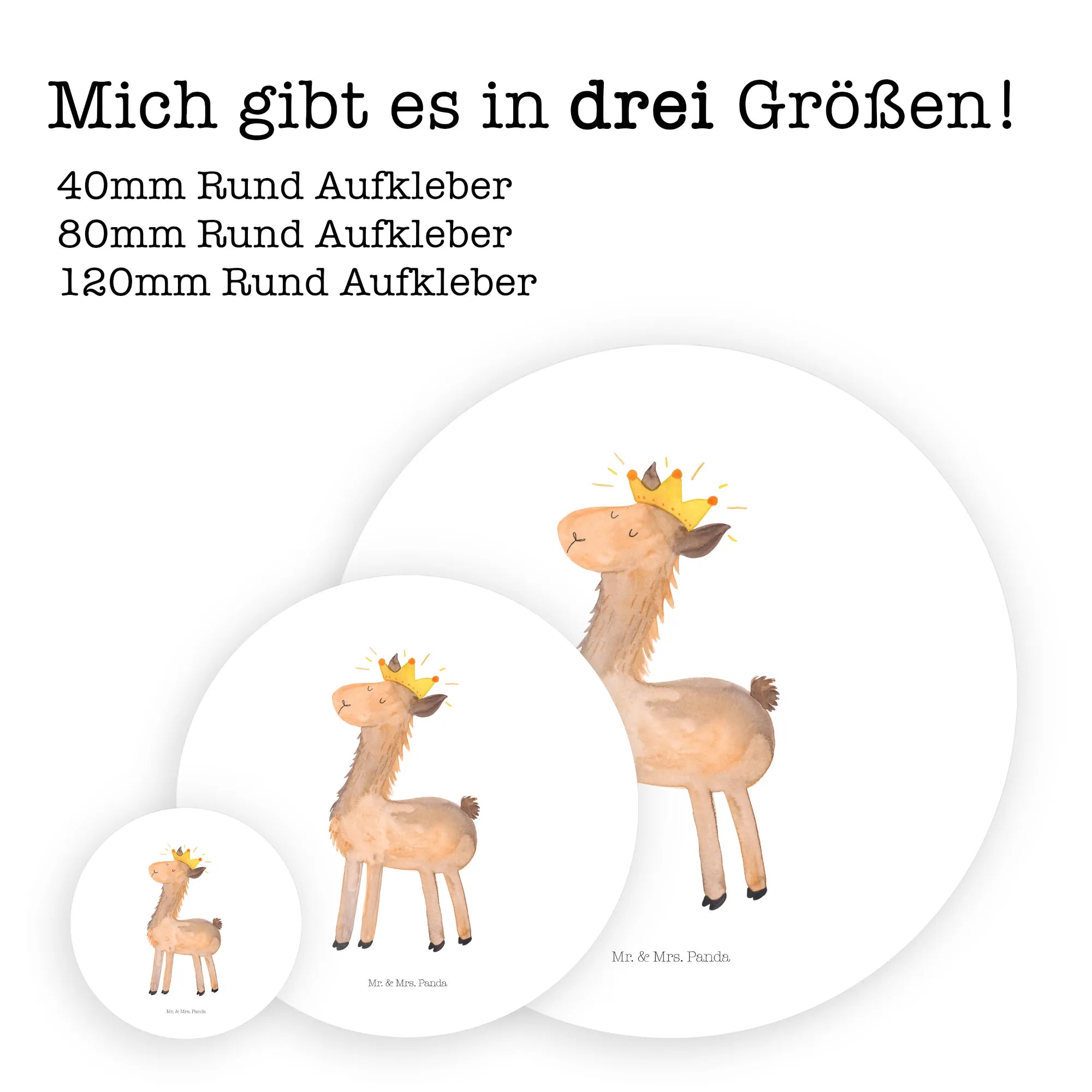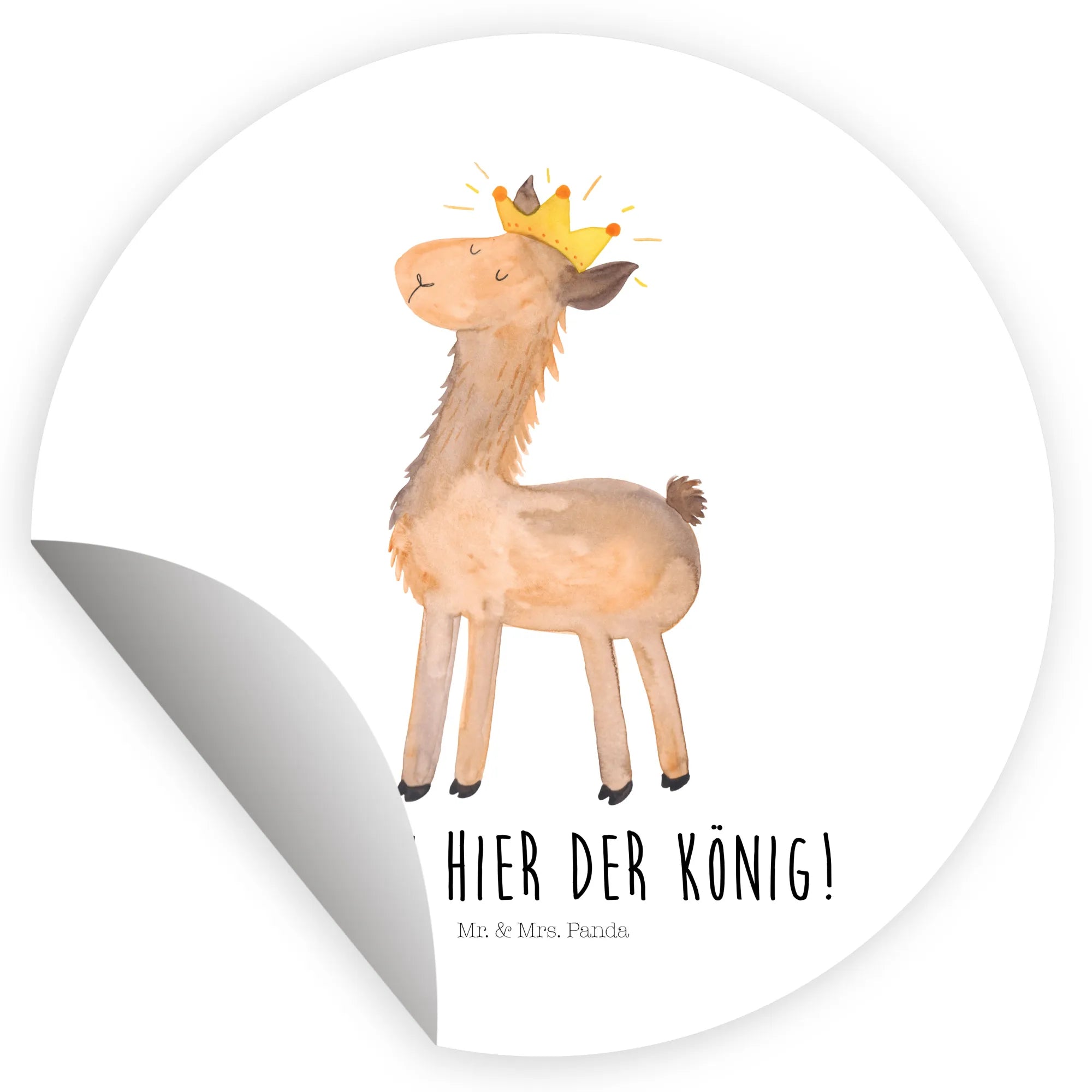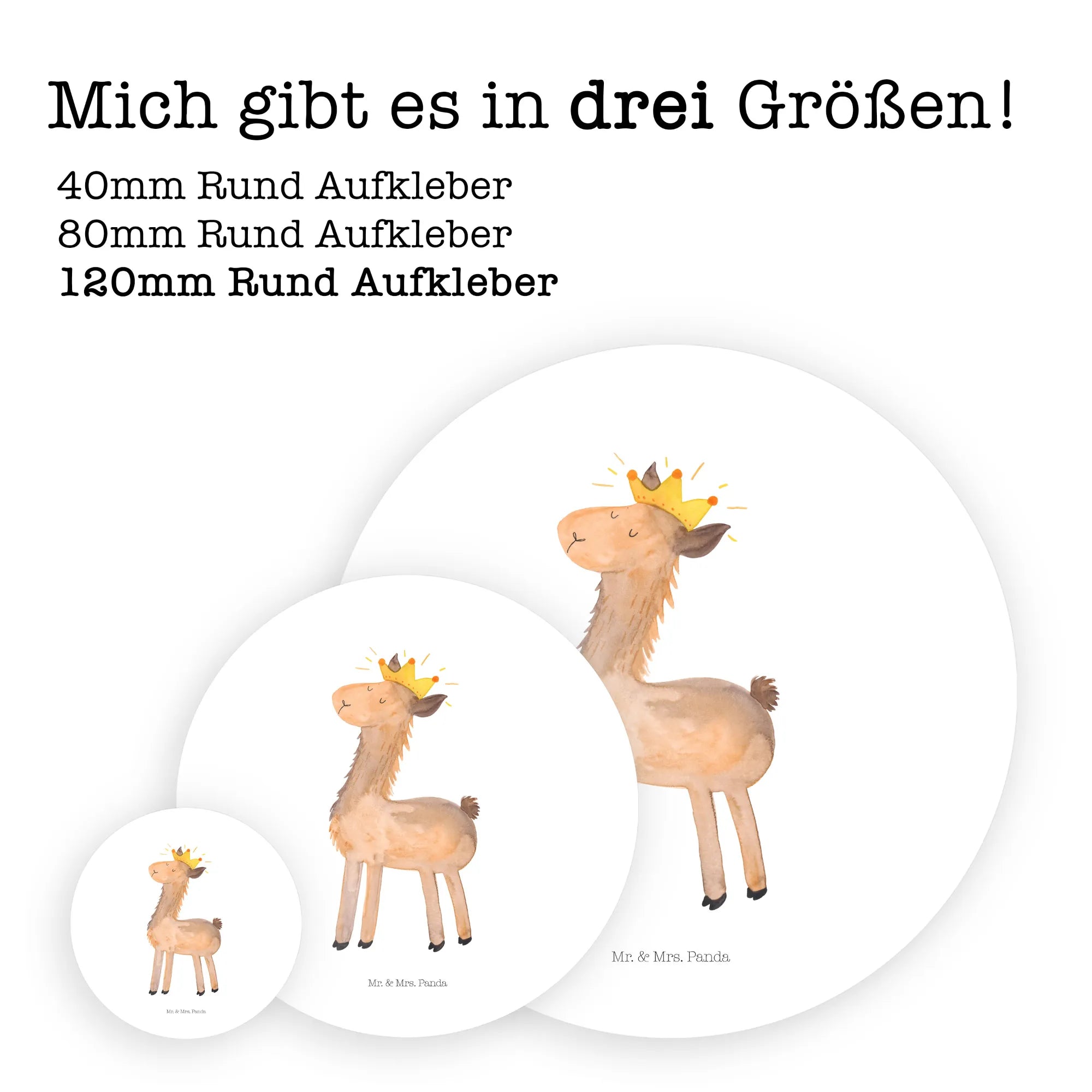120mm okrągła naklejka lama Król - 80mm Rund Aufkleber - z napisem