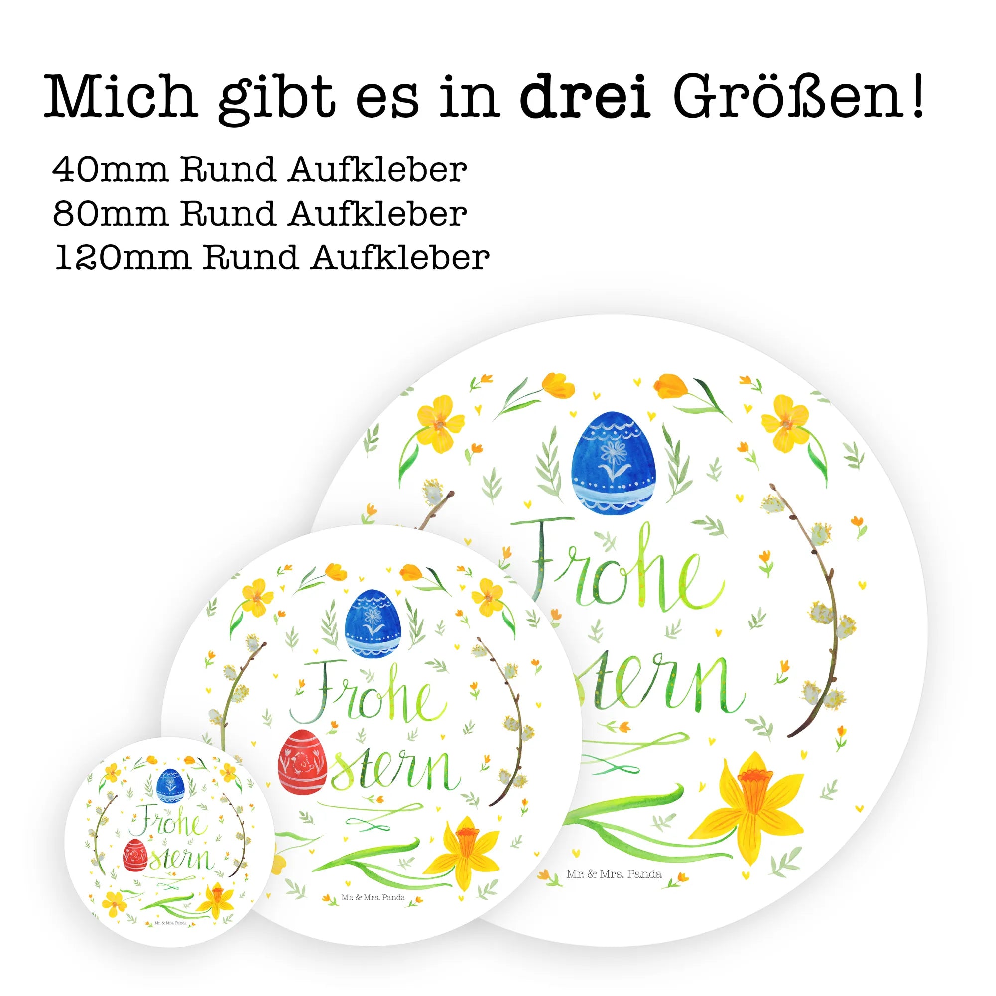 120mm okrągła naklejka Wielkanoc Wesołych Świąt Wielkanocnych - 80mm Rund Aufkleber - z napisem