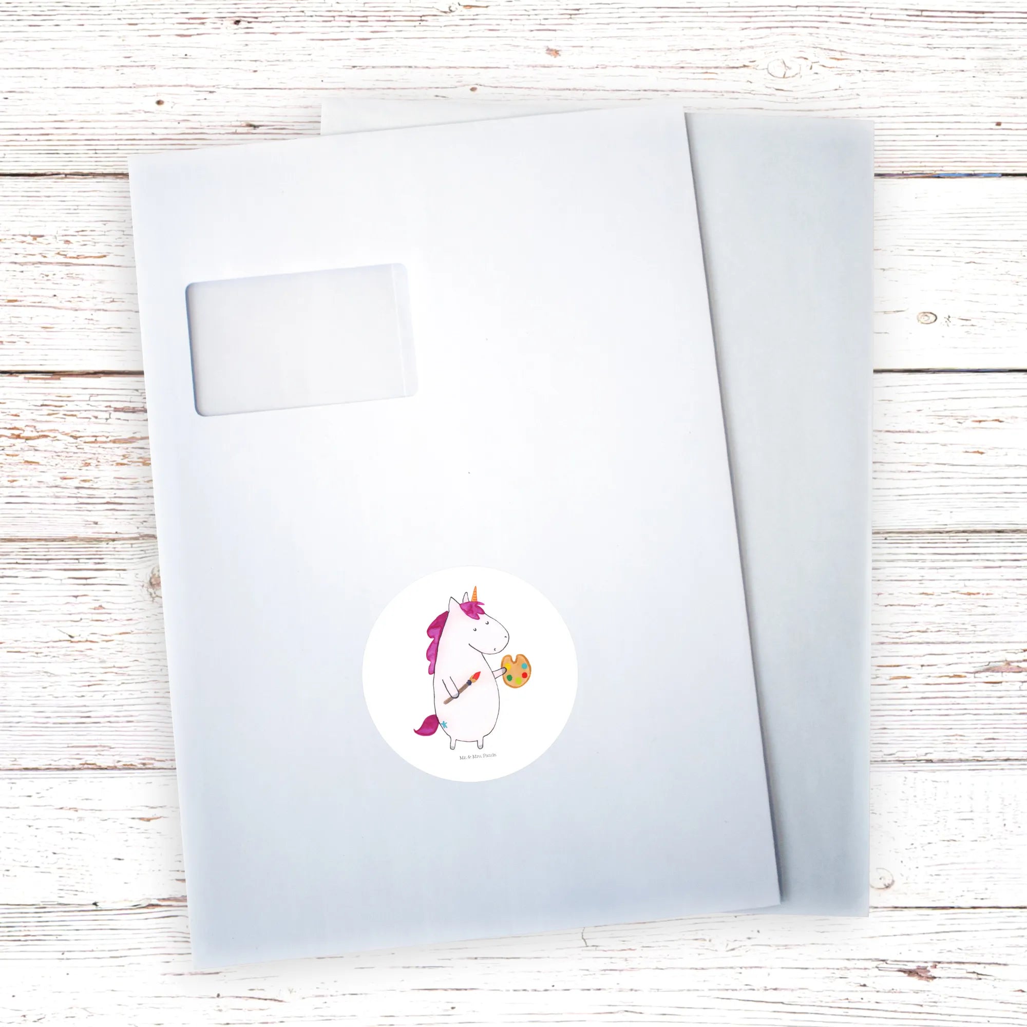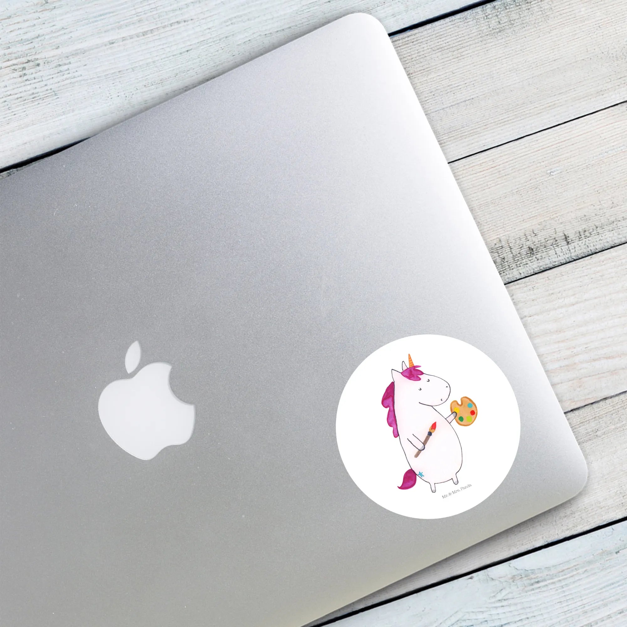 120mm okrągła naklejka Jednorożec Artysta - 80mm okrągła naklejka - z napisem
