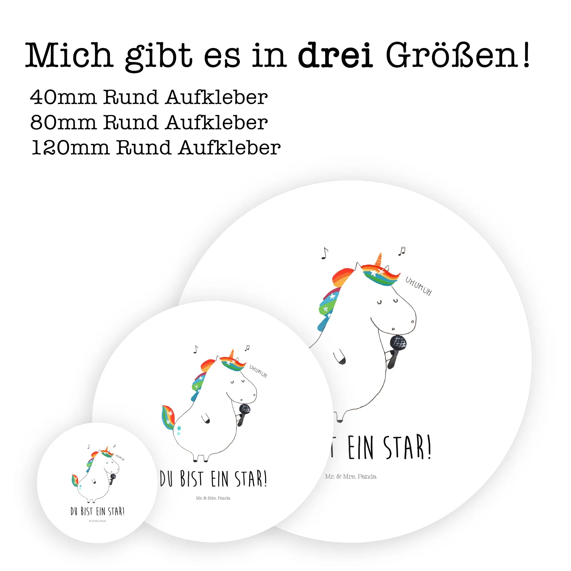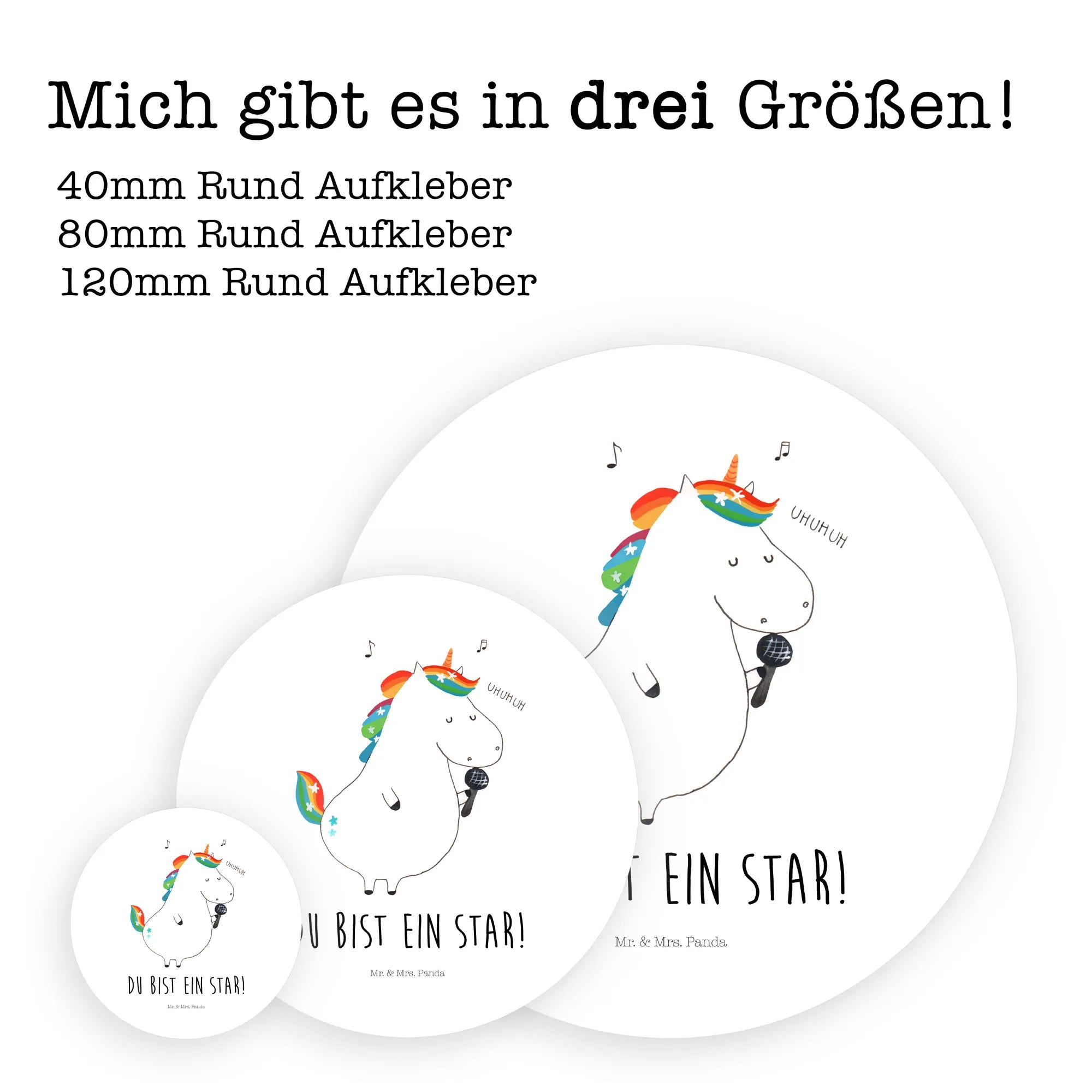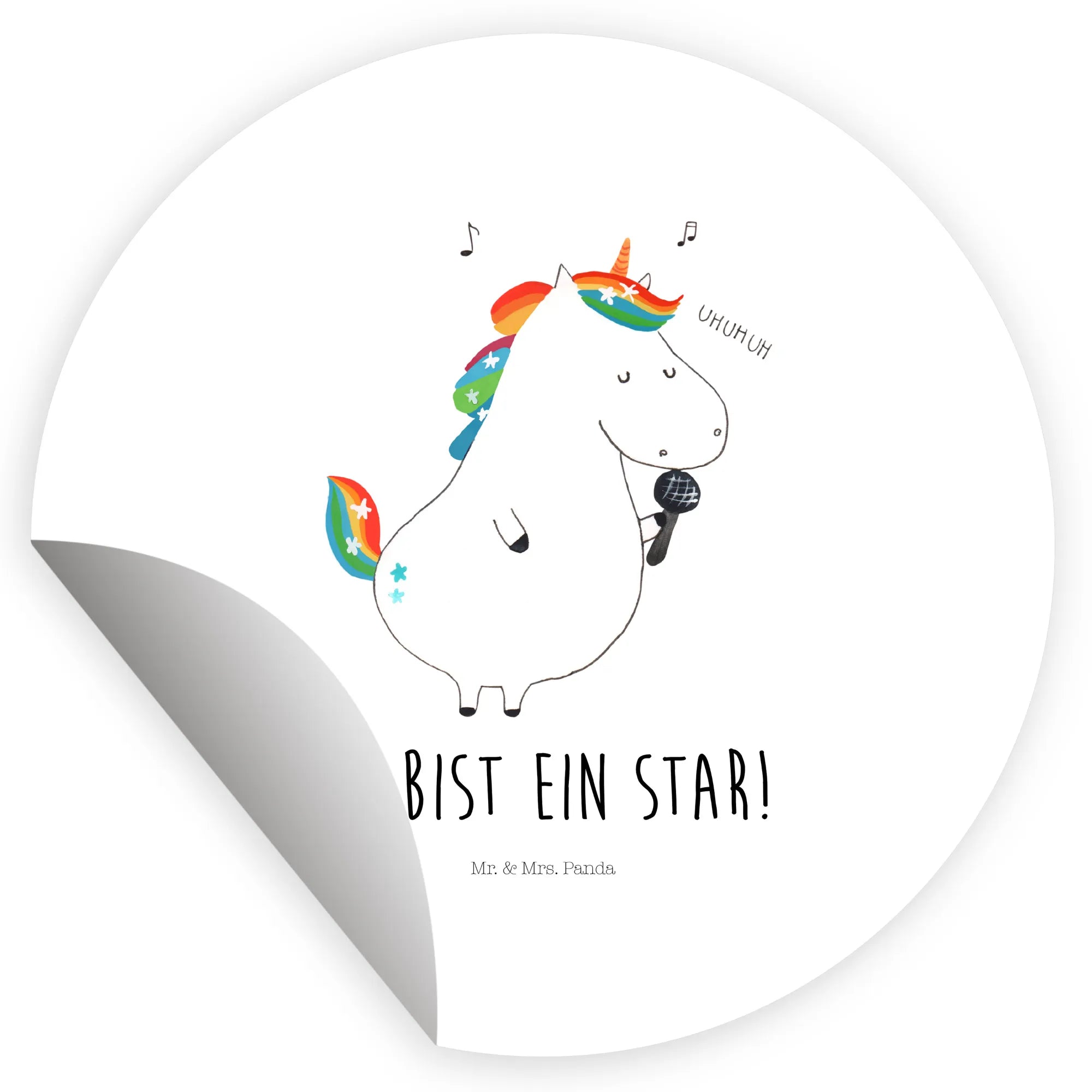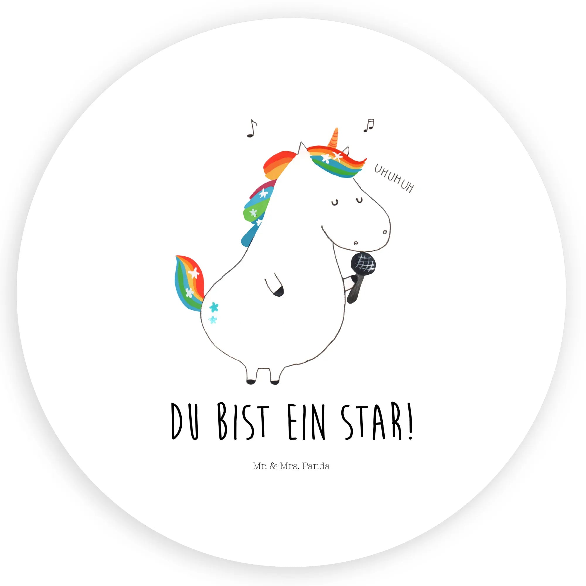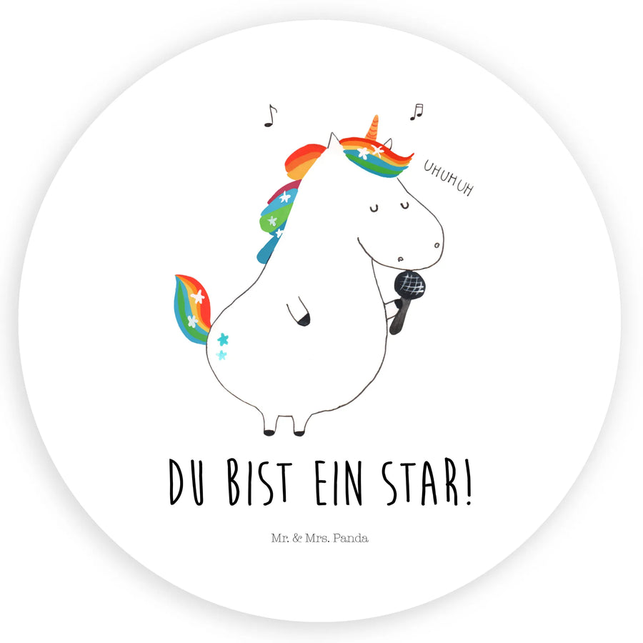 Suchst Du ein zauberhaftes Geschenk für Einhorn-Fans? Unser 120mm Rund Aufkleber „Einhorn Sänger“ aus der Einhorn - Kollektion von Mr. & Mrs. Panda ist das perfekte Mitbringsel für Geburtstag, Party oder einfach als liebevolle Überraschung. Das handgezeichnete Einhorn singt begeistert ins Mikrofon und trägt den motivierenden Spruch „Du bist ein Star!“ – ideal für kleine und große Nachwuchsstars.