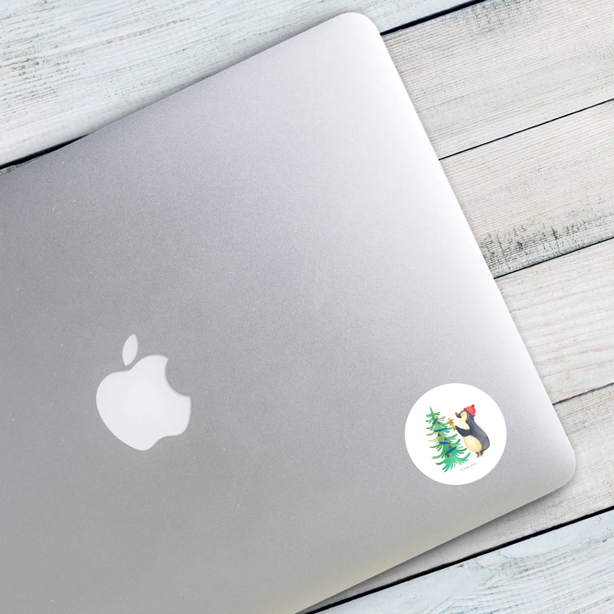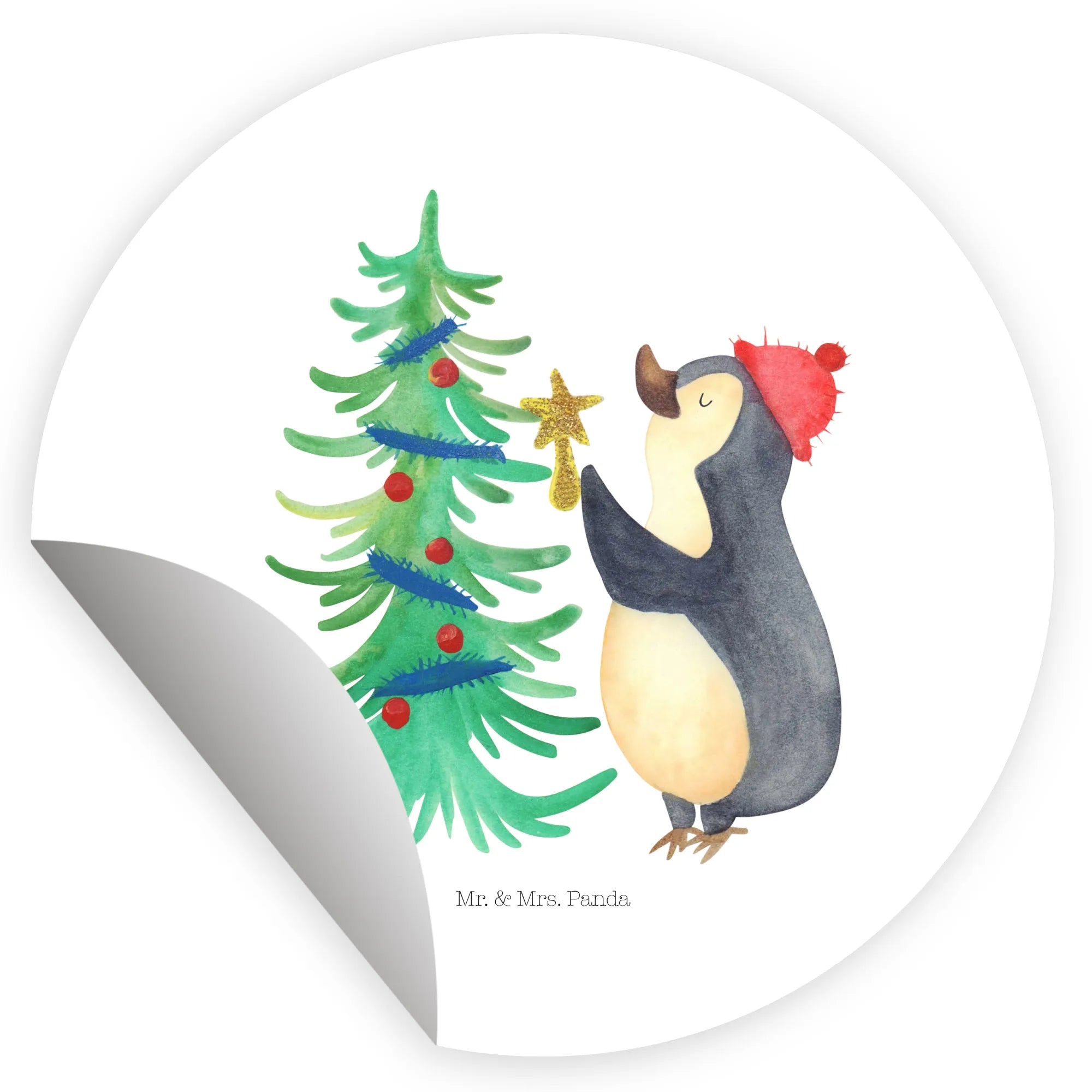120mm okrągła naklejka Pingwin choinka - 80mm Rund Aufkleber - z napisem - biały
