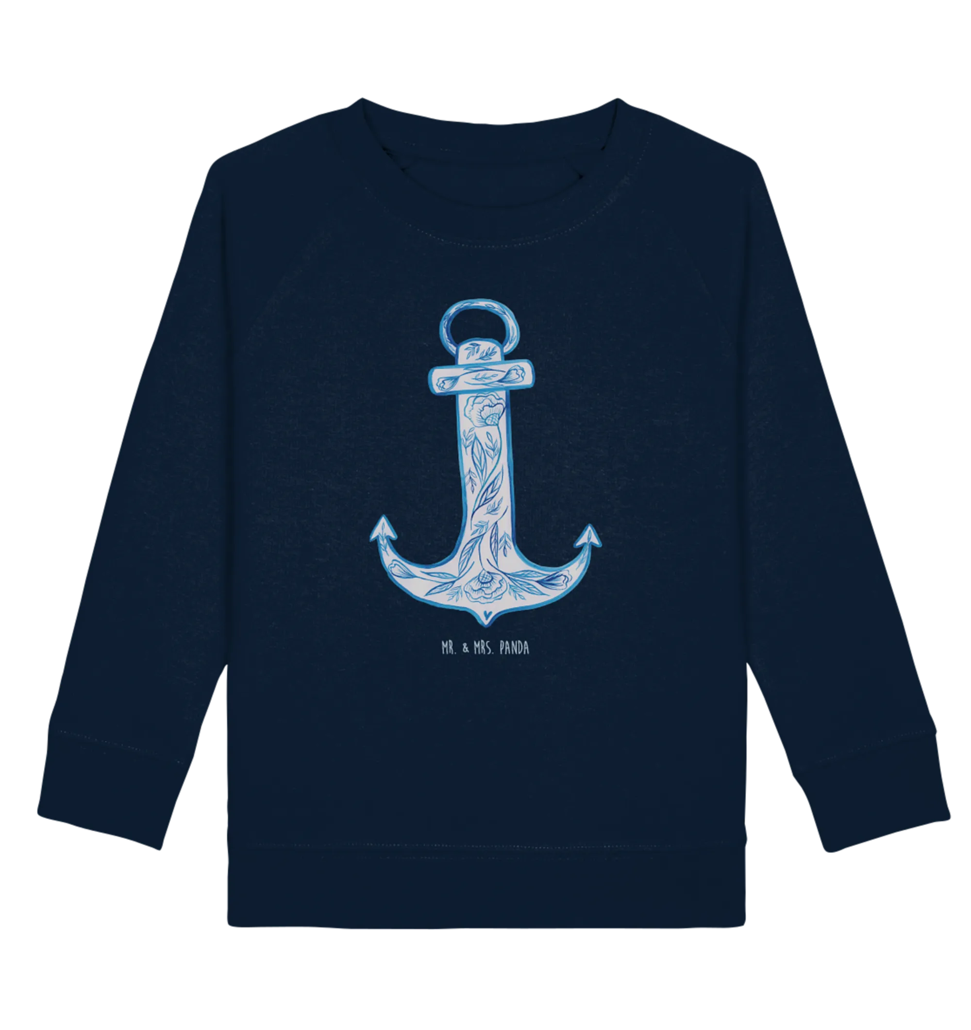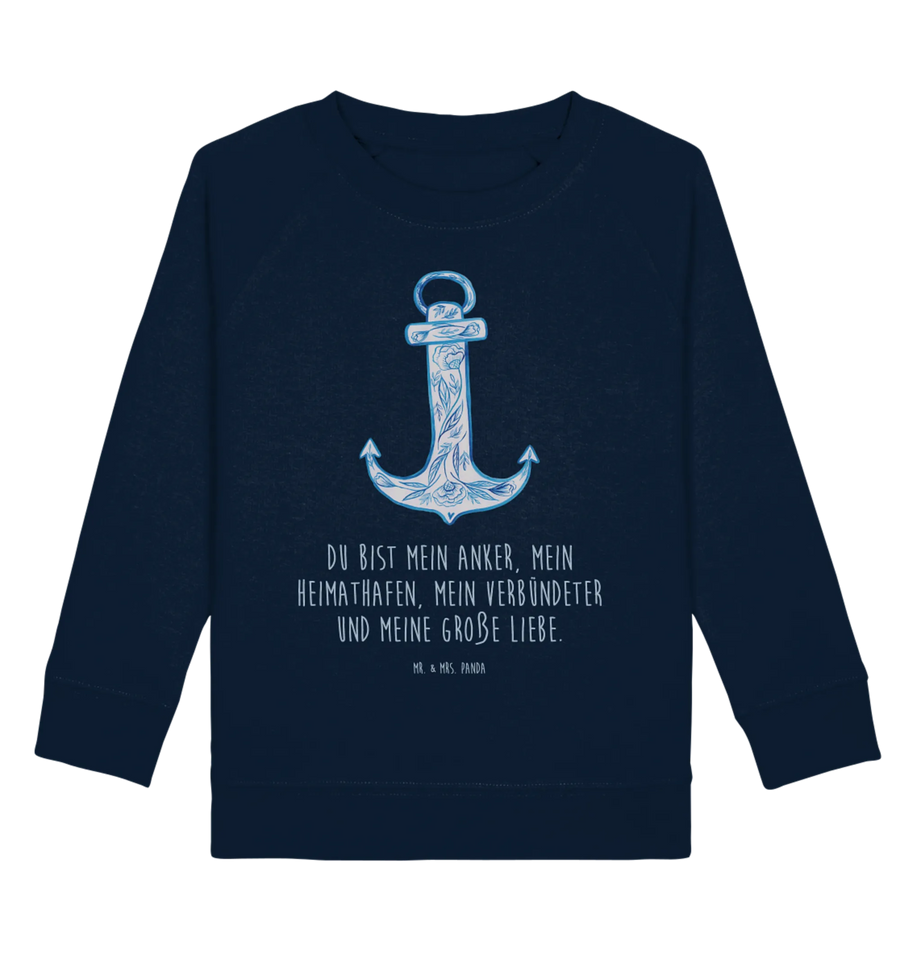 Entdecke den zauberhaften Organic Kinder Pullover mit dem einzigartigen Anker Blau Motiv aus der Small World Kollektion von Mr. & Mrs. Panda!