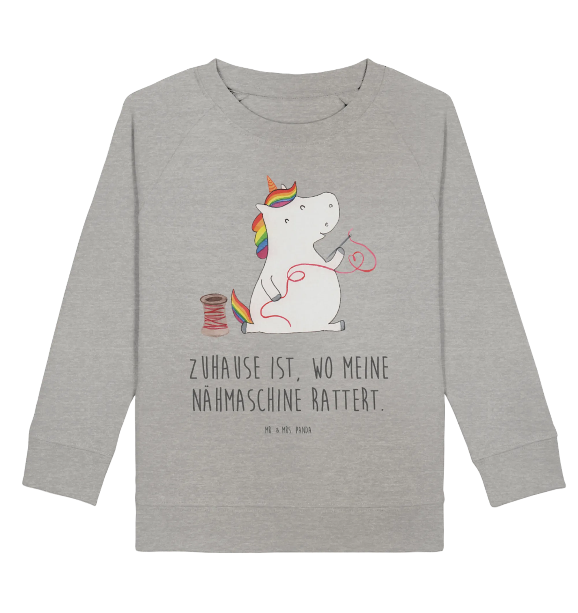 Der Organic Kinder Pullover Einhorn Näherin aus der Einhorn-Kollektion von Mr. & Mrs. Panda ist das perfekte Geschenk für kleine Kreativlinge! Mit seinem zauberhaften Einhorn-Motiv und dem liebevollen Slogan "Zuhause ist, wo meine Nähmaschine rattert", spricht er all jene Kinder an, die das Nähen, Basteln und kreative Gestalten lieben. Vor allem Mädchen, die gerne mit Stoffen arbeiten oder sich für das Häkeln und Stricken interessieren, werden mit diesem Pullover strahlen!