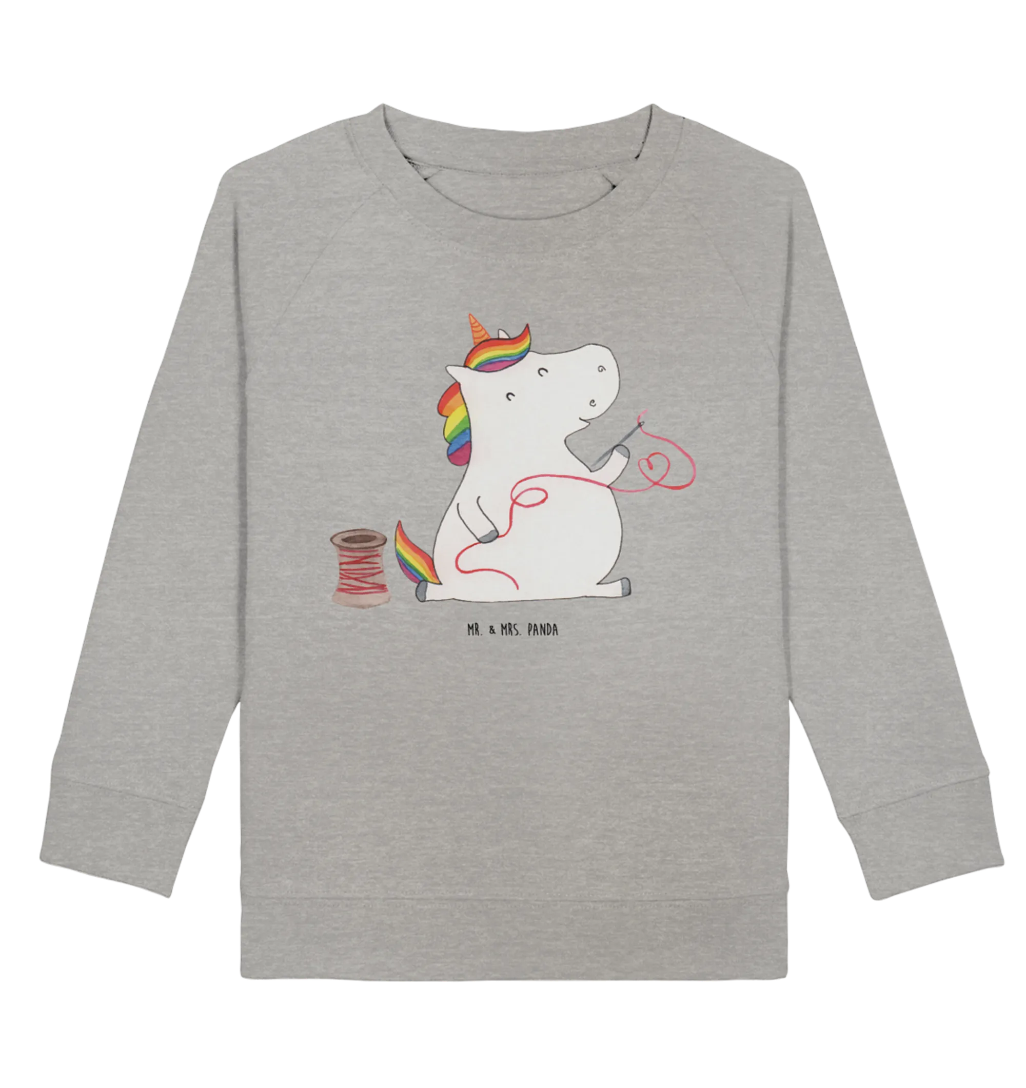 Der Organic Kinder Pullover mit dem zauberhaften Einhorn Näherin Motiv aus der Einhorn - Kollektion von Mr. & Mrs. Panda ist das perfekte Geschenk für kleine Kreativlinge und Einhornliebhaber!