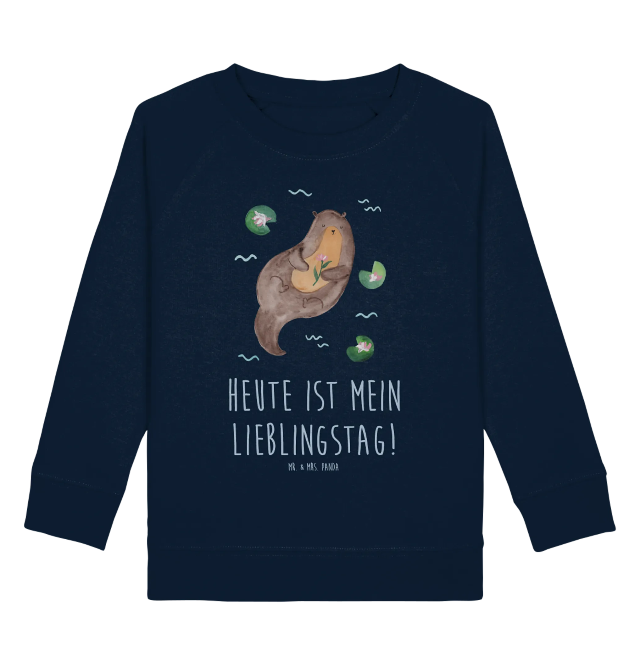 Entdecke den bezaubernden Organic Kinder Pullover mit dem einzigartigen Motiv "Otter mit Seerose" aus der beliebten Otter-Kollektion von Mr. & Mrs. Panda!