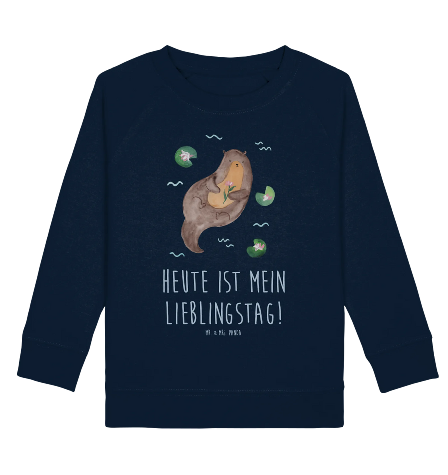 Organic Kinder Pullover „Otter mit Seerose“ – ein zauberhaftes Stück aus der Otter - Kollektion von Mr. & Mrs. Panda. Das handgezeichnete Aquarell-Motiv zeigt einen fröhlichen Seeotter, der durch Seerosen schwimmt. Der positive Slogan „Heute ist mein Lieblingstag!" macht den Pullover zum täglichen Gute-Laune-Macher.
