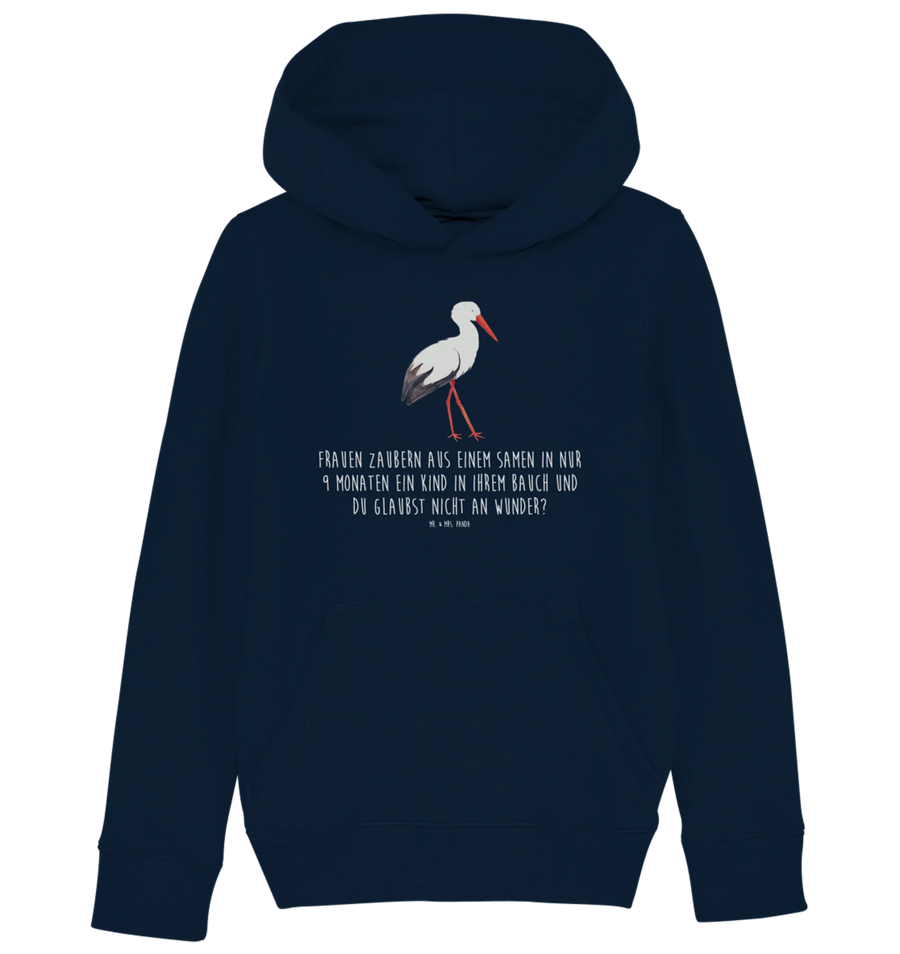 Entdecke den perfekten Kinder Hoodie von Mr. & Mrs. Panda mit einem bezaubernden Storch-Motiv! Dieser Organic Kinder Hoodie ist nicht nur super bequem, sondern auch ein absoluter Hingucker. Der französisch Navy Hoodie zeigt einen süßen Storch, der ein Baby in einem Tuch trägt – ein symbolisches Bild für das Wunder der Geburt und das Wachsen einer Familie.