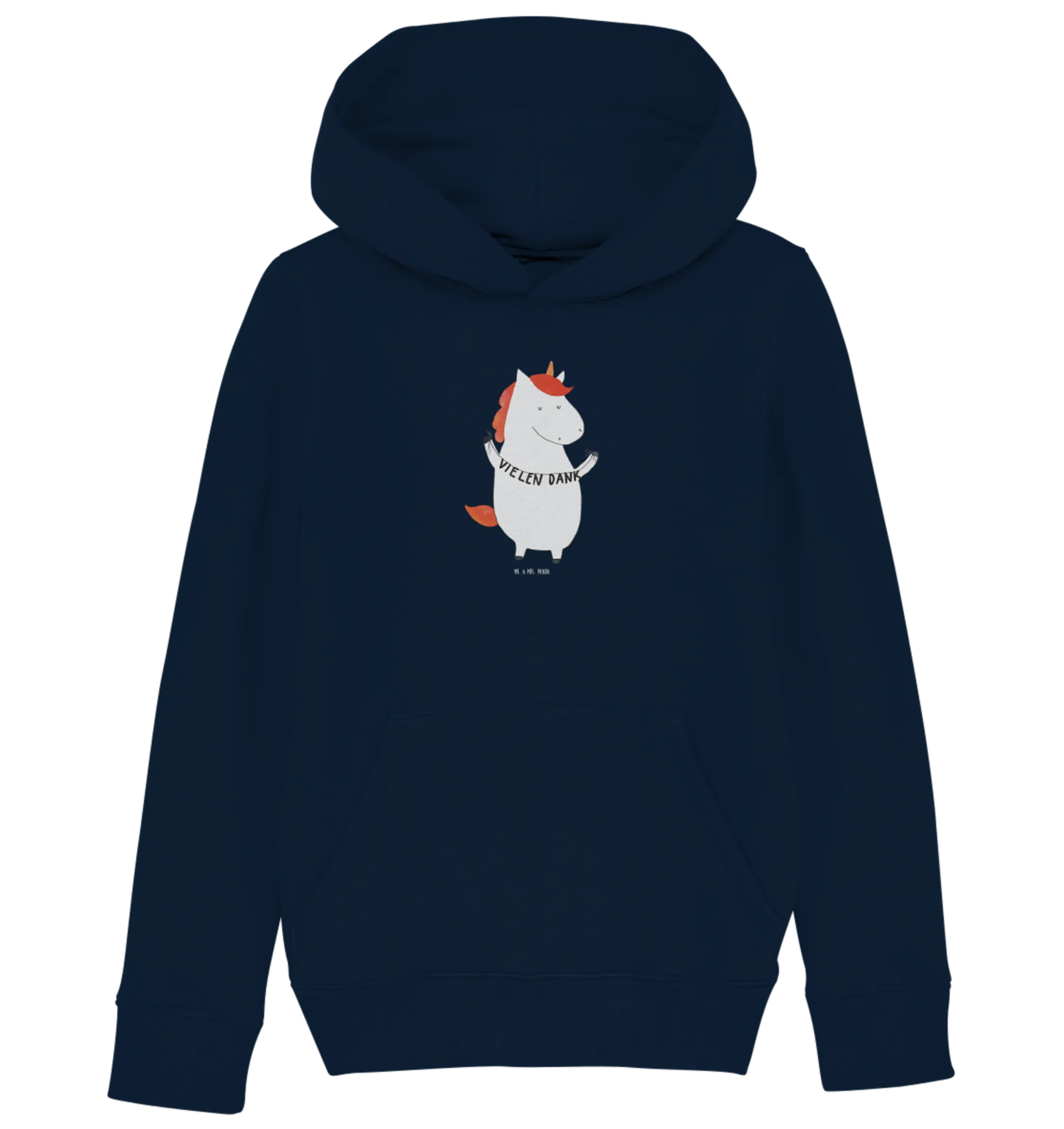 Suchst du das perfekte Geschenk für einen kleinen Einhorn-Liebhaber? Dann ist der Organic Kinder Hoodie "Einhorn Vielen Dank" aus der Einhorn-Kollektion genau das Richtige!